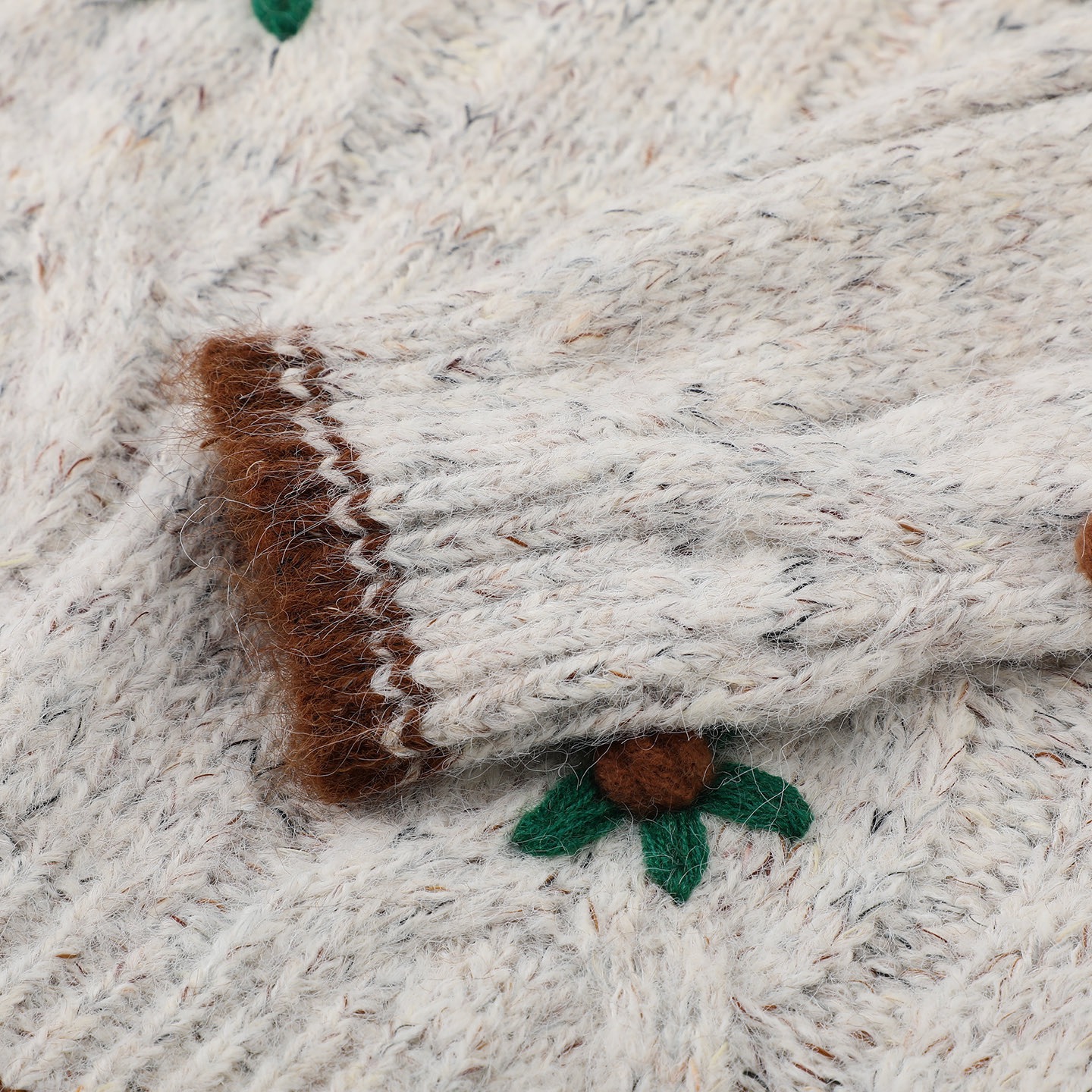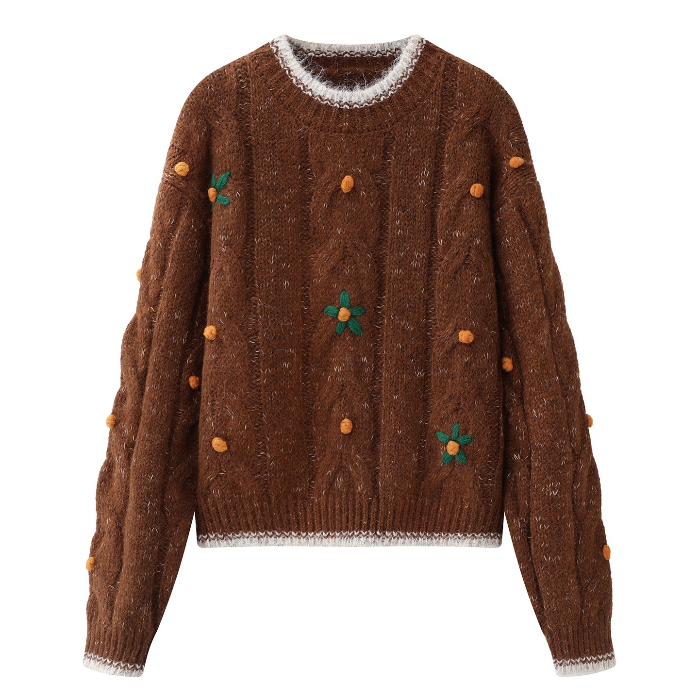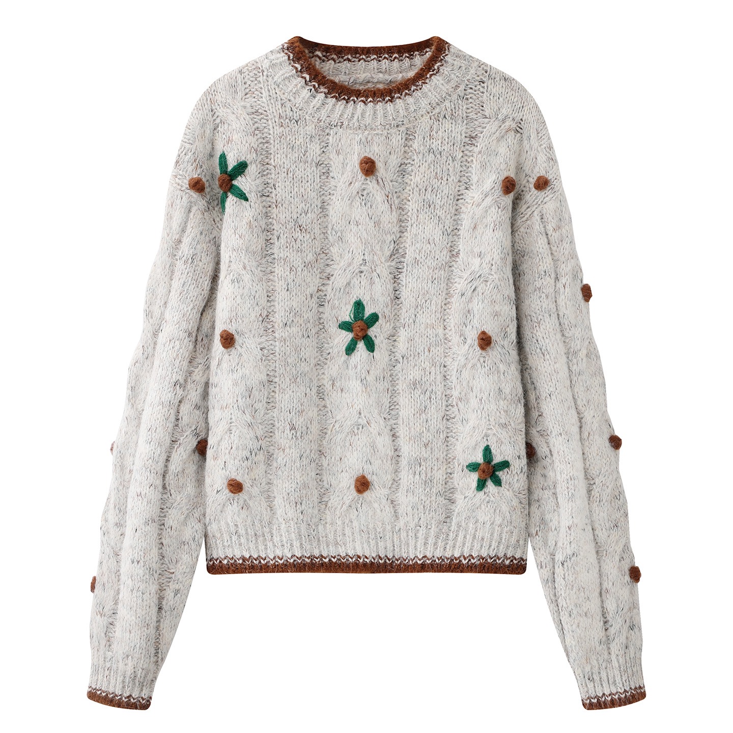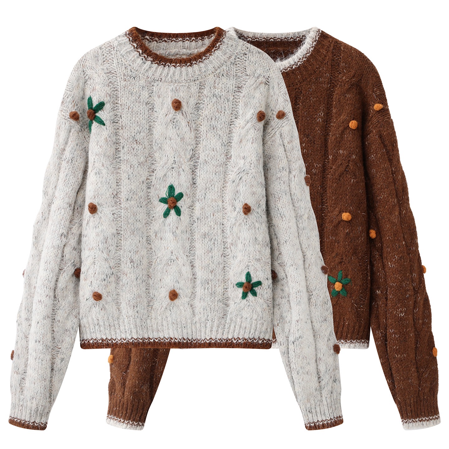 D112528秋冬季新款重工钩花圆领软糯毛衣女慵懒风宽松套头针织衫