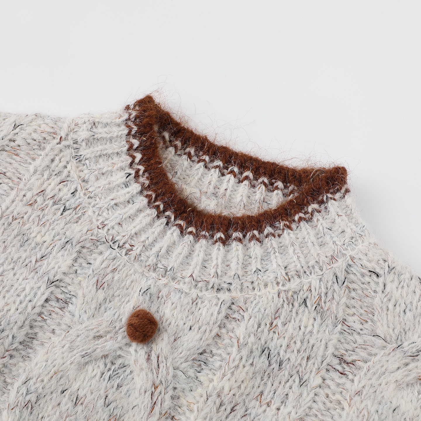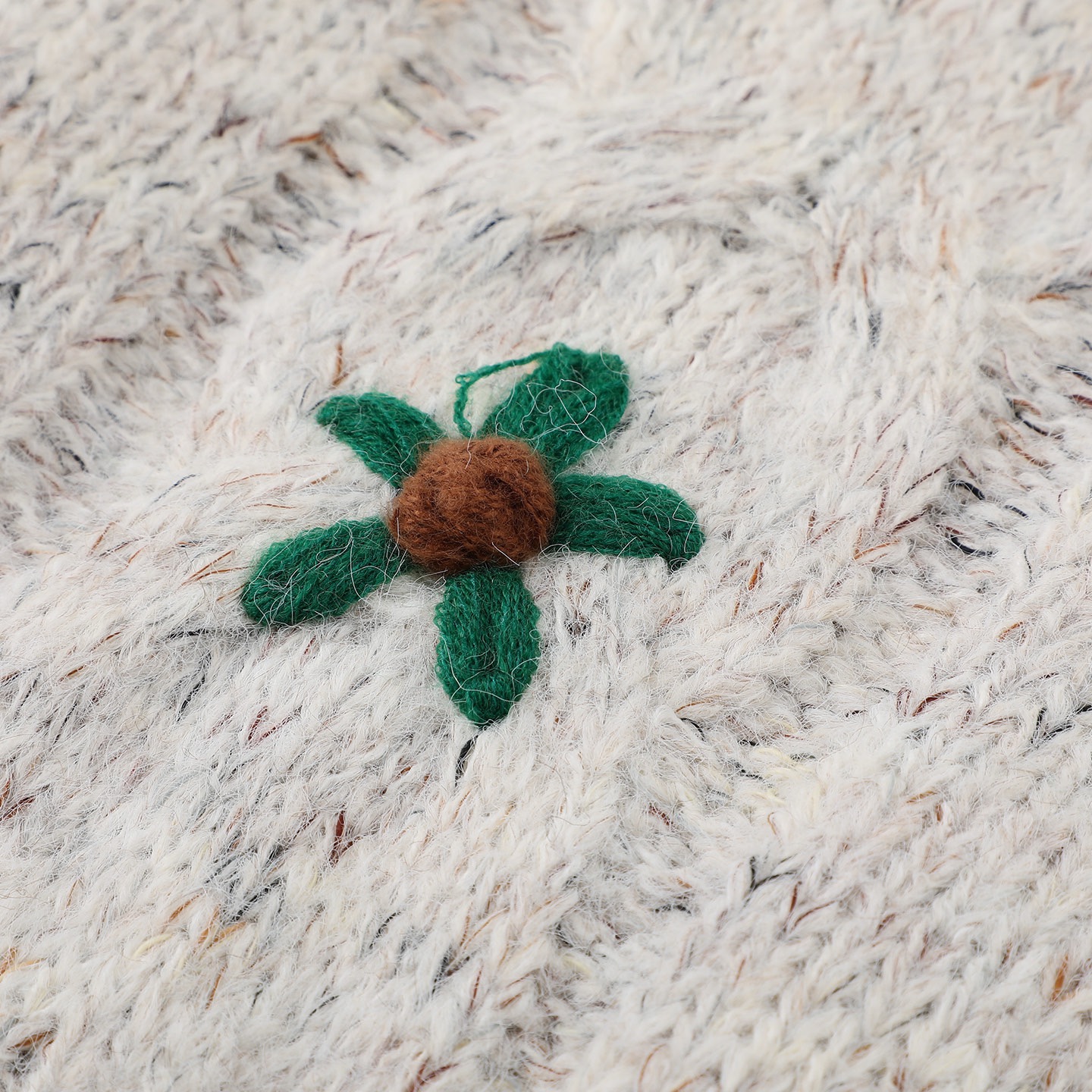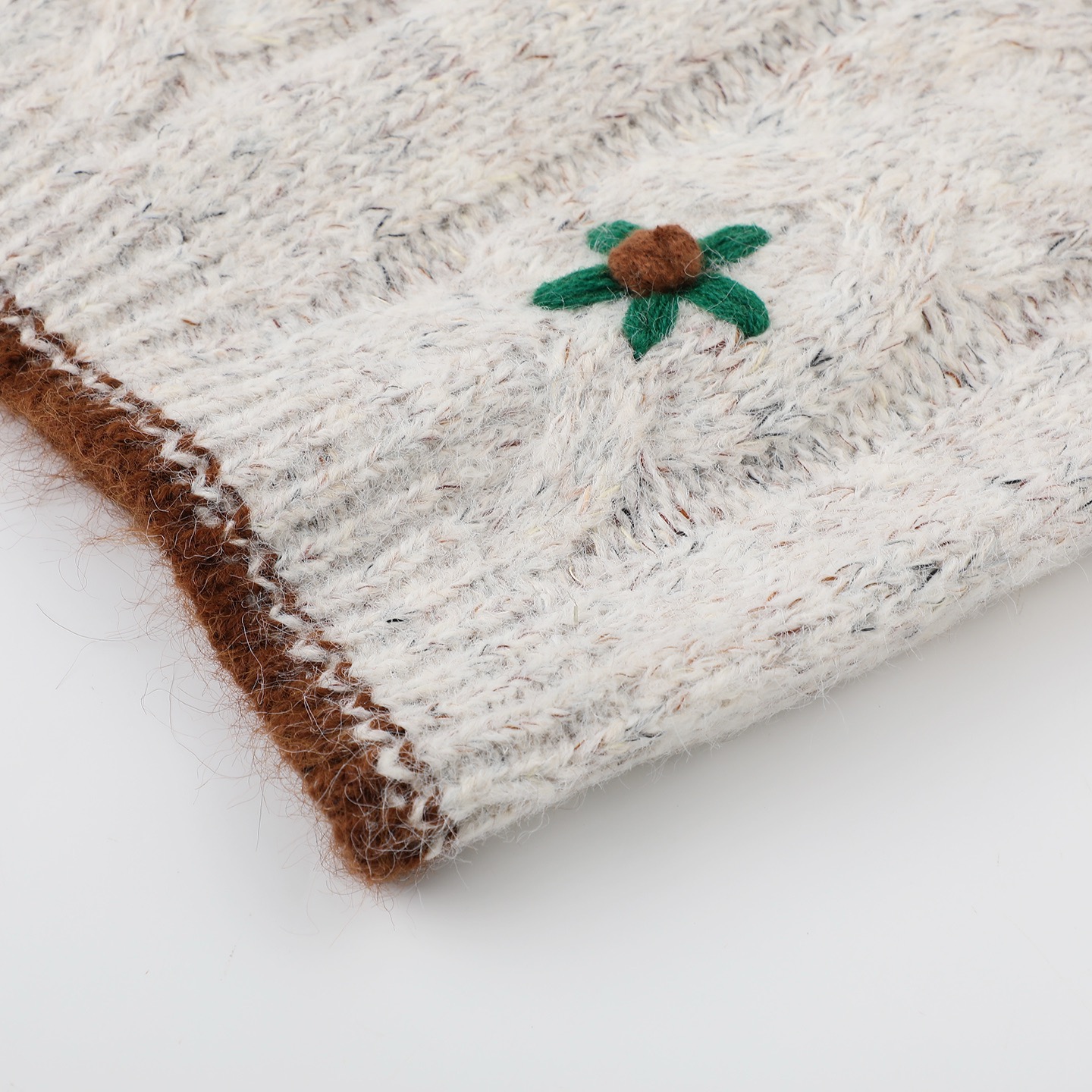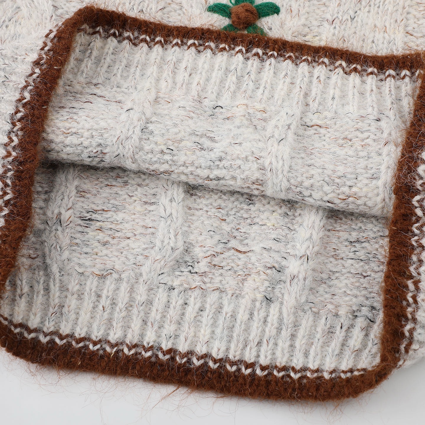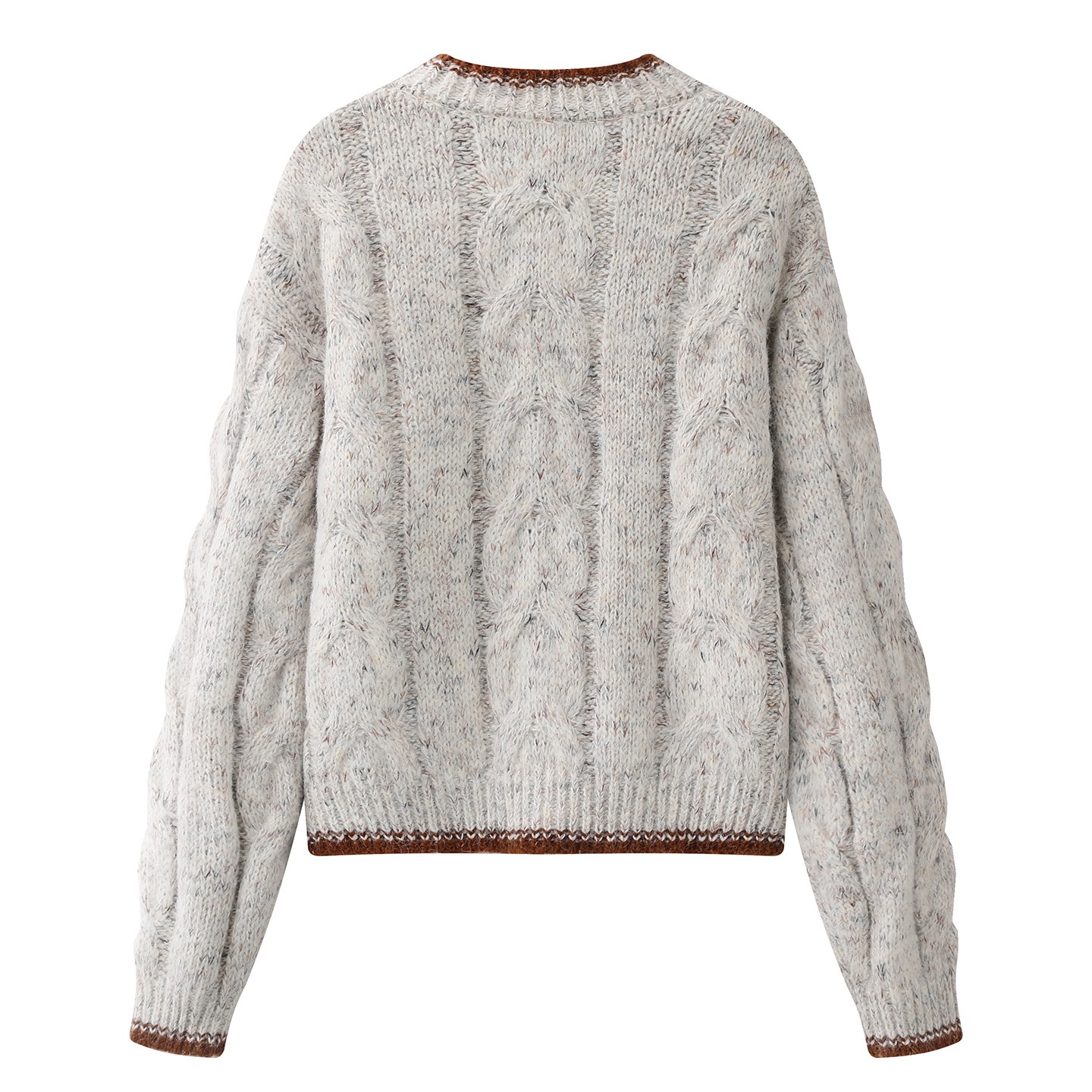 D112528秋冬季新款重工钩花圆领软糯毛衣女慵懒风宽松套头针织衫