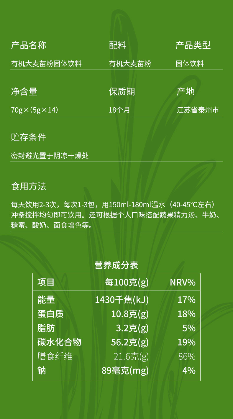 全食物日记 妆食记有机大麦苗粉70g(5g*14)