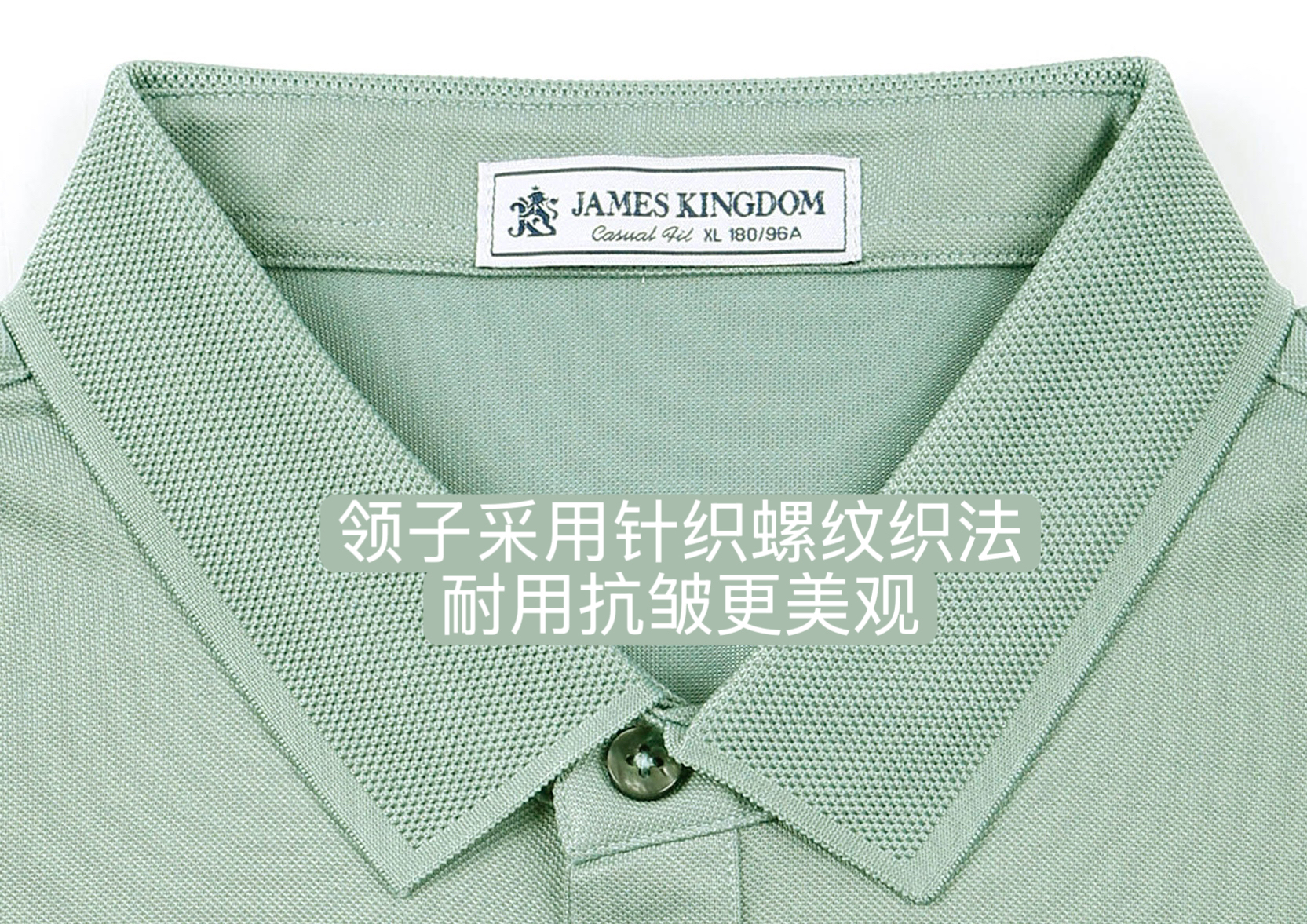 占姆士男士含桑蚕丝纯色螺纹翻领POLO衫新