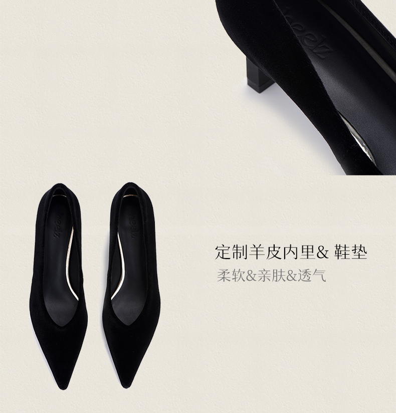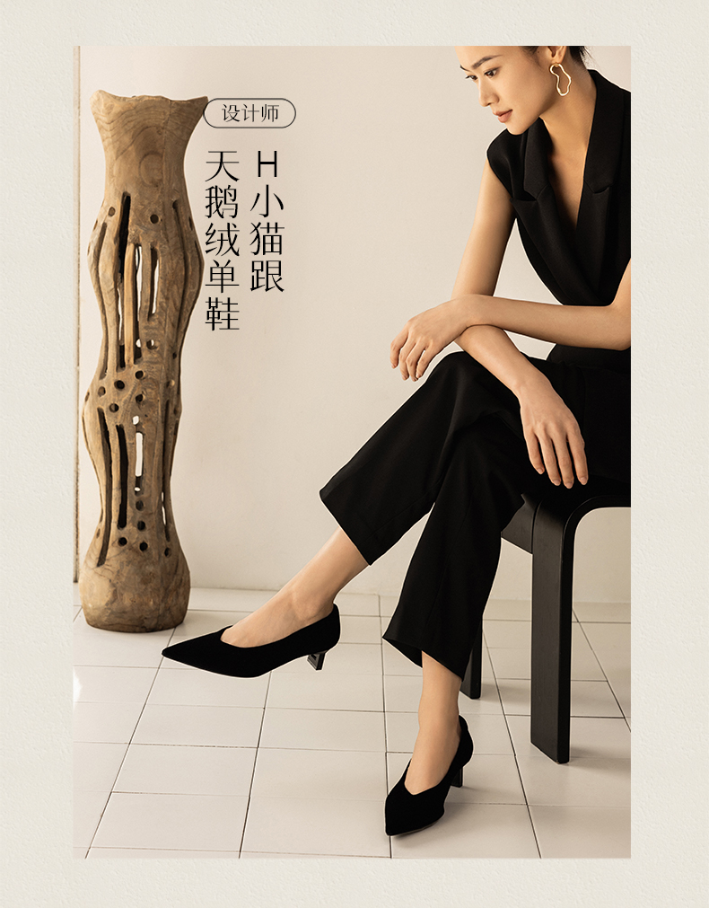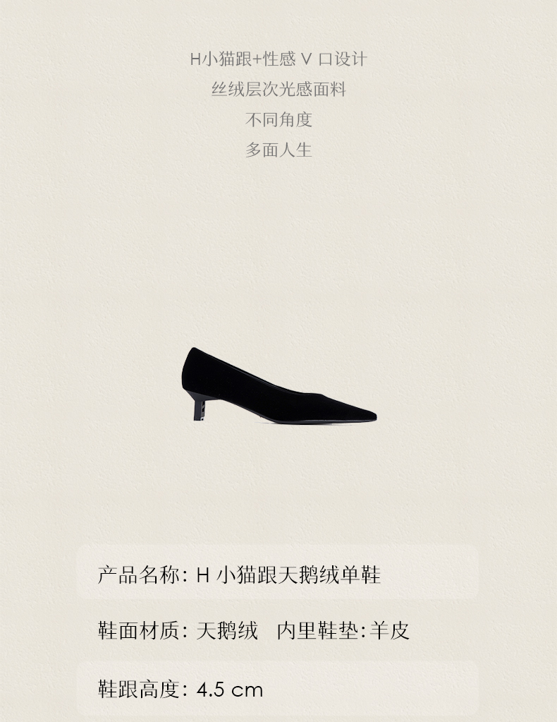 heelz设计师手工鞋履 |H小猫跟天鹅绒单鞋4.5公分