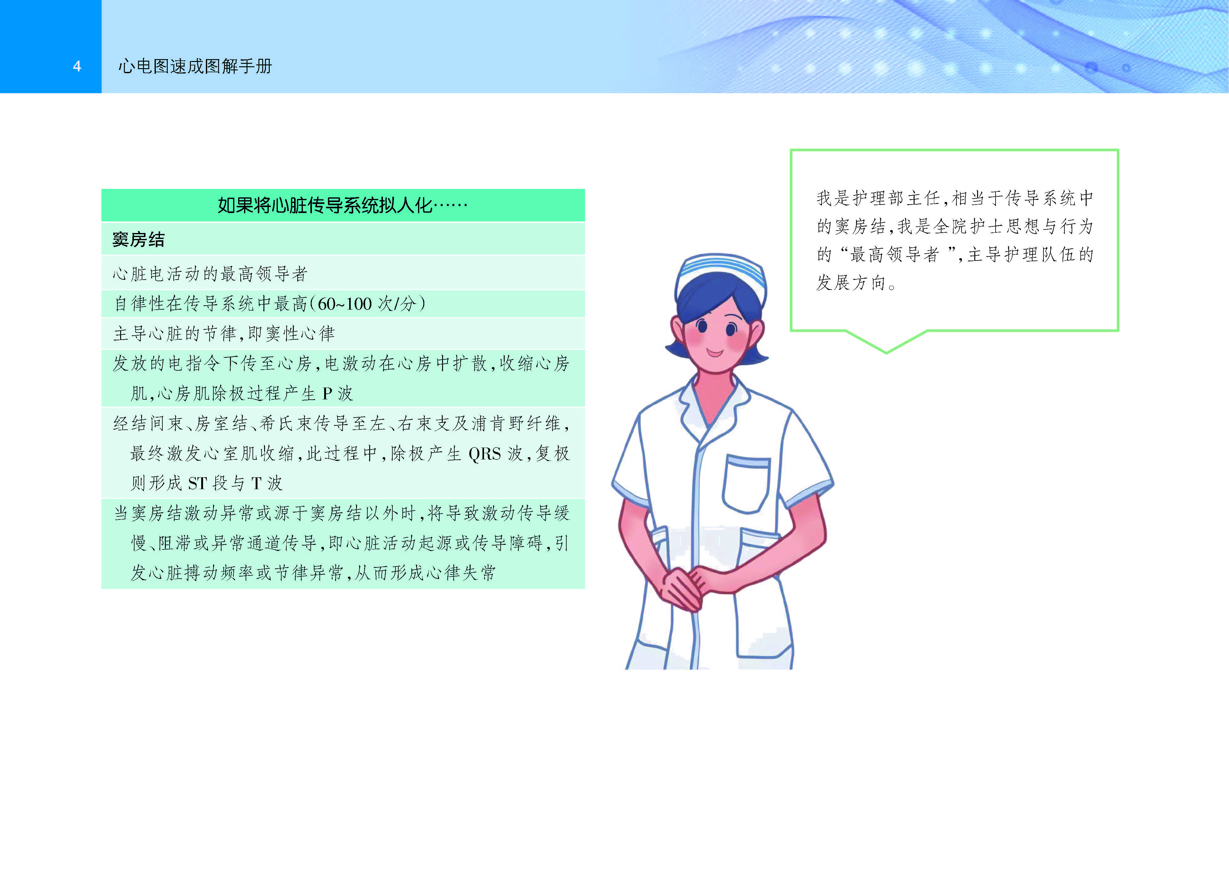 本书介绍了心脏传导系统、心电图导联体系、各波群特点及心率测算等基础知识,核心部分选取100 余例心血管疾病常见类型的心电图,每张图谱通过双页呈现,首页为自我测评,引导读者模拟临床分析心电图;次页附答案、难度系数、处理意见、观察要点、护理措施,部分内容还做了适当延伸,便于读者结合临床对照学习,实现由浅入深、由易到难的提升。本书将心电图表现与常见病因、处理措施结合,内容简洁、全面。尤其从临床护理人员角度出发,助力其快速、准确识别心电图结果,为急症诊断和抢救争取时间,同时也为广大医学生、临床医生及心电图工作者提供了实用的参考工具。