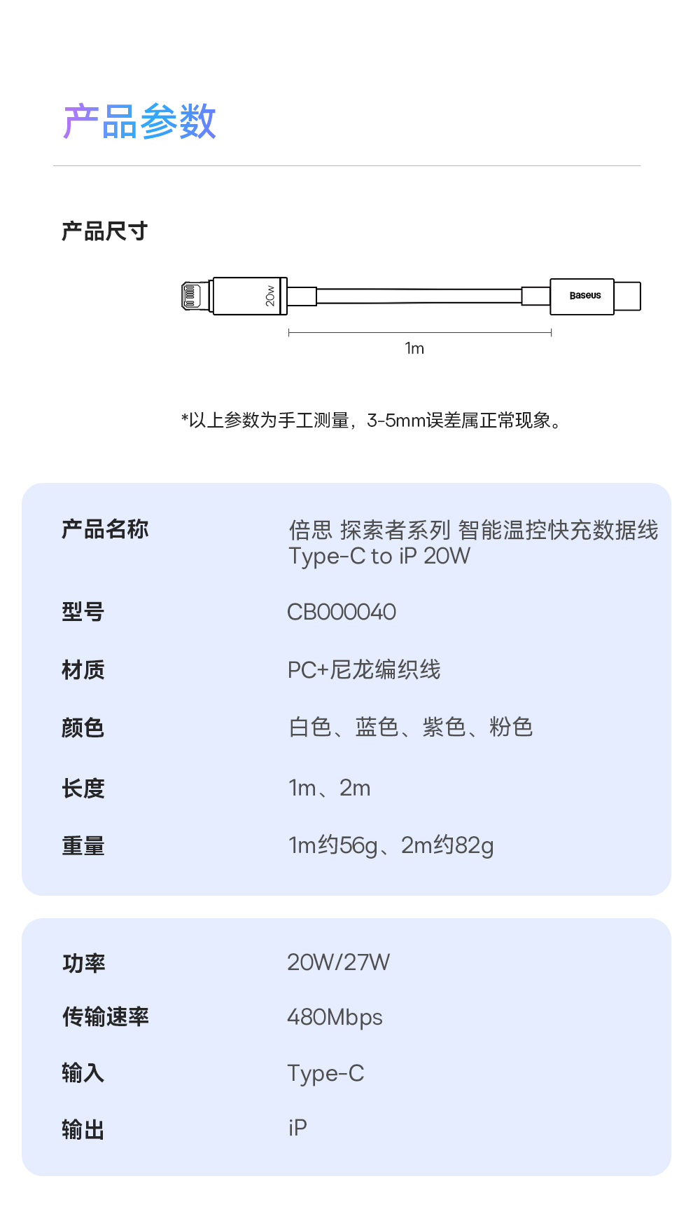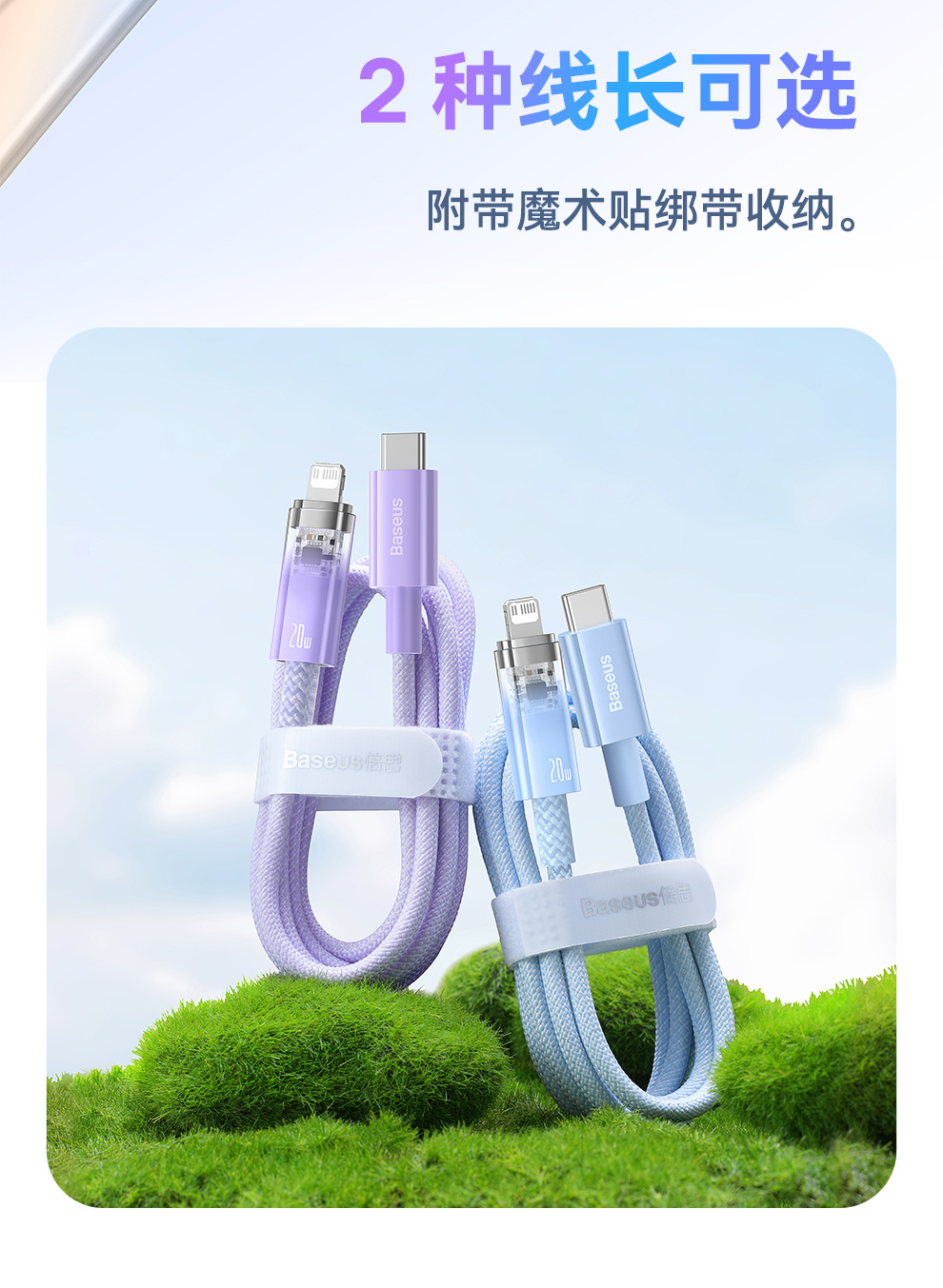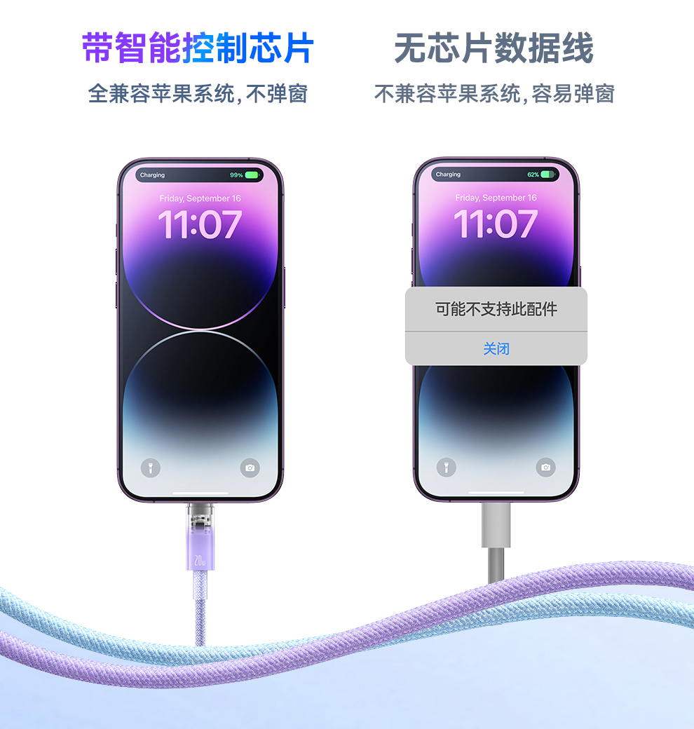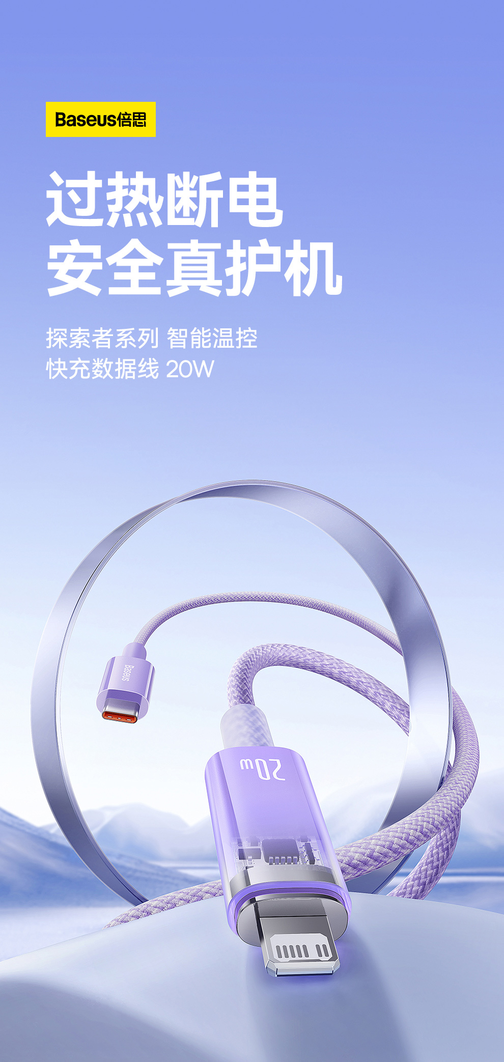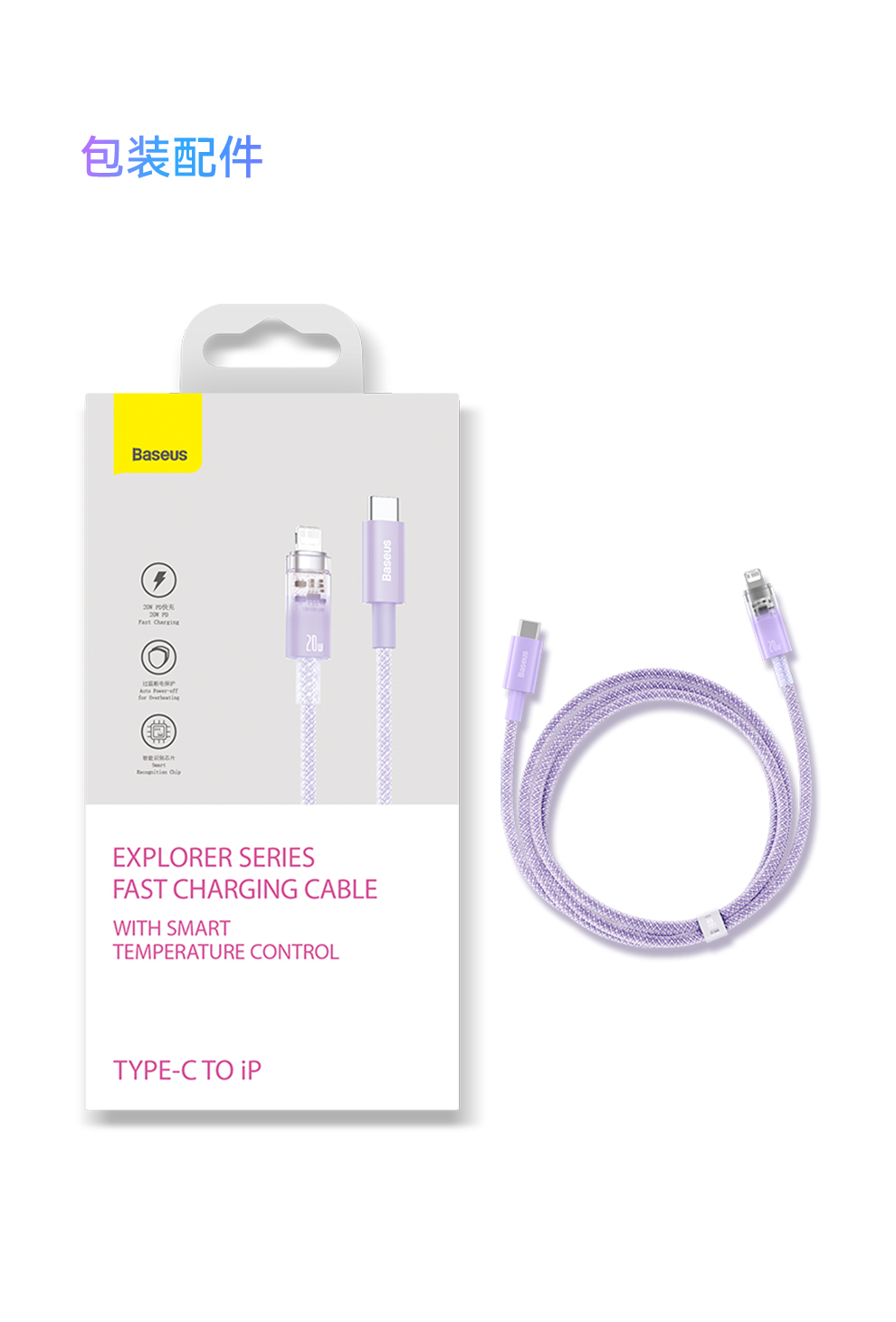 【拍2件58】探索者系列 智能温控快充数据线C to iP 20W 2米