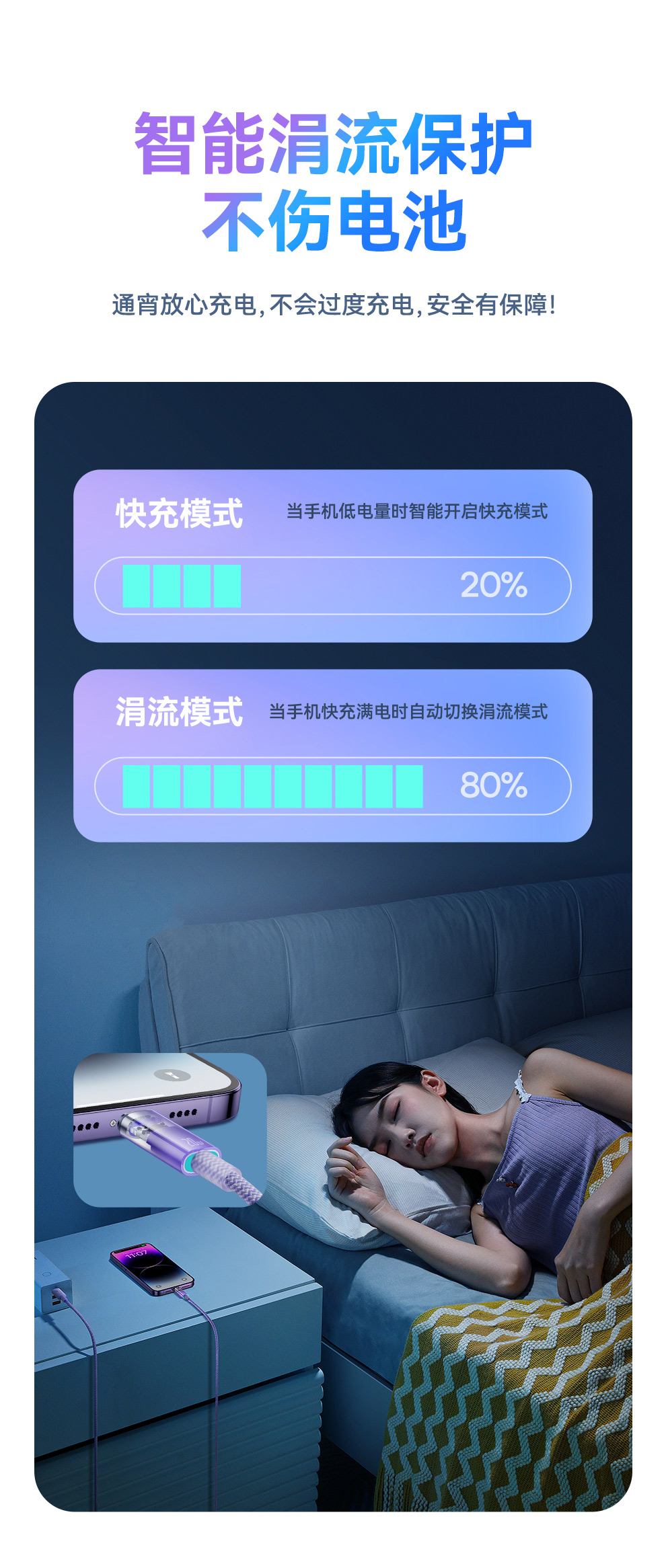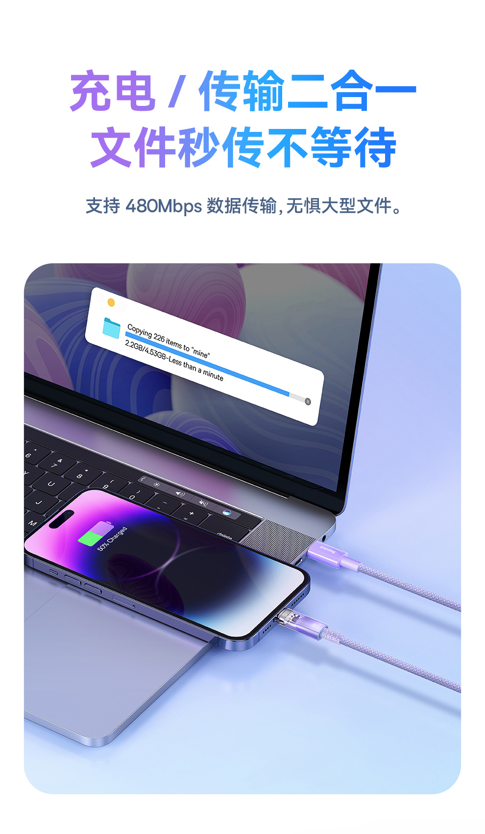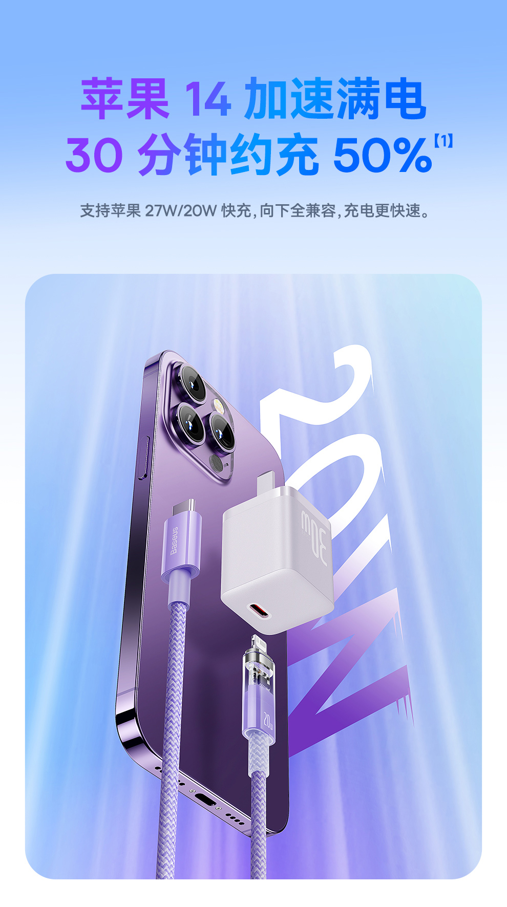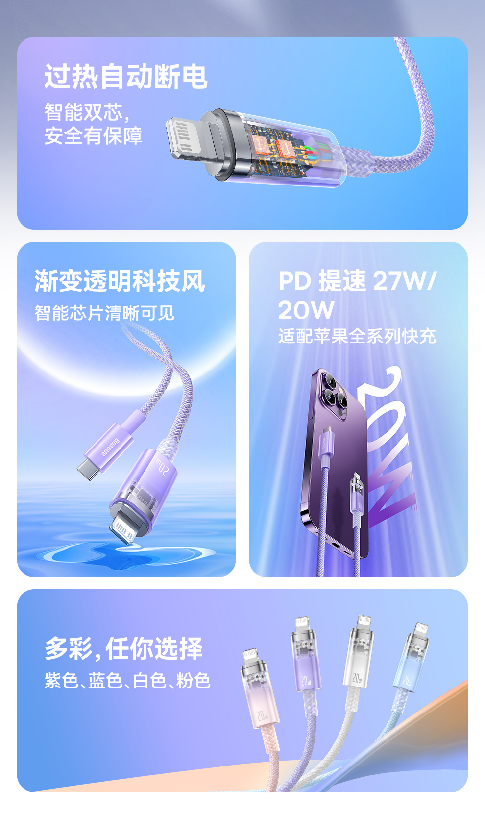 【拍2件58】探索者系列 智能温控快充数据线C to iP 20W 2米