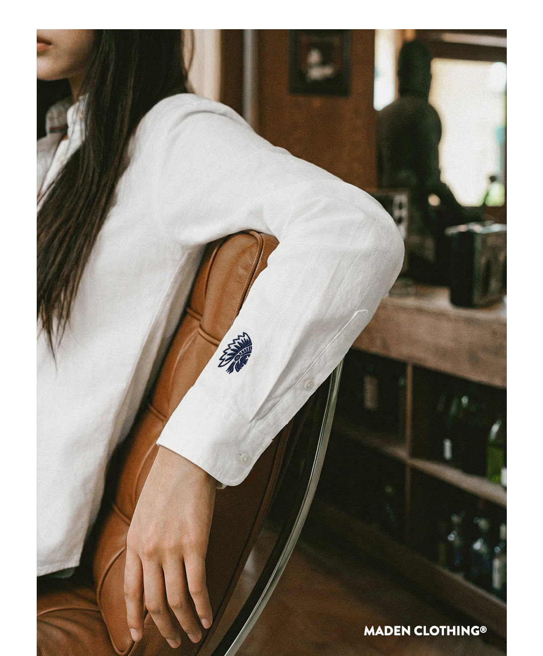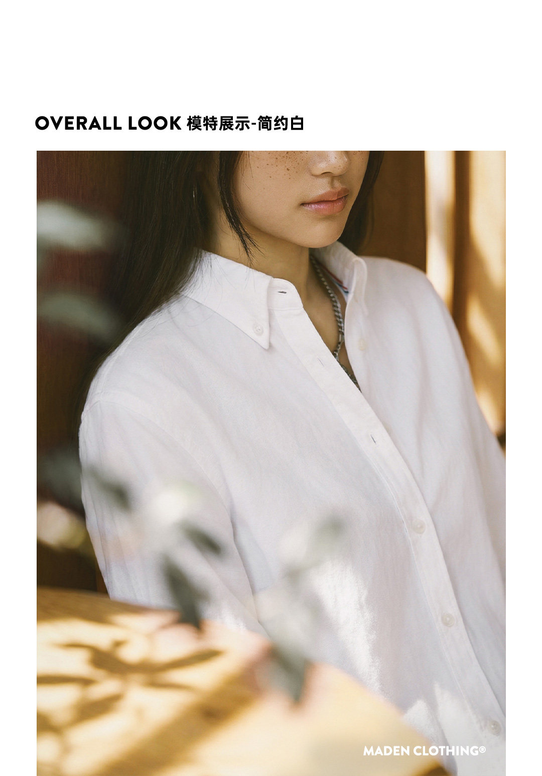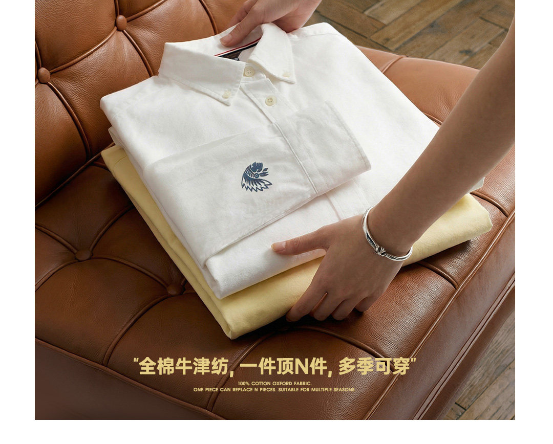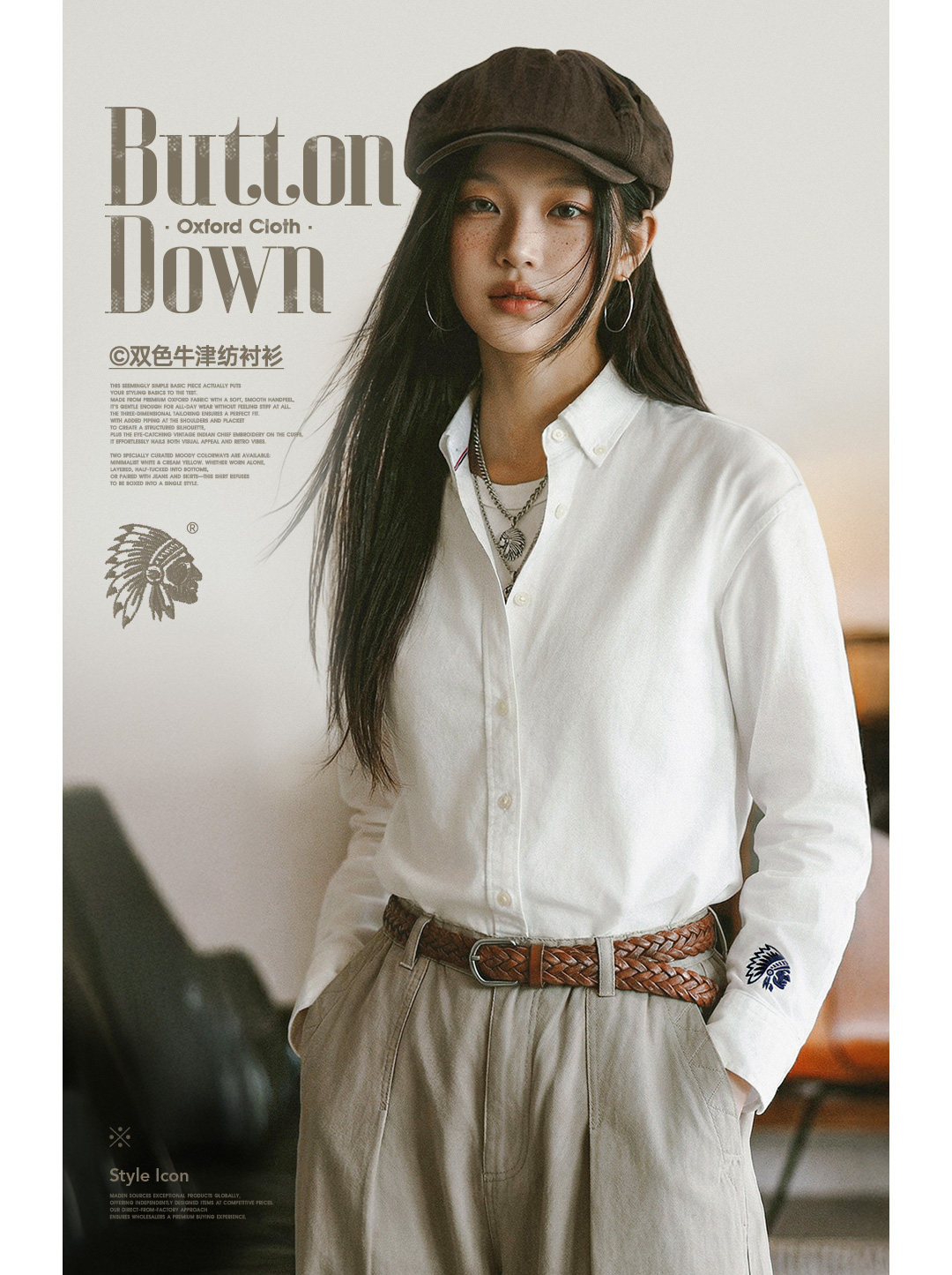 马登白色全纯棉翻领西装牛津纺衬衫刺绣叠穿长袖内搭上衬衣女士春