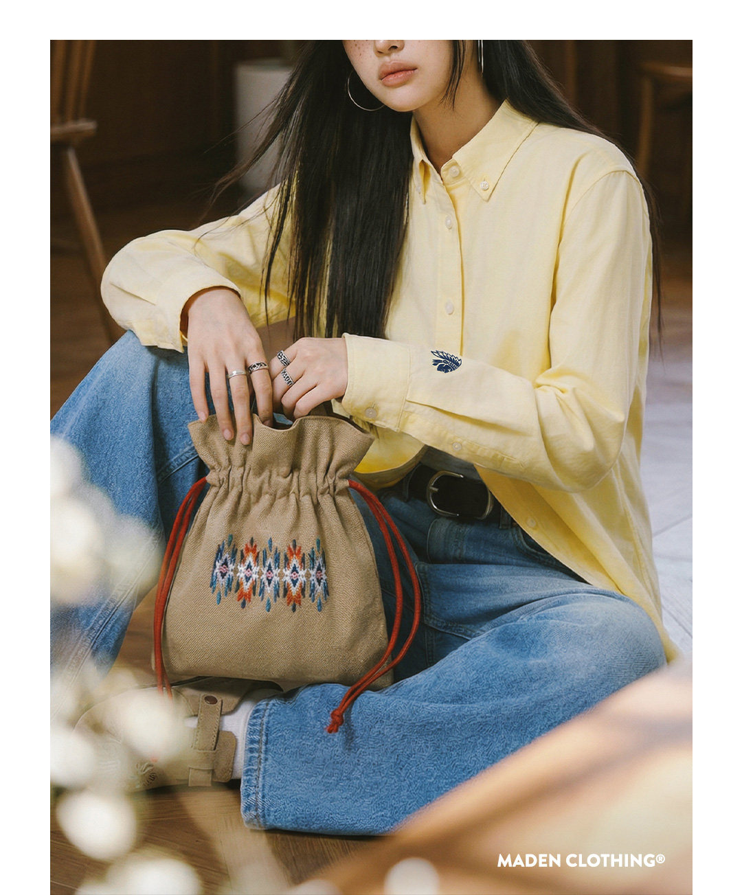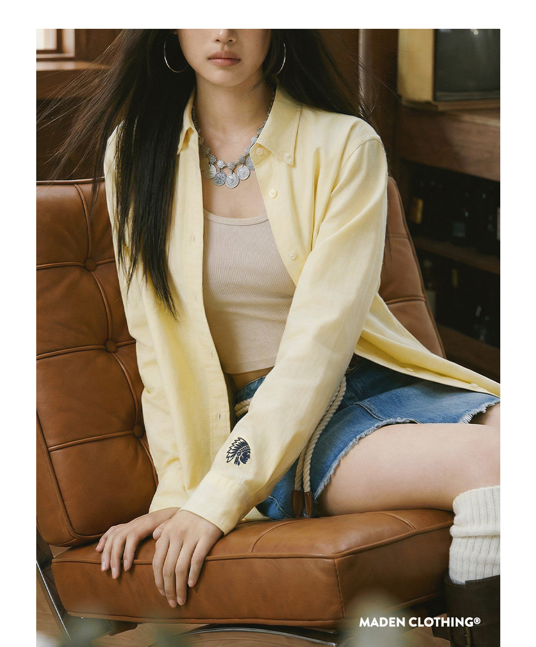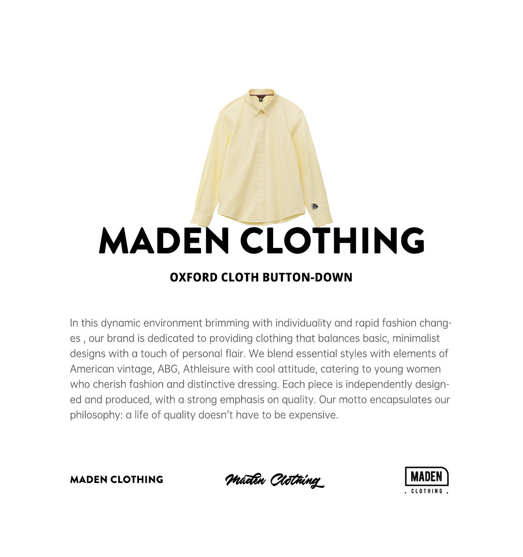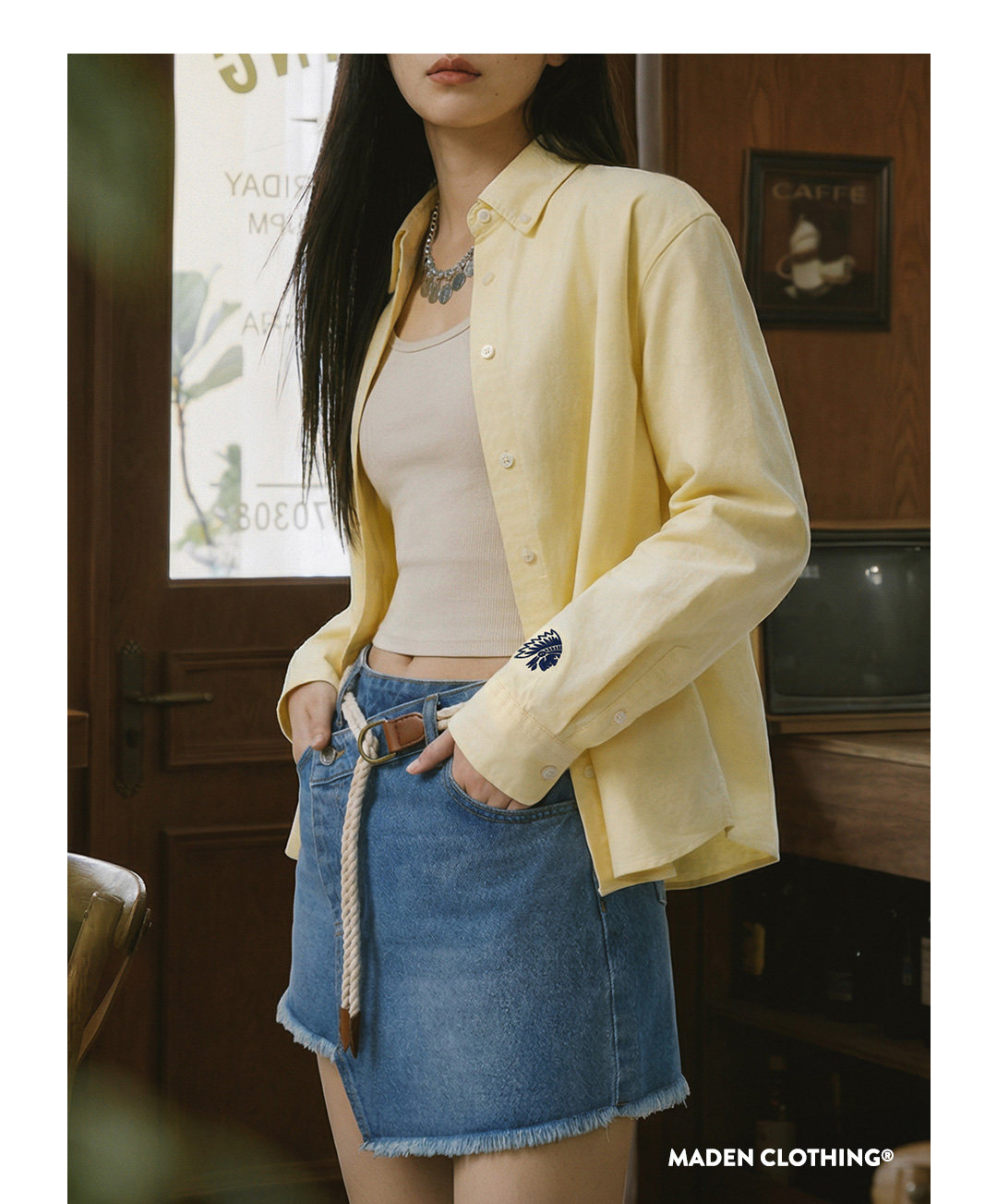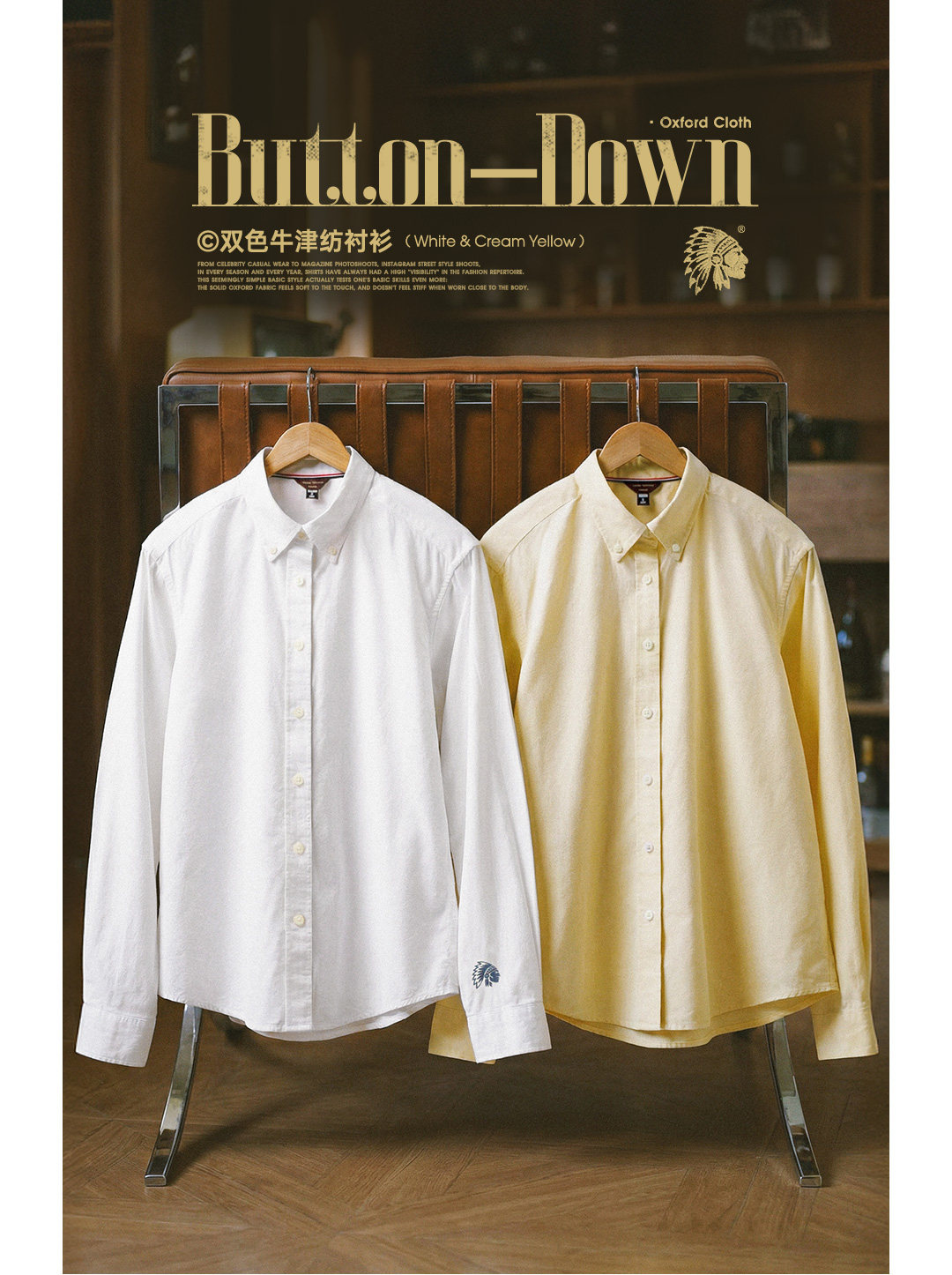 马登白色全纯棉翻领西装牛津纺衬衫刺绣叠穿长袖内搭上衬衣女士春