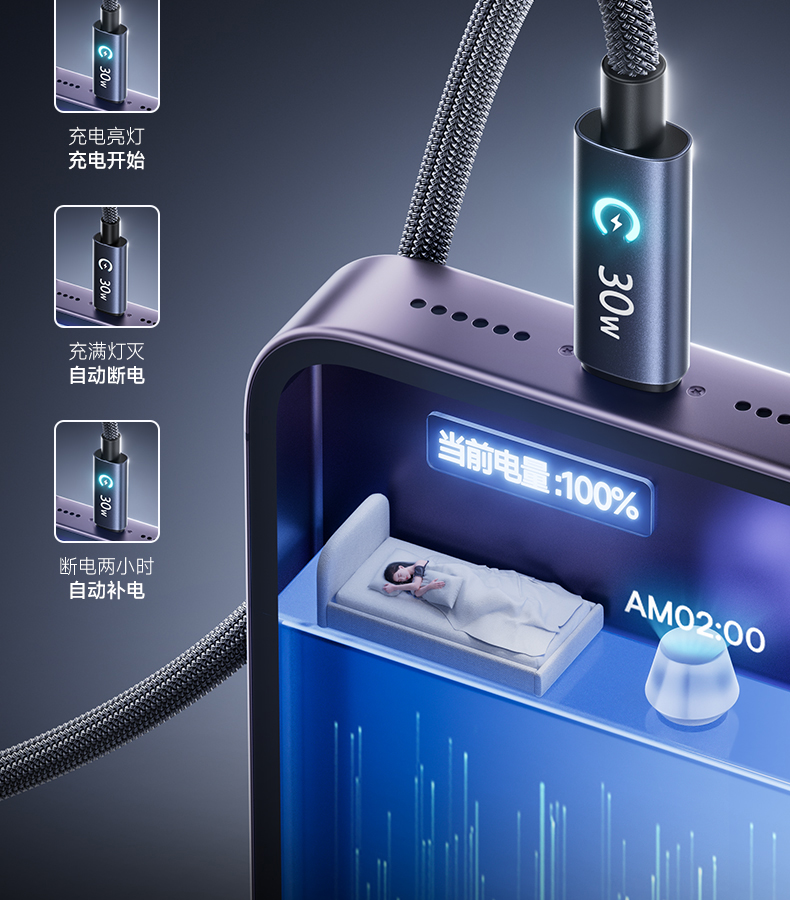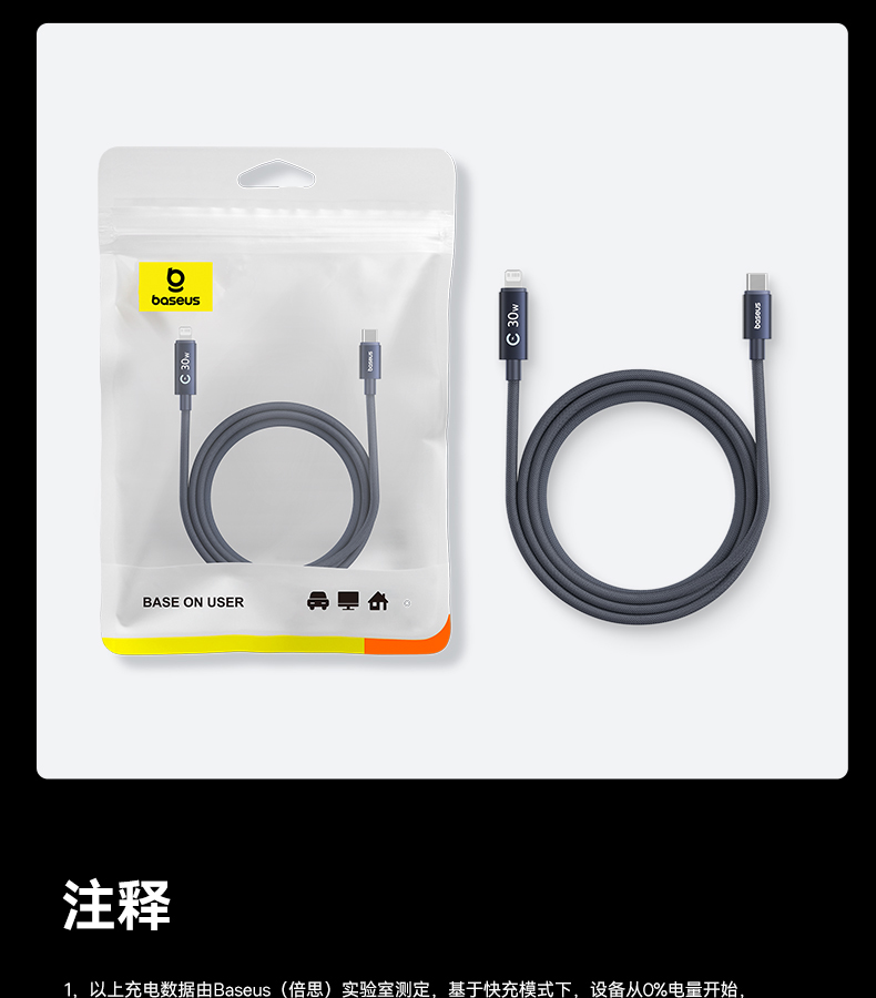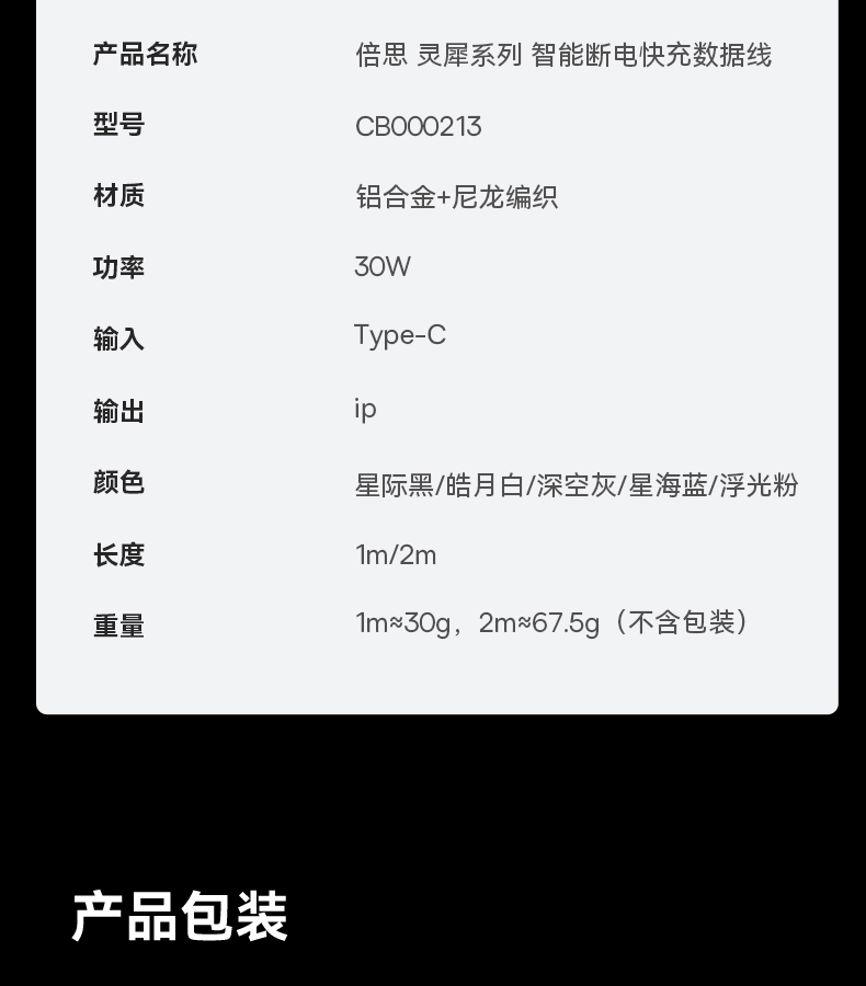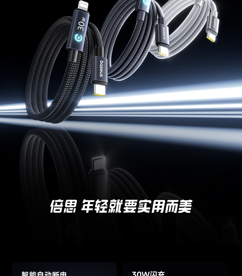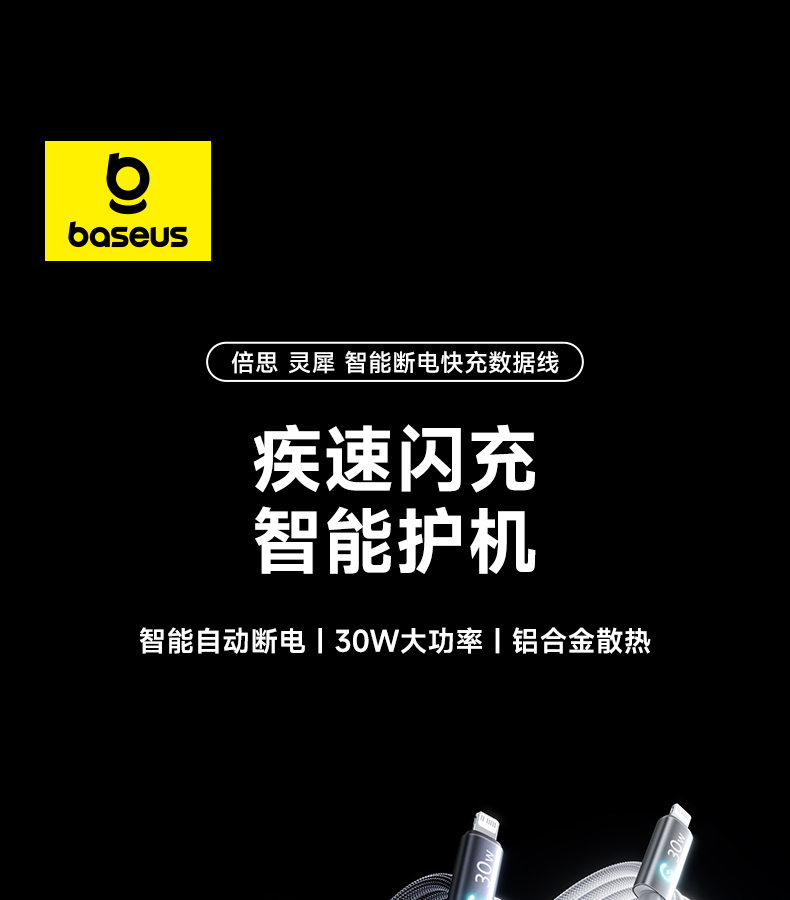 倍思 灵犀系列 智能断电快充数据线Type-C to ip 30W