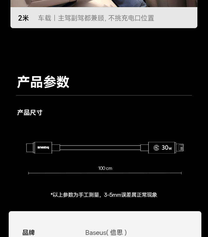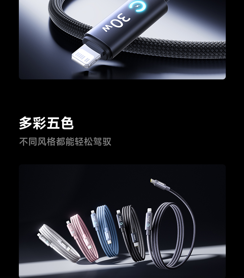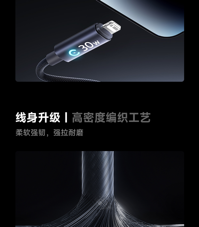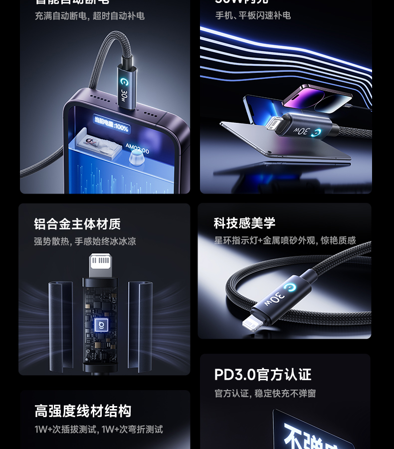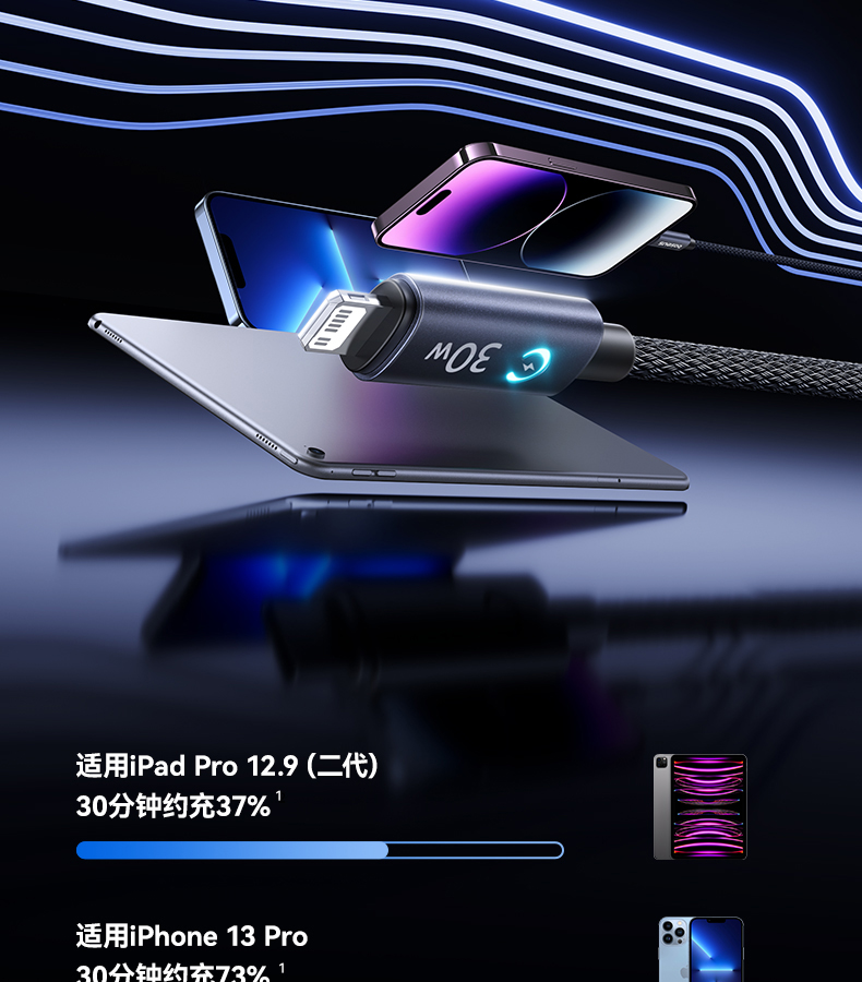 倍思 灵犀系列 智能断电快充数据线Type-C to ip 30W
