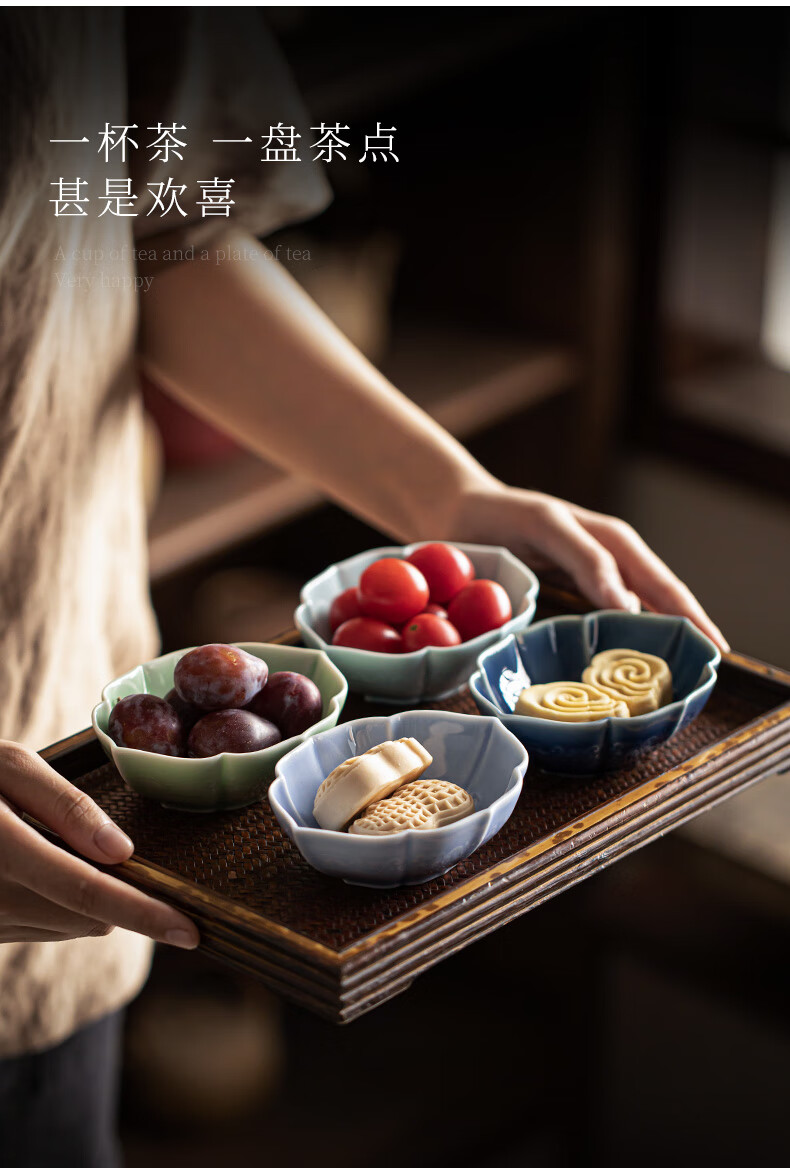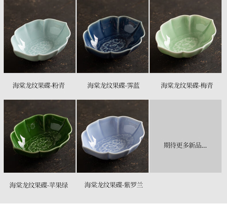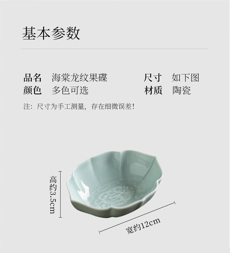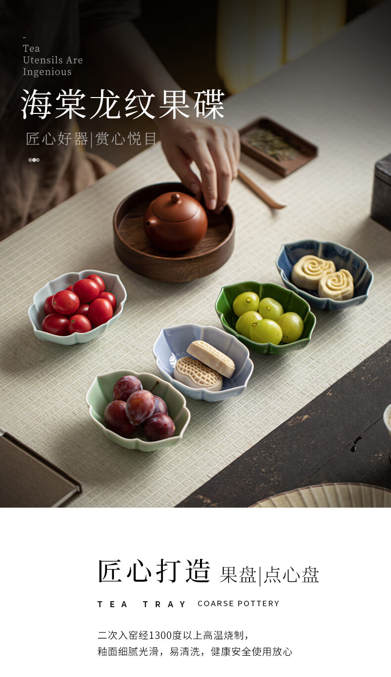 【海棠龙纹果碟】陶瓷家用水果盘茶点盘精致点心碗茶几零食干果小吃碟糖果摆盘醋碟