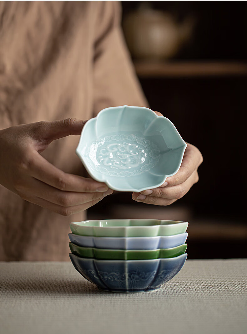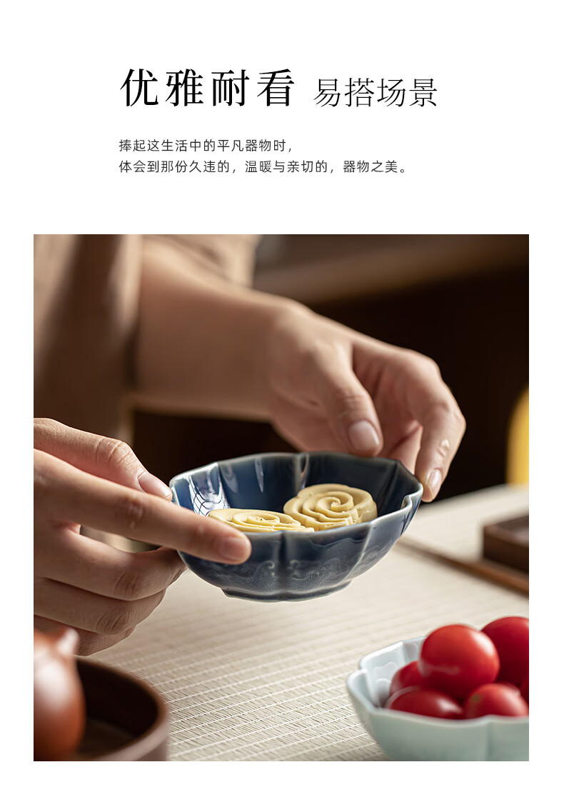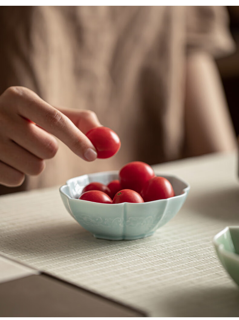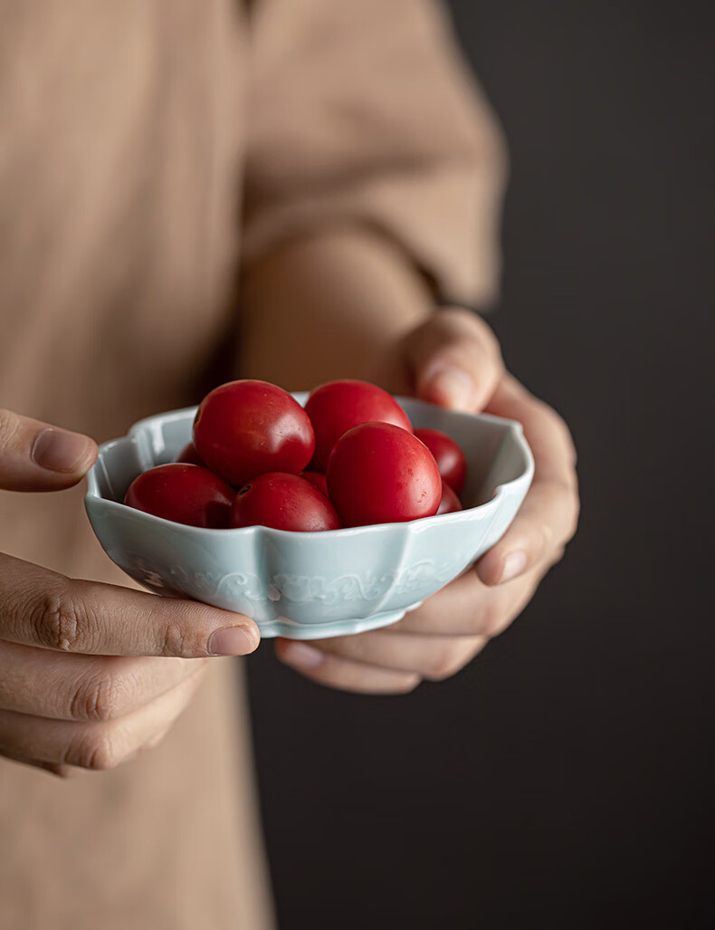 【海棠龙纹果碟】陶瓷家用水果盘茶点盘精致点心碗茶几零食干果小吃碟糖果摆盘醋碟