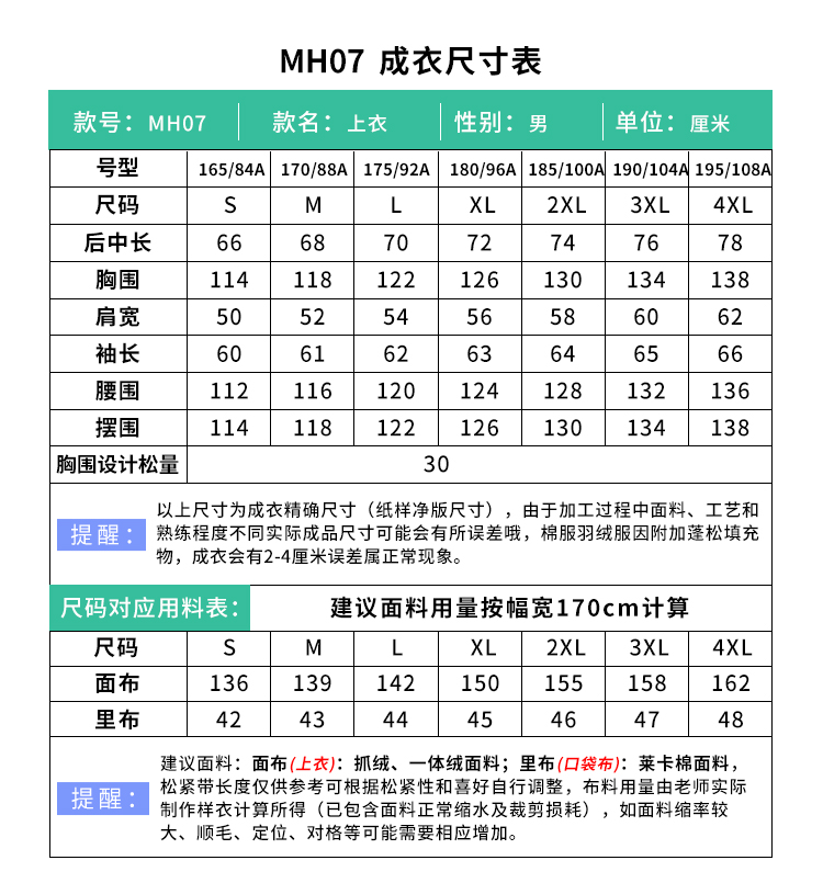裁缝学苑MH07立领半拉链抓绒卫衣纸样男装保暖长袖上衣样板图纸