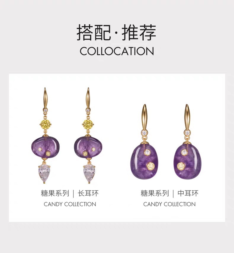 2楼Fellala/翡拉拉专柜「糖果」系列紫水晶耳钉耳环货号925430104吊牌价1199现价1079