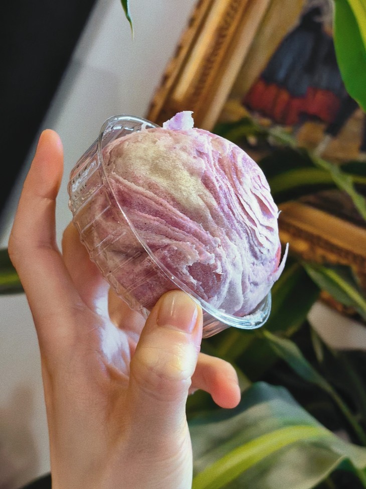 惹火香芋:酥脆香甜的紫薯千层酥皮,加上蜜汁现炒低糖芋泥馅,还有咸蛋黄碎肉松,一口下去,酥皮的脆、麻薯的弹、芋泥的绵、肉松的咸,细腻绵密,恰到好处!