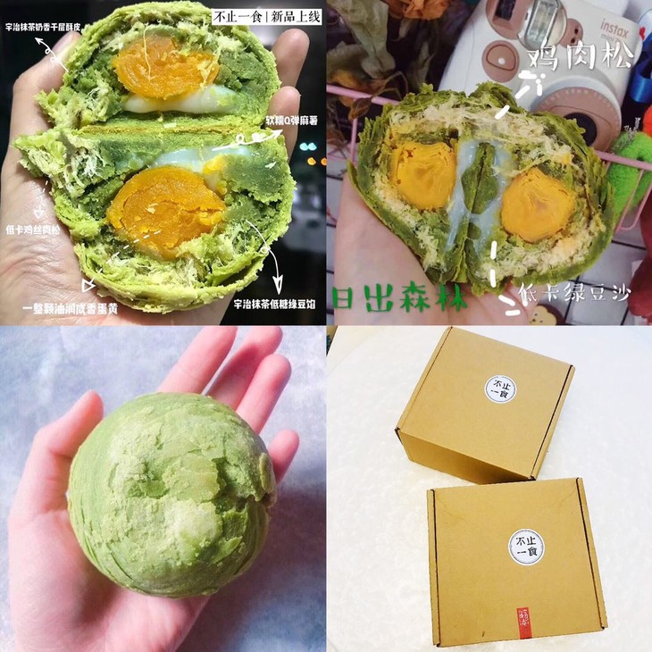 日出森林:宇治抹茶千层酥皮的酥脆,加上低卡清真鸡丝肉松和低糖绿豆,还有沙沙流油的超大蛋黄和香甜软糯的弹弹麻薯,共同构成了独特口感,层层酥脆,清甜咸香,最后的麻薯更是带来别样享受!