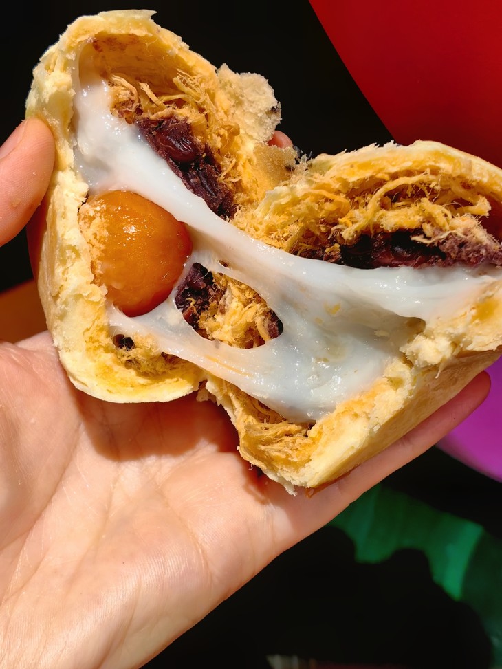 糯米蛋:是用了泰国香糯米哦,再加美国米格农场芝士,软糯香甜,浓郁醇厚!超大的流油咸蛋黄,也是沙软咸香,还有台湾金丝猪肉松的加入,鲜香美味相互映衬,口感丰富饱满!