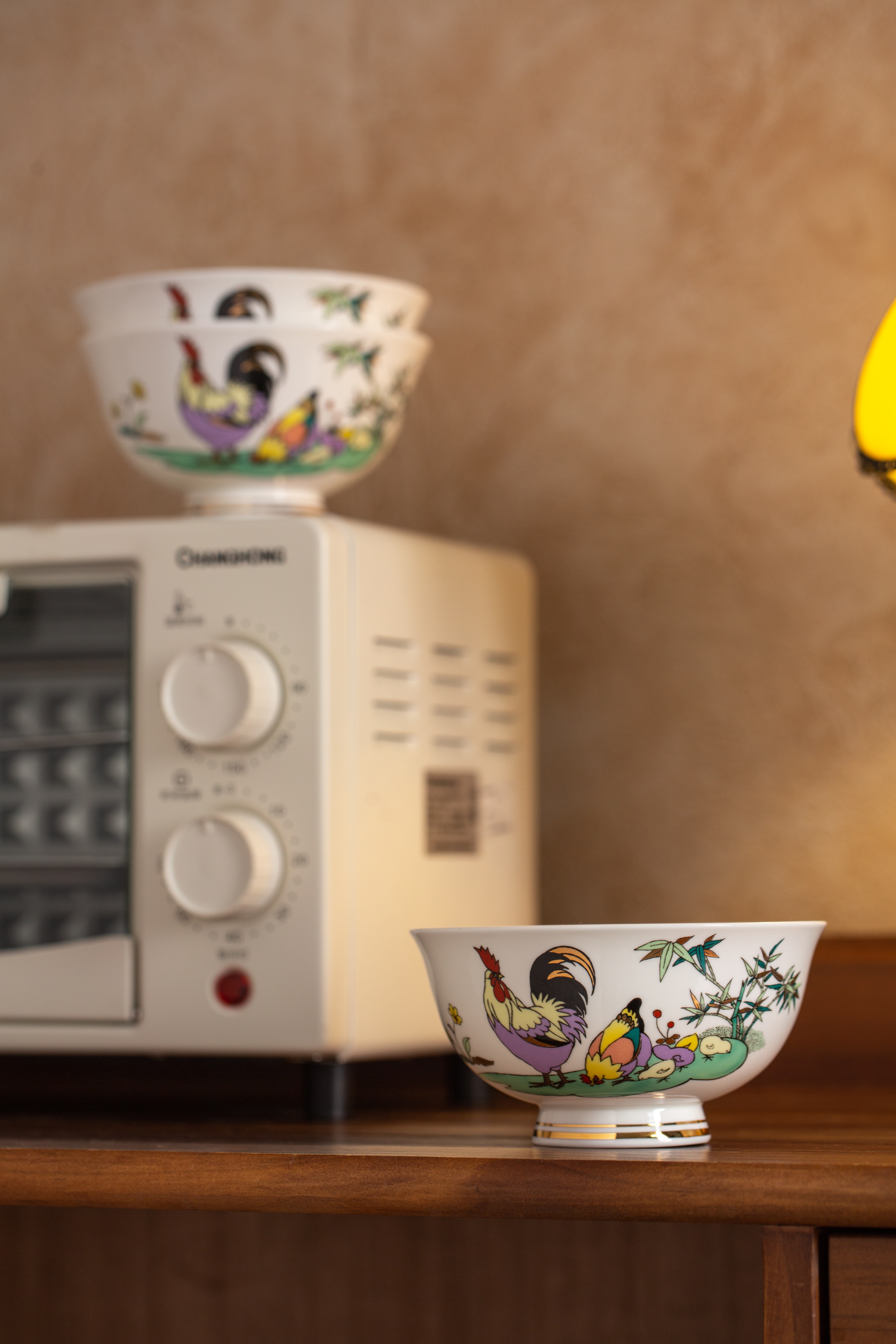 “鸡公碗”是南粤所特有的文化符号,也是清远有代表性的手信产品之一,以高白泥与高足宫碗,佐以适当金边点缀,让餐桌上的仪式感油然而生