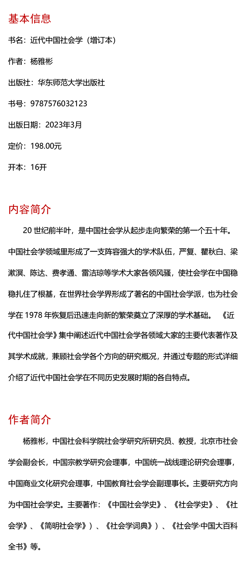近代中国社会学 增订本 上下册 历史与社会学文库 杨雅彬
