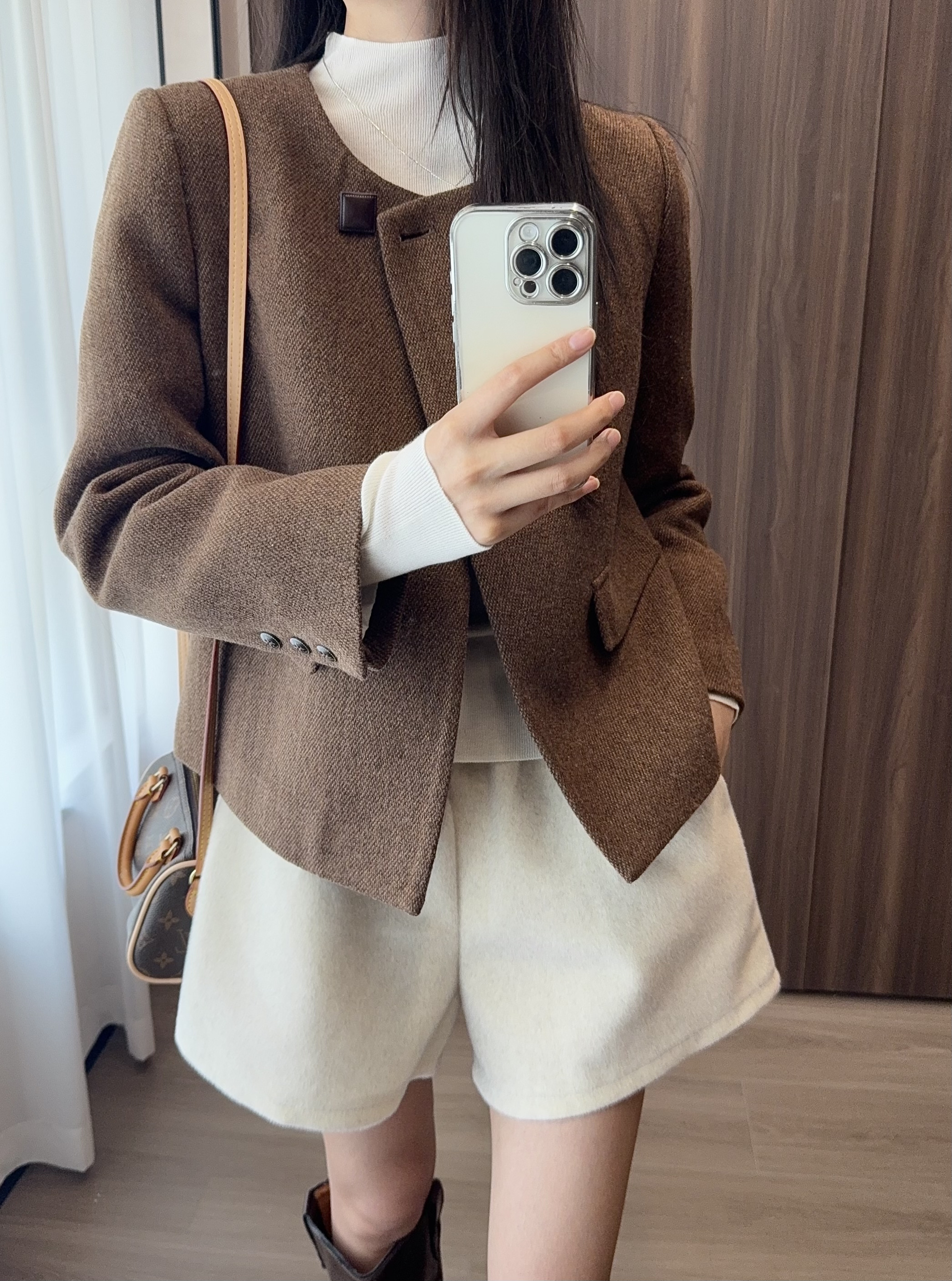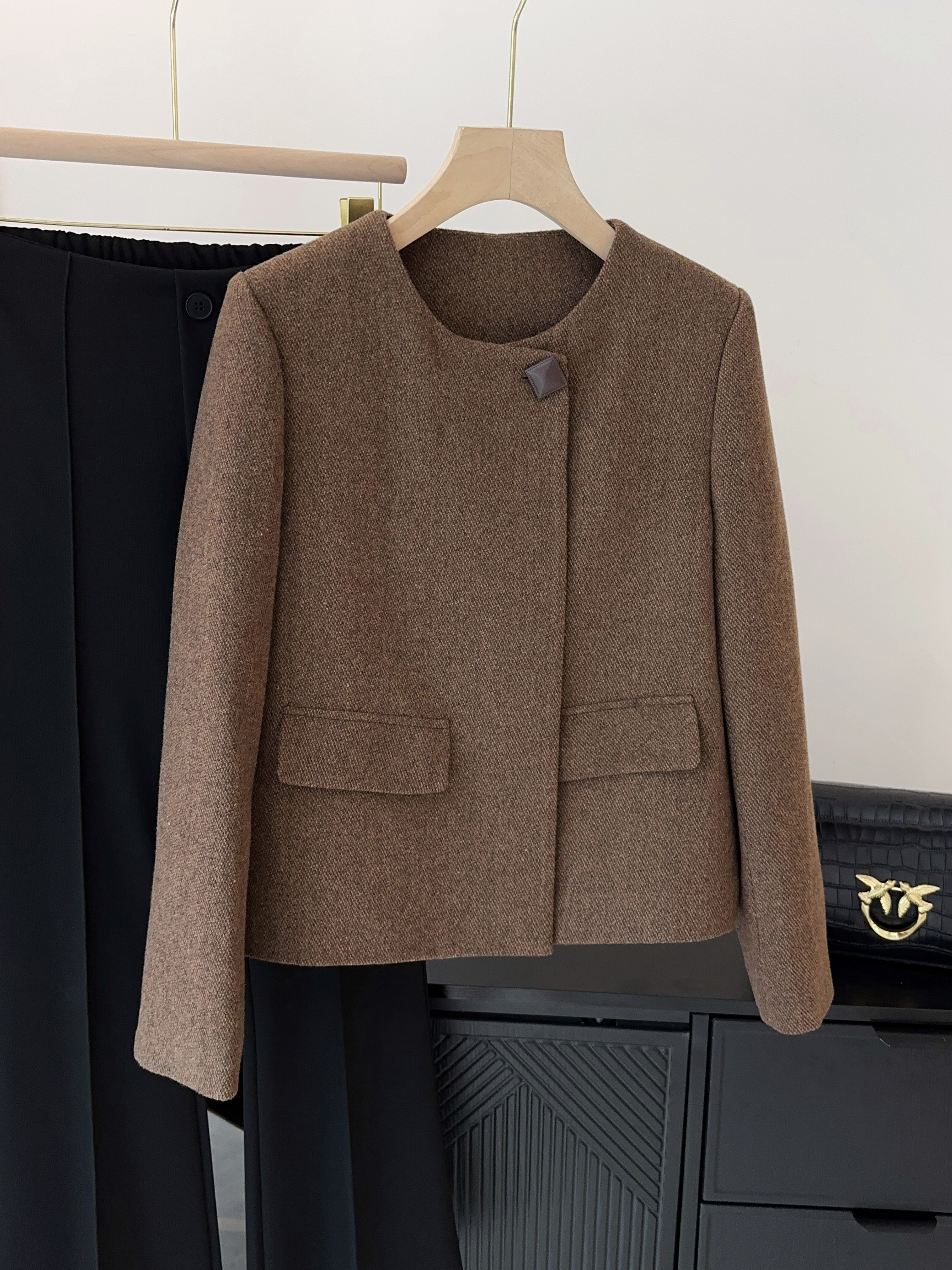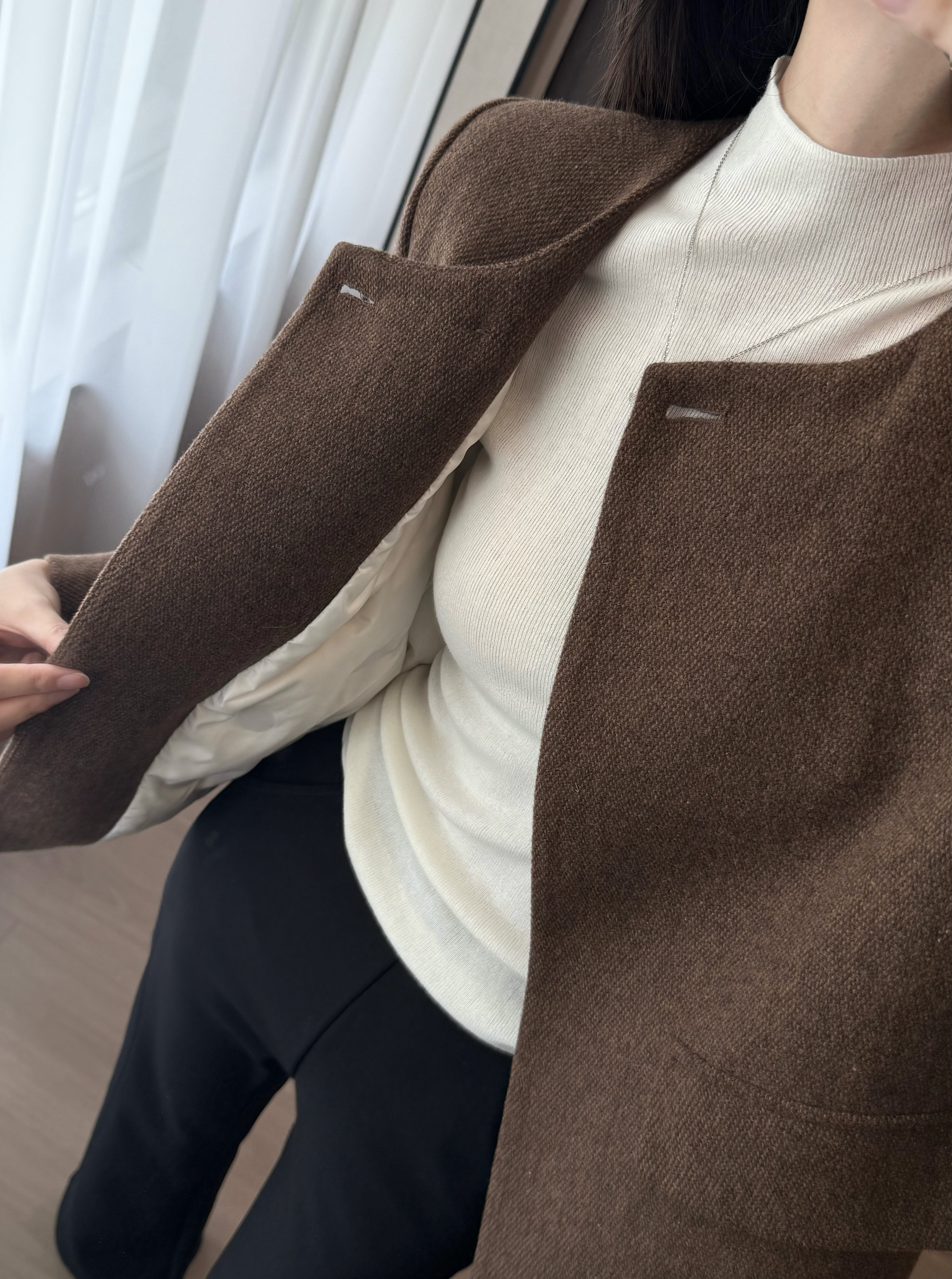✅50%绵羊毛外层,厚实挺括有质感,自带羊毛的软糯保暖,贴身穿温柔不扎。