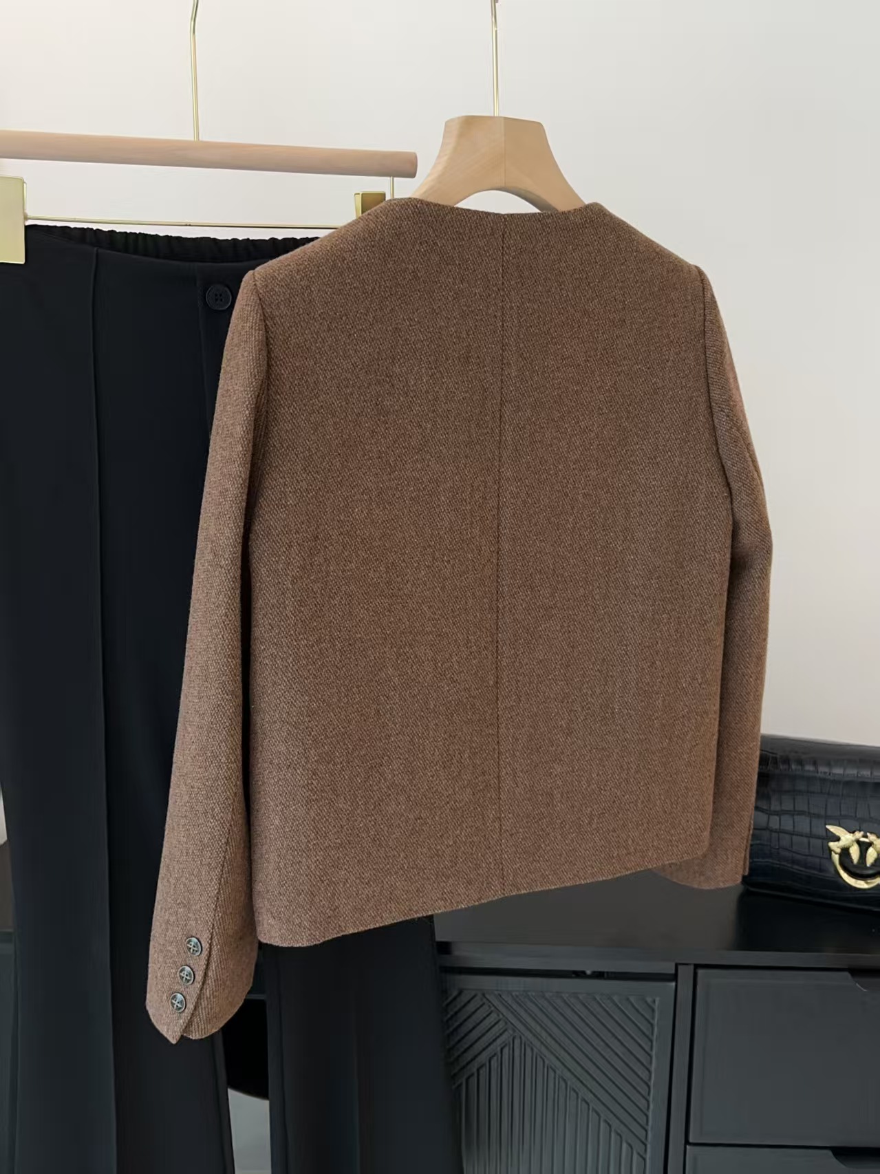 ✅正肩短款版型,修饰肩部线条,溜肩、窄肩都能穿出挺拔体态,显瘦又显精神~
