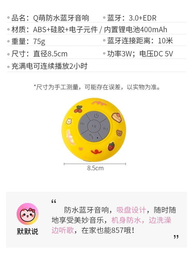 可爱防水无线蓝牙小音响吸盘浴室迷你小型低音炮桌面迷你音箱通用便携音响,