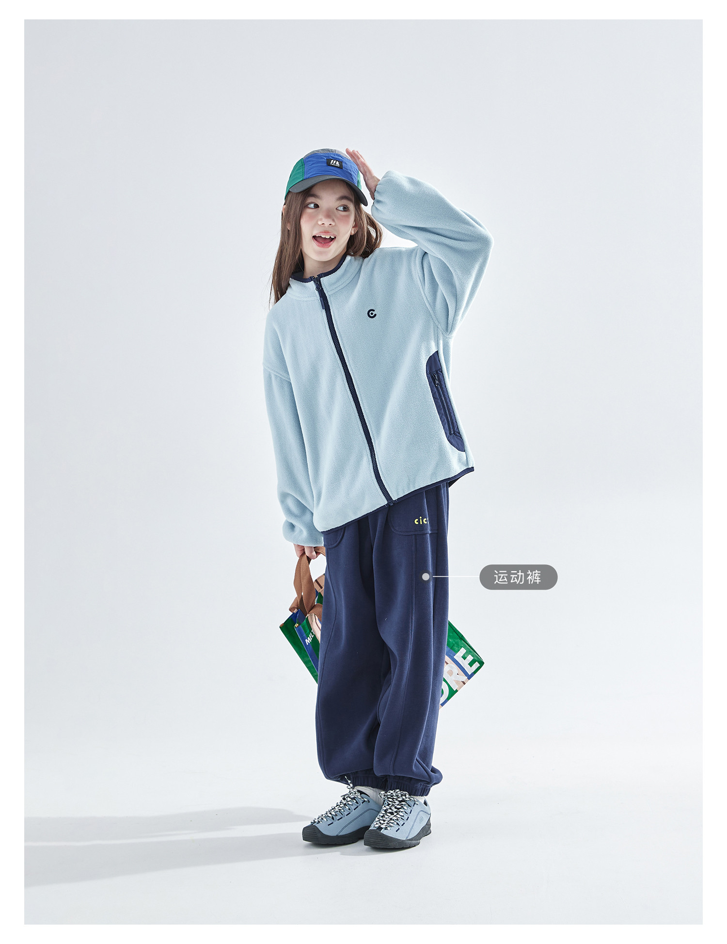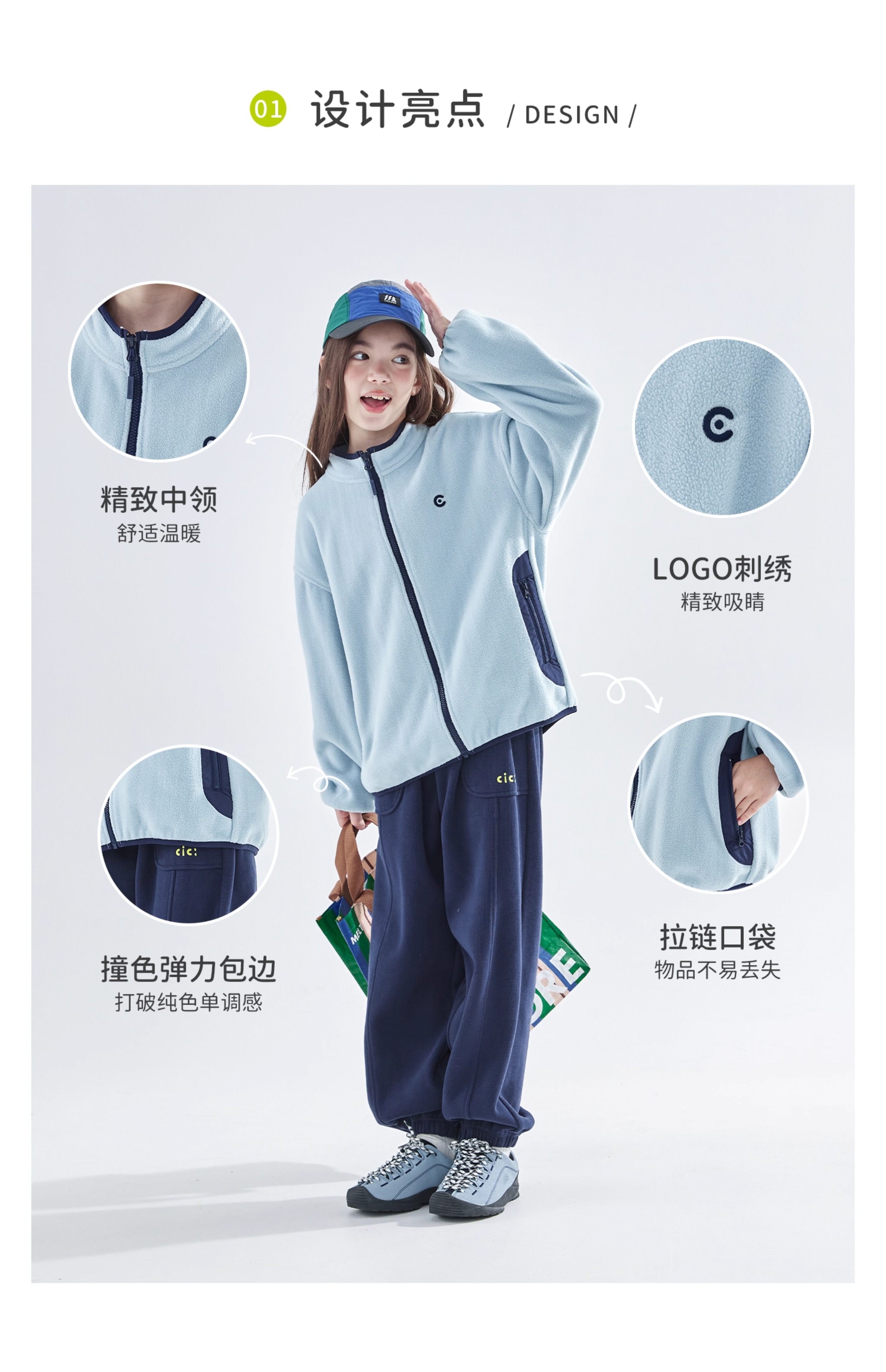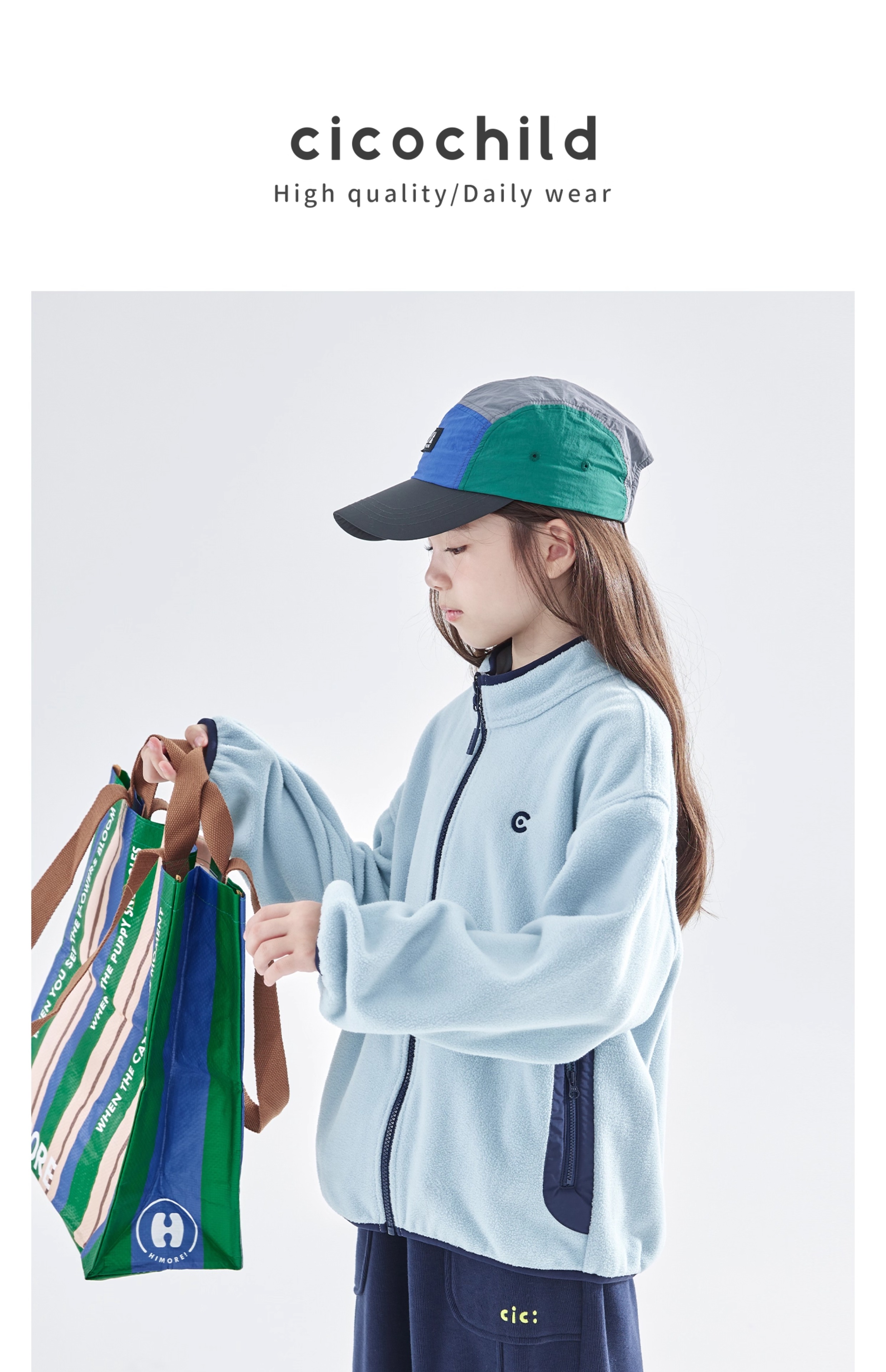 cicochild 2025年秋季新款女童双面摇粒绒外套抗静电中领撞色上衣