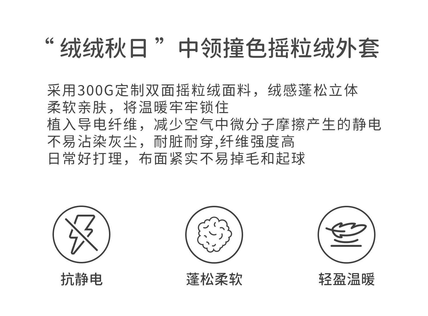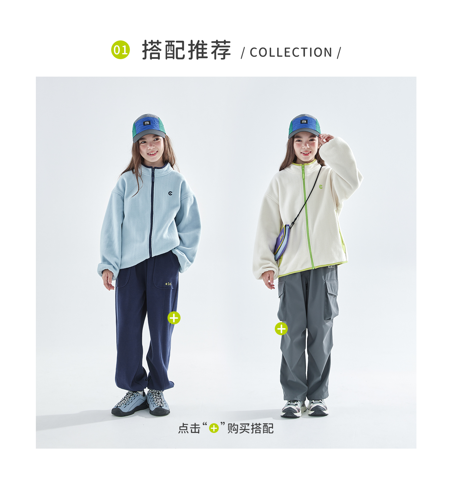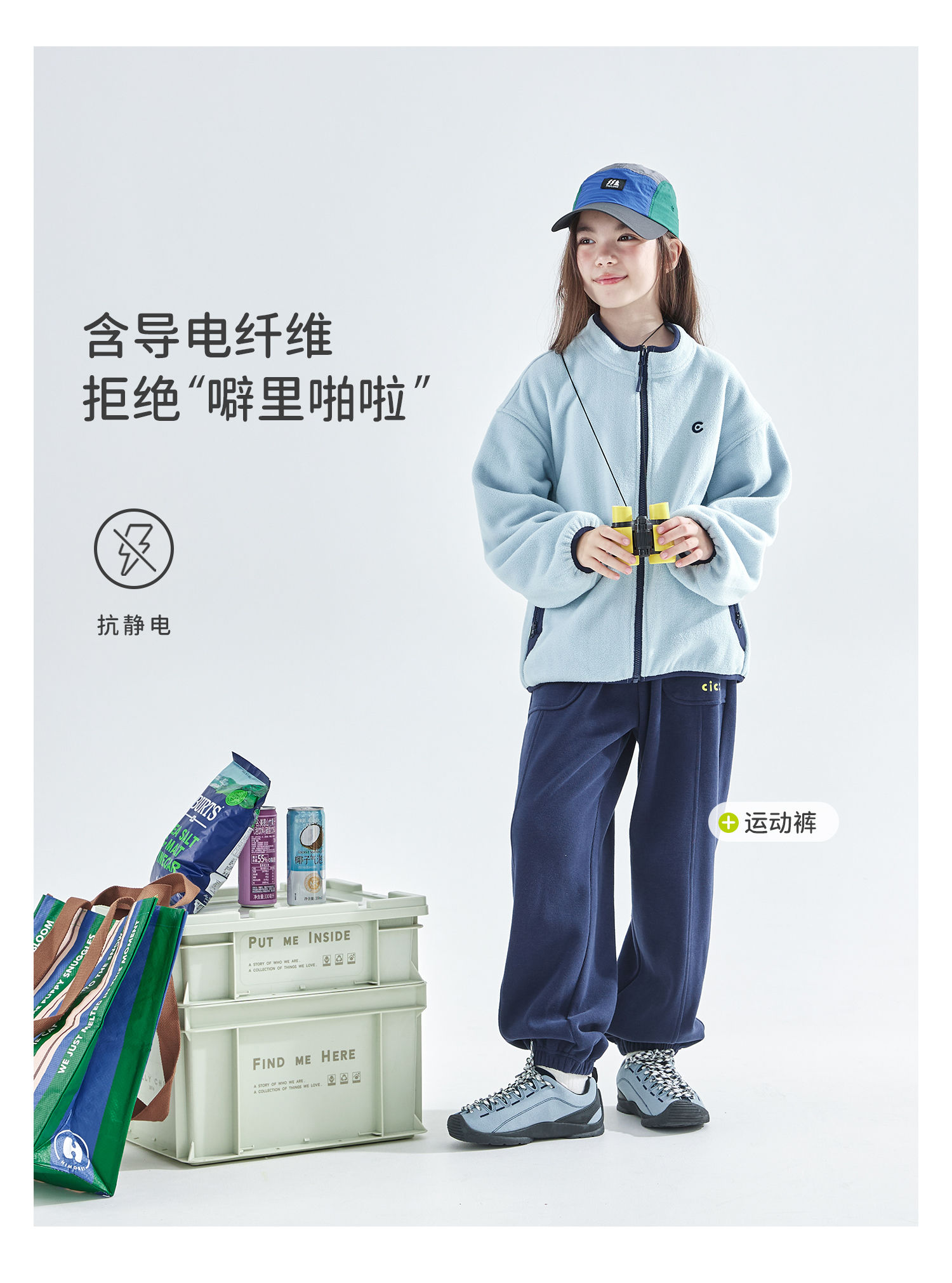 cicochild 2025年秋季新款女童双面摇粒绒外套抗静电中领撞色上衣