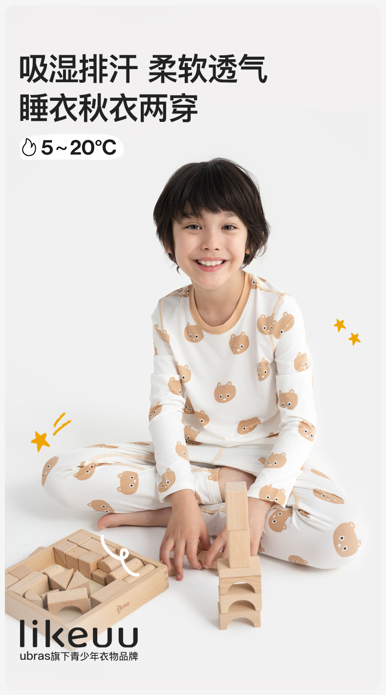 (11.11)ubras旗下likeuu儿童睡衣秋衣裤套装男女大童轻薄睡衣家居服空调