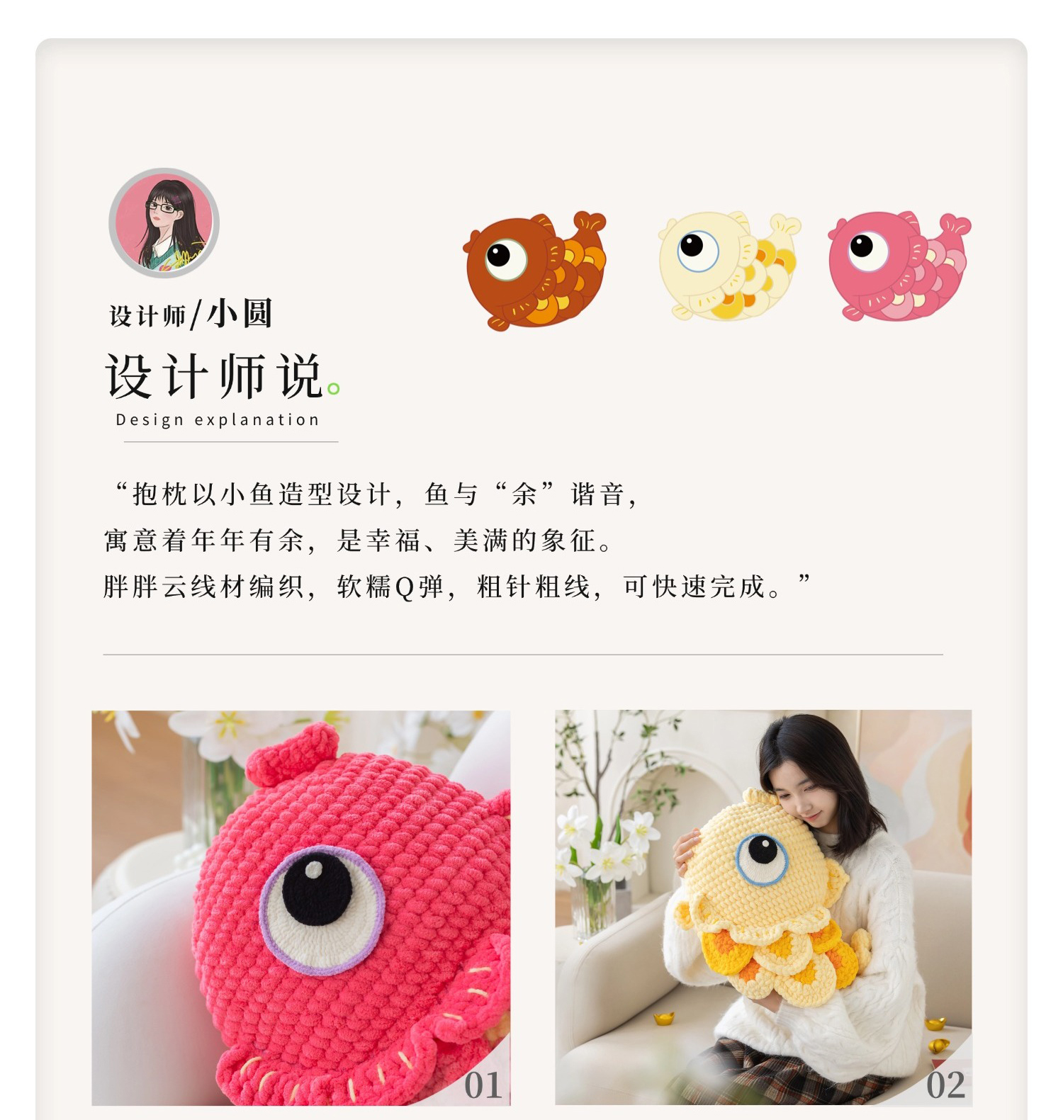 苏苏姐家年年有余抱枕手工diy编织钩针胖胖云毛线团自制抱枕材料包
