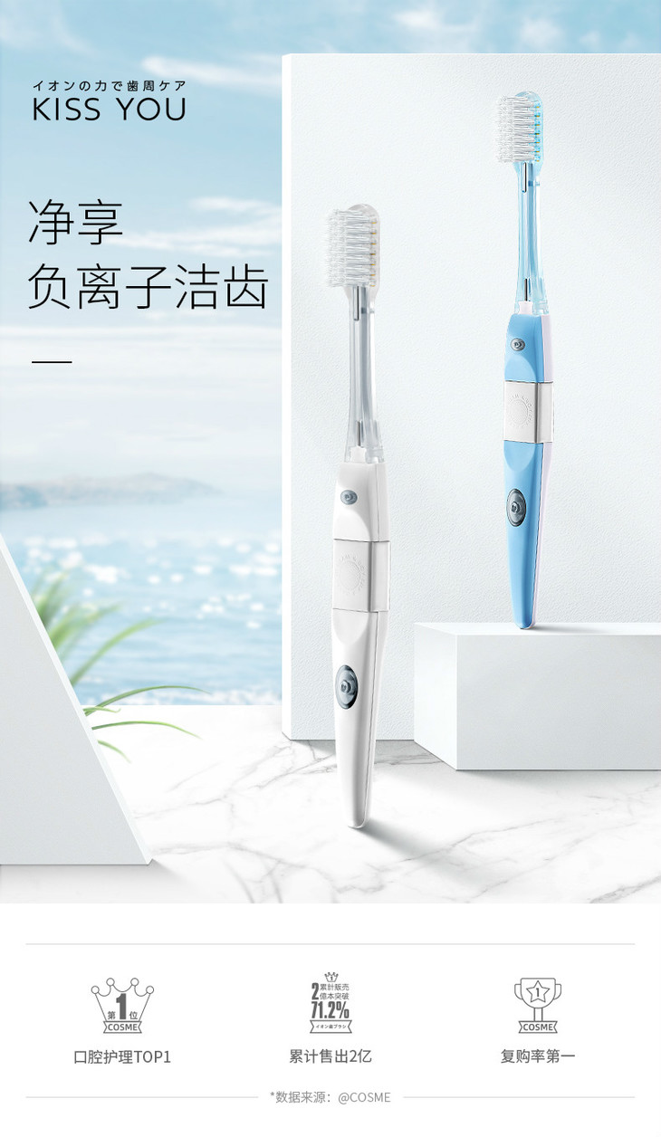 【无需牙膏 负离子去渍】日本Kiss you负离子牙刷极细软毛祛除口臭