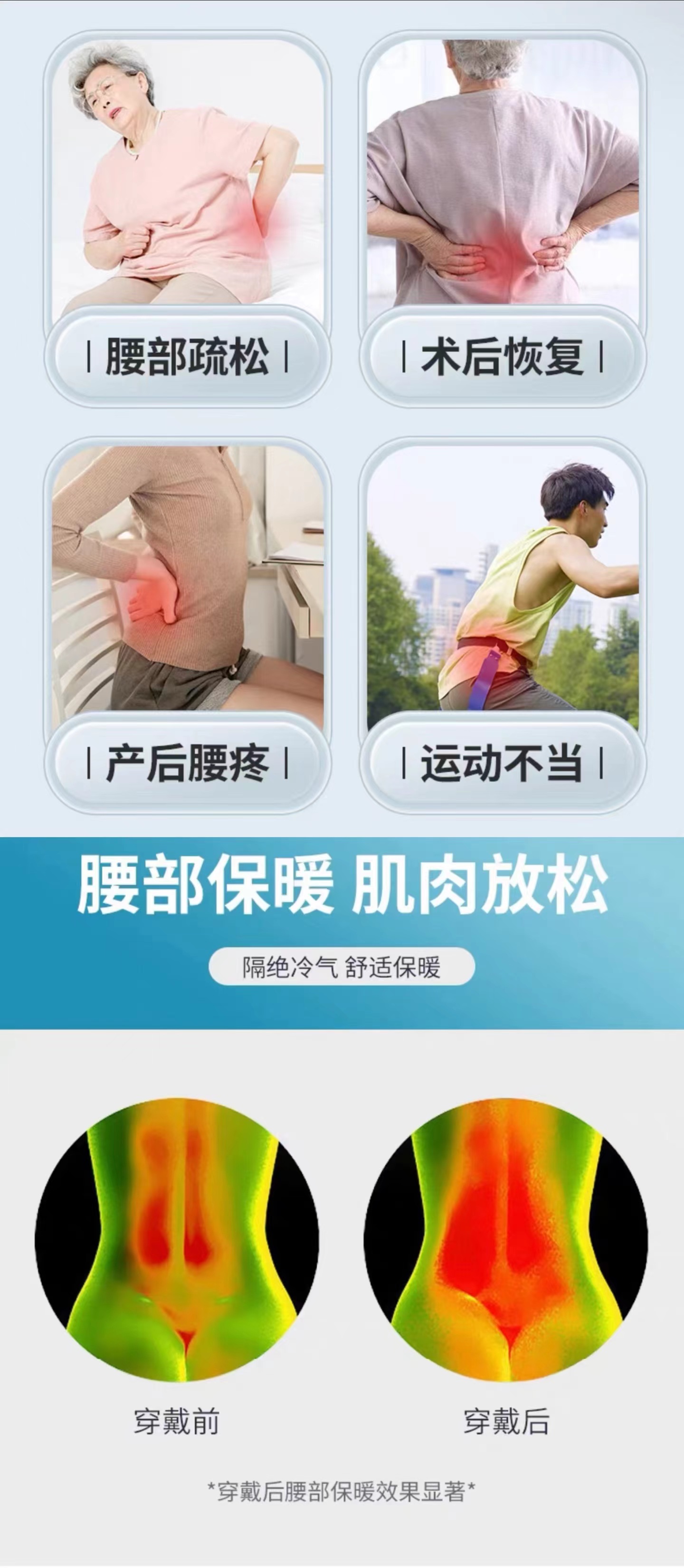 新款情侣款保暖护腹护腰带!男女皆可用的一款护腰,立体版型,即能保护腰部 防止腰肌劳损,又能给怕冷的宝子们一层厚厚的温暖!暖腹暖腰部两用!羊毛材质就像给腰腹裹上了一层小毛毯,温暖li刻就来了,无论是在寒风中行走,还是长时间在户外工作,它都能让你的腰腹部时刻保持暖暖的!高密度的保暖带来的触感是细腻的温和的,很暖很亲肤轻巧而温暖!不紧绷?穿上炒鸡暖和?可以穿在卫衣?毛衣里面,暖到你心里!它的弹性特别好,不会勒得人难受,你可以自由活动,弯腰、转身都不受影响,而且腰带贴合身体曲线,就像你的第二层皮肤一样舒适!别再让寒冷侵袭你的腰腹啦!