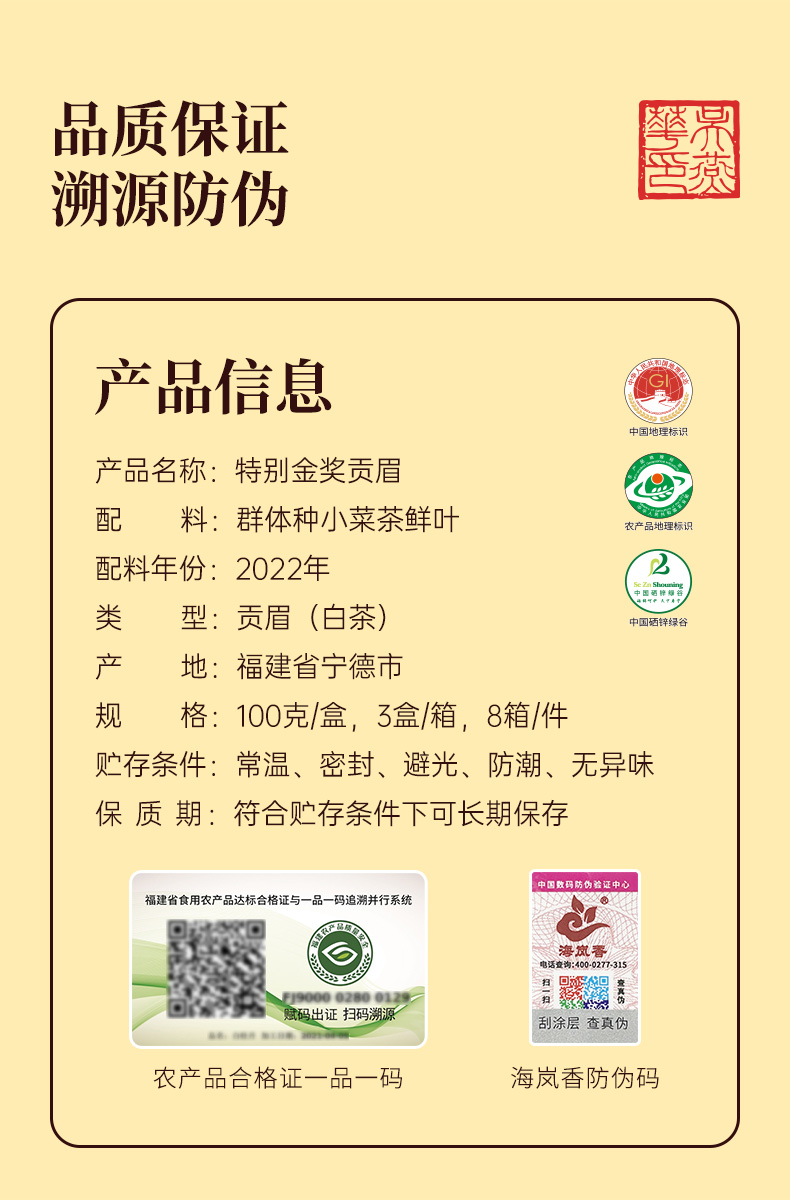 海岚香 2022特别金奖贡眉 国风礼盒 100g*3盒/箱