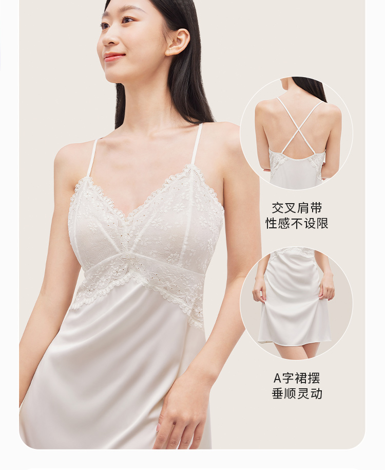 【积分兑换】奶糖派大胸显瘦珍珠裙吊带裙蕾丝超薄轻柔舒适家居睡裙女送女友