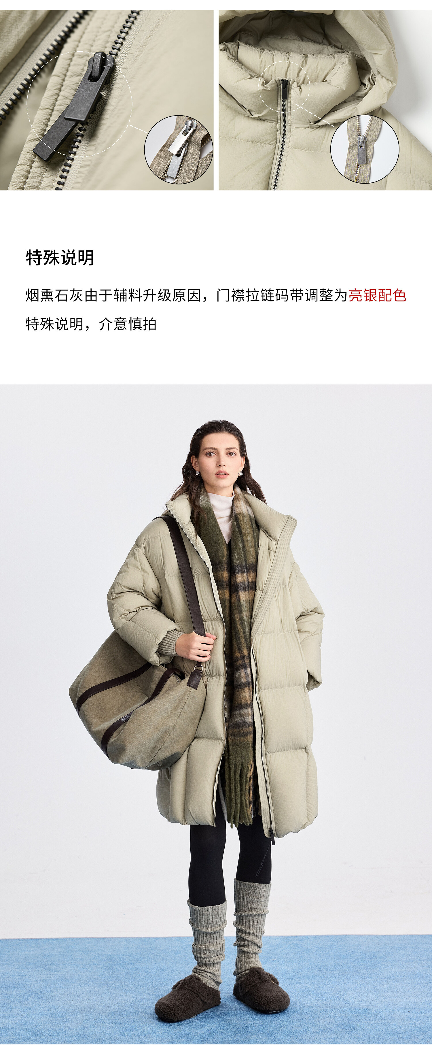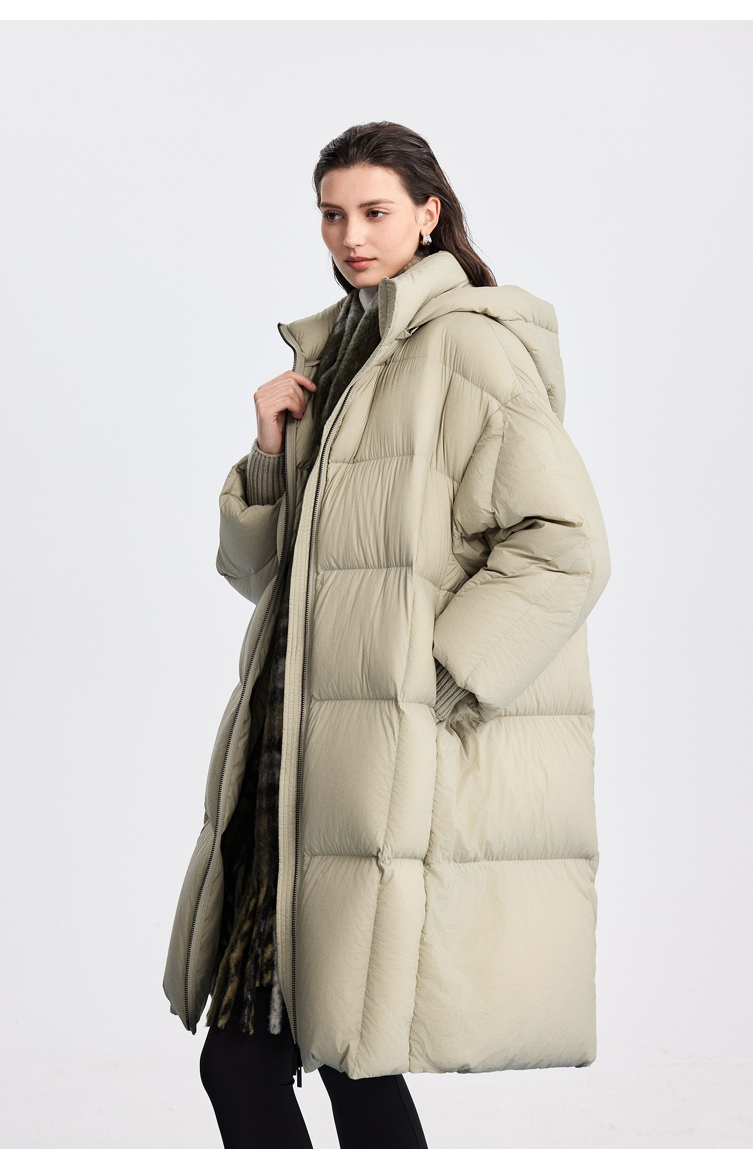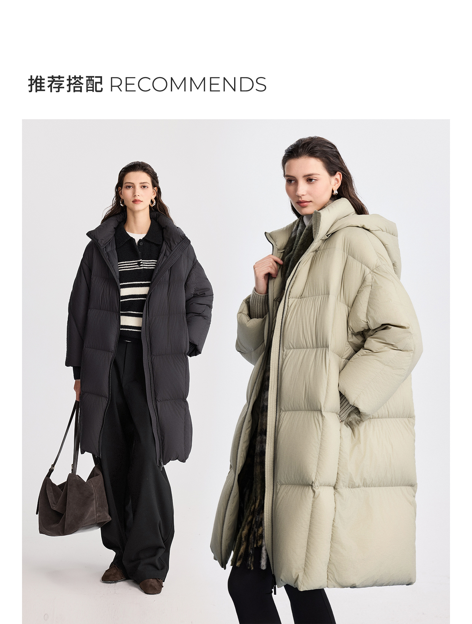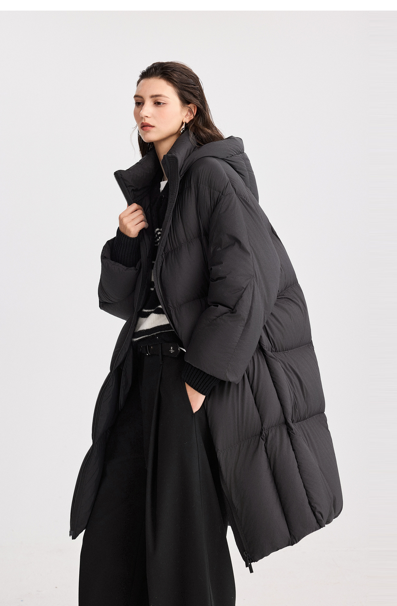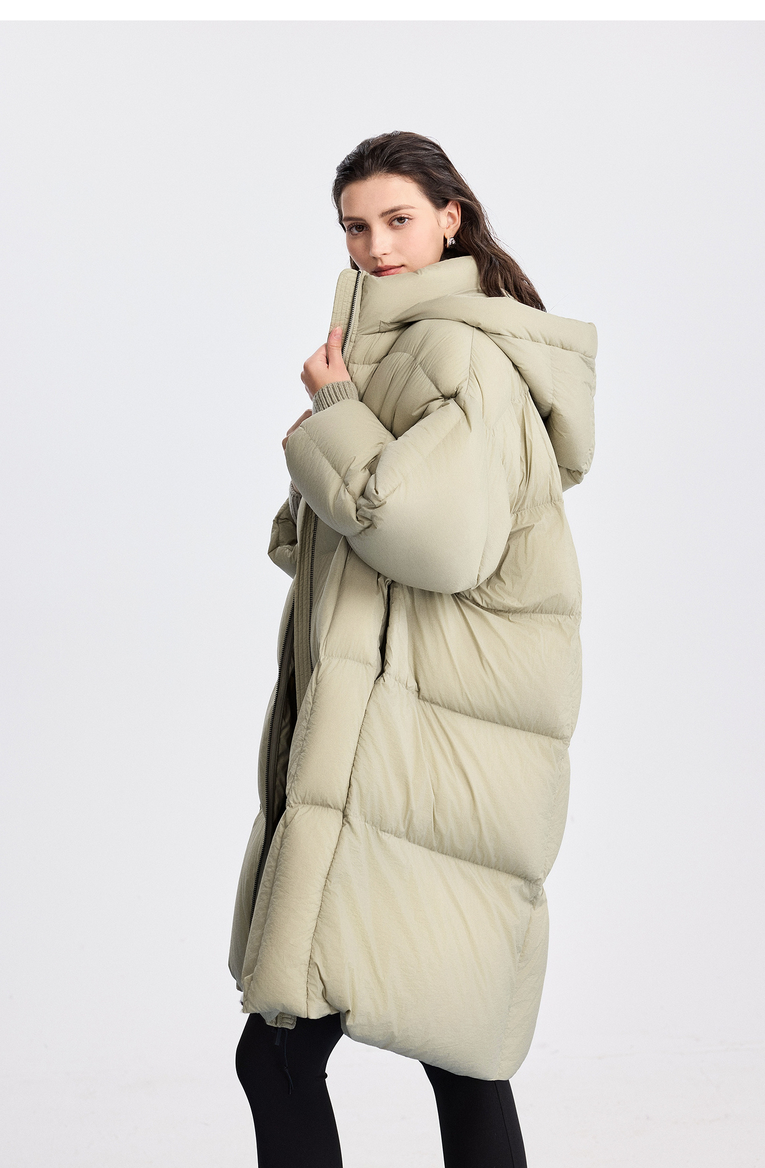 棉仓366615021-【90白鹅绒】褶皱肌理感连帽羽绒服女25秋冬中长款过膝外套