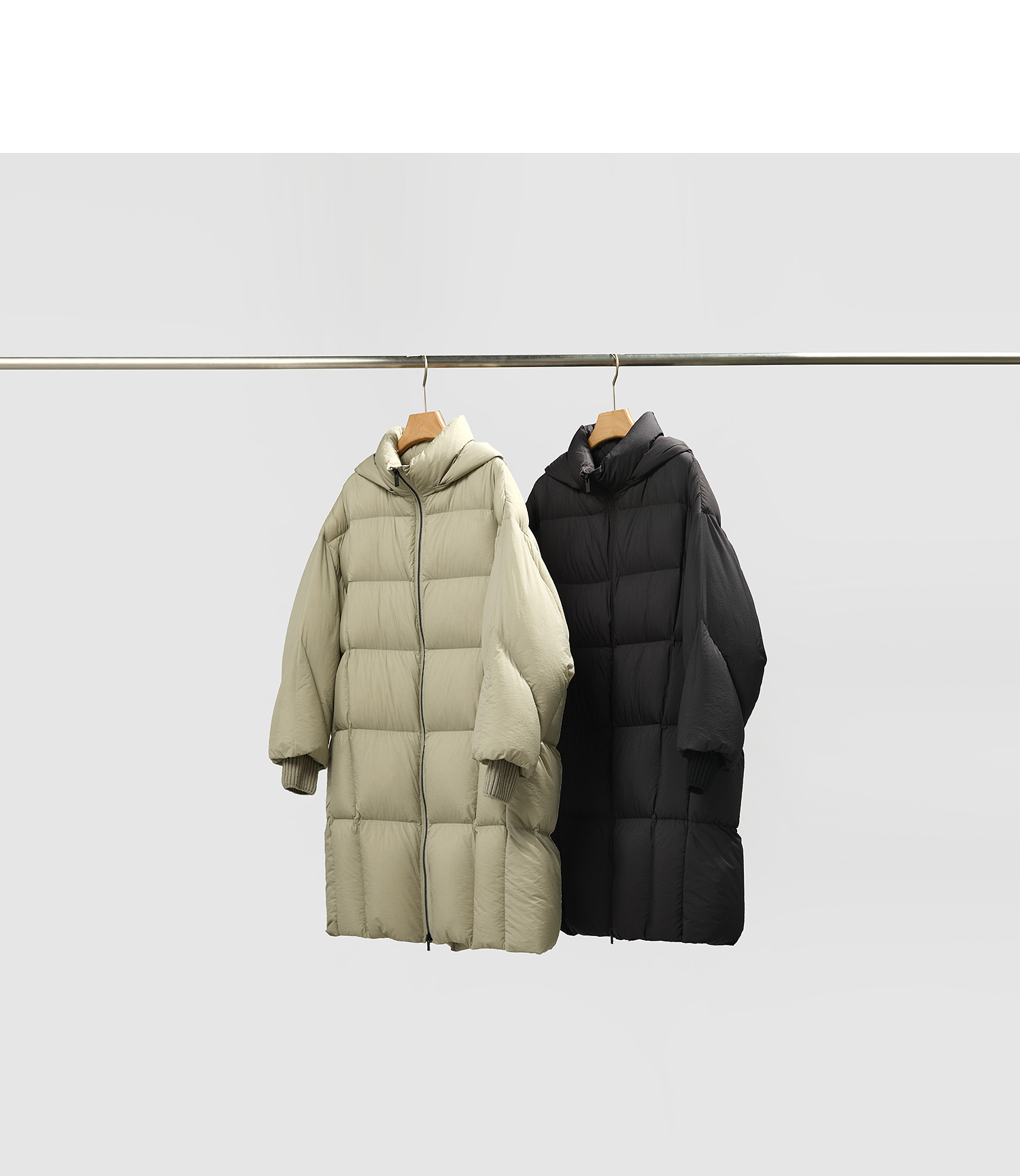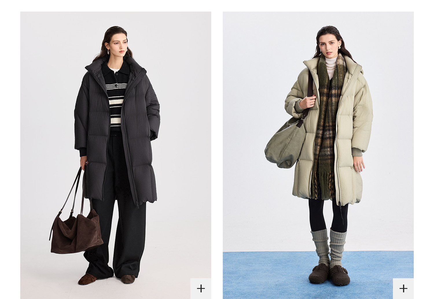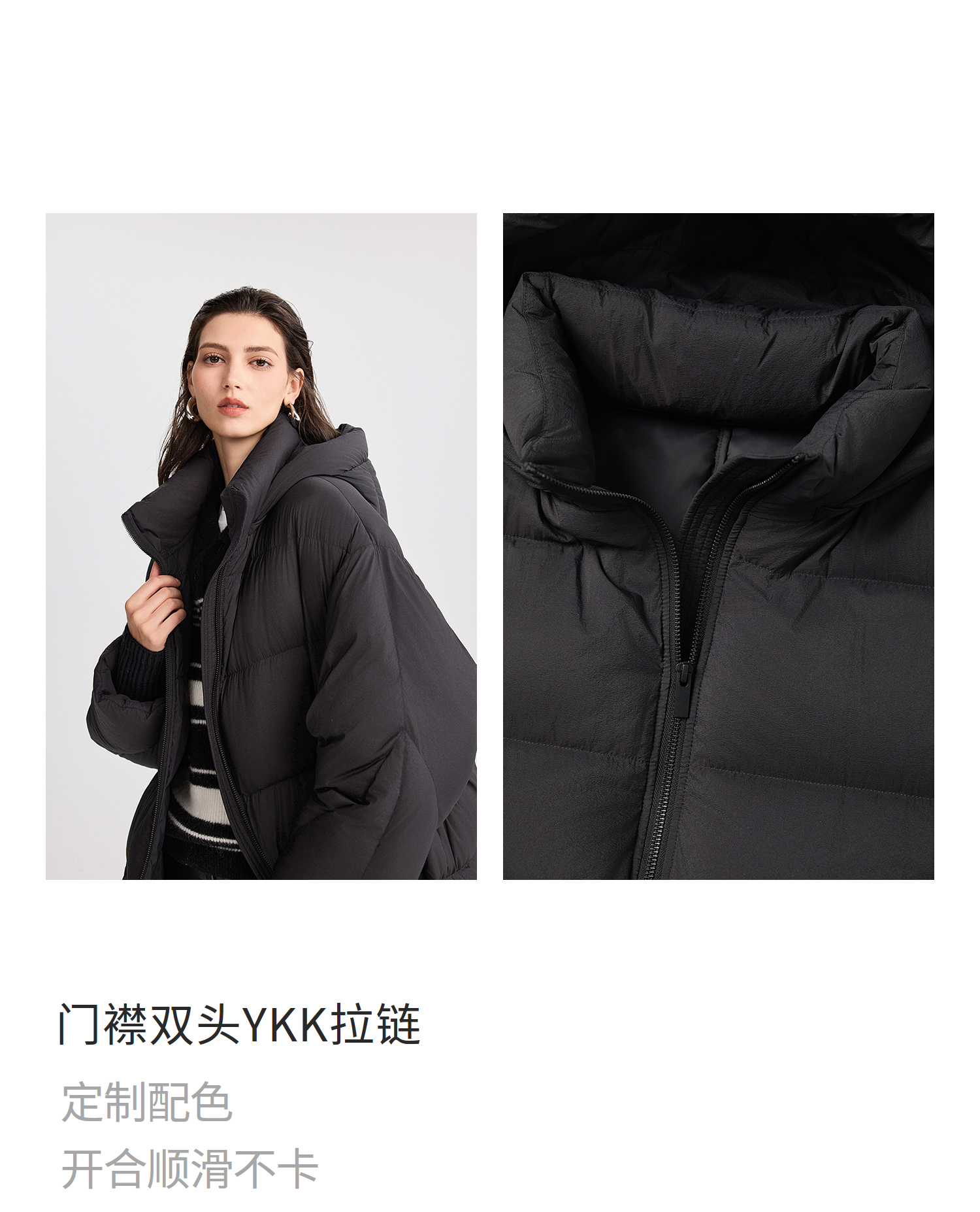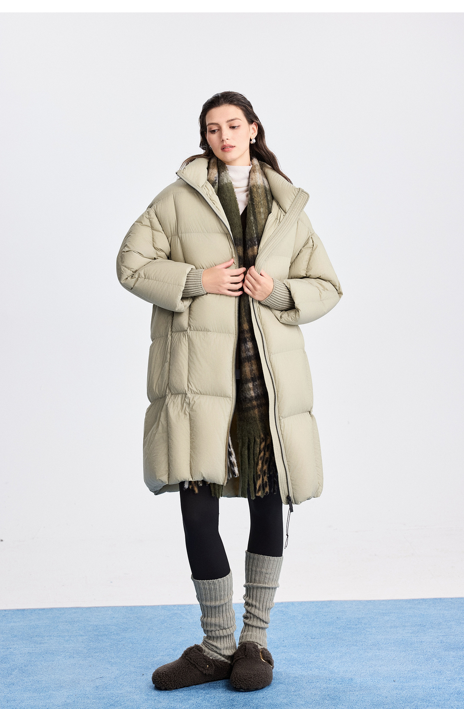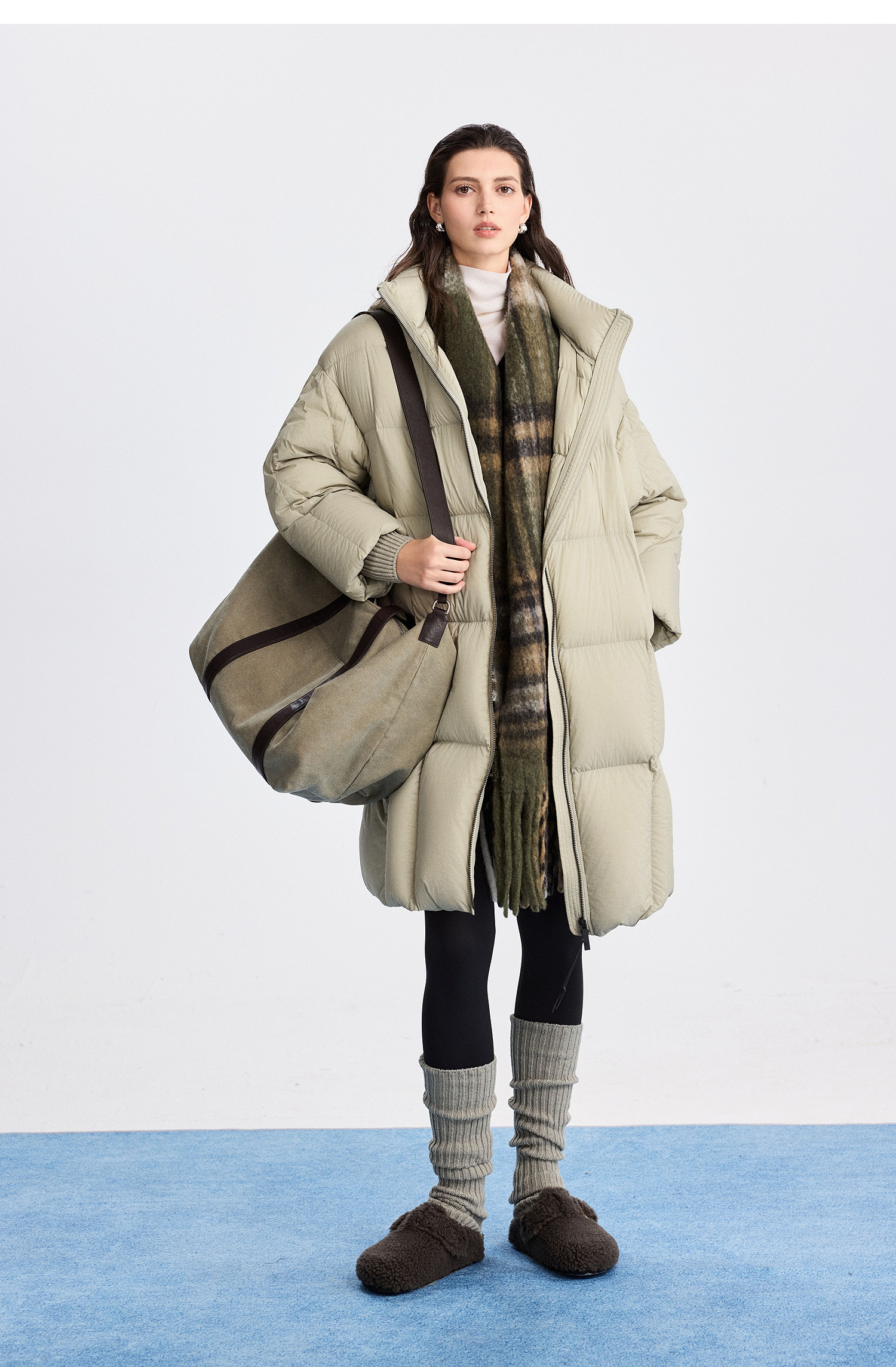 棉仓366615021-【90白鹅绒】褶皱肌理感连帽羽绒服女25秋冬中长款过膝外套