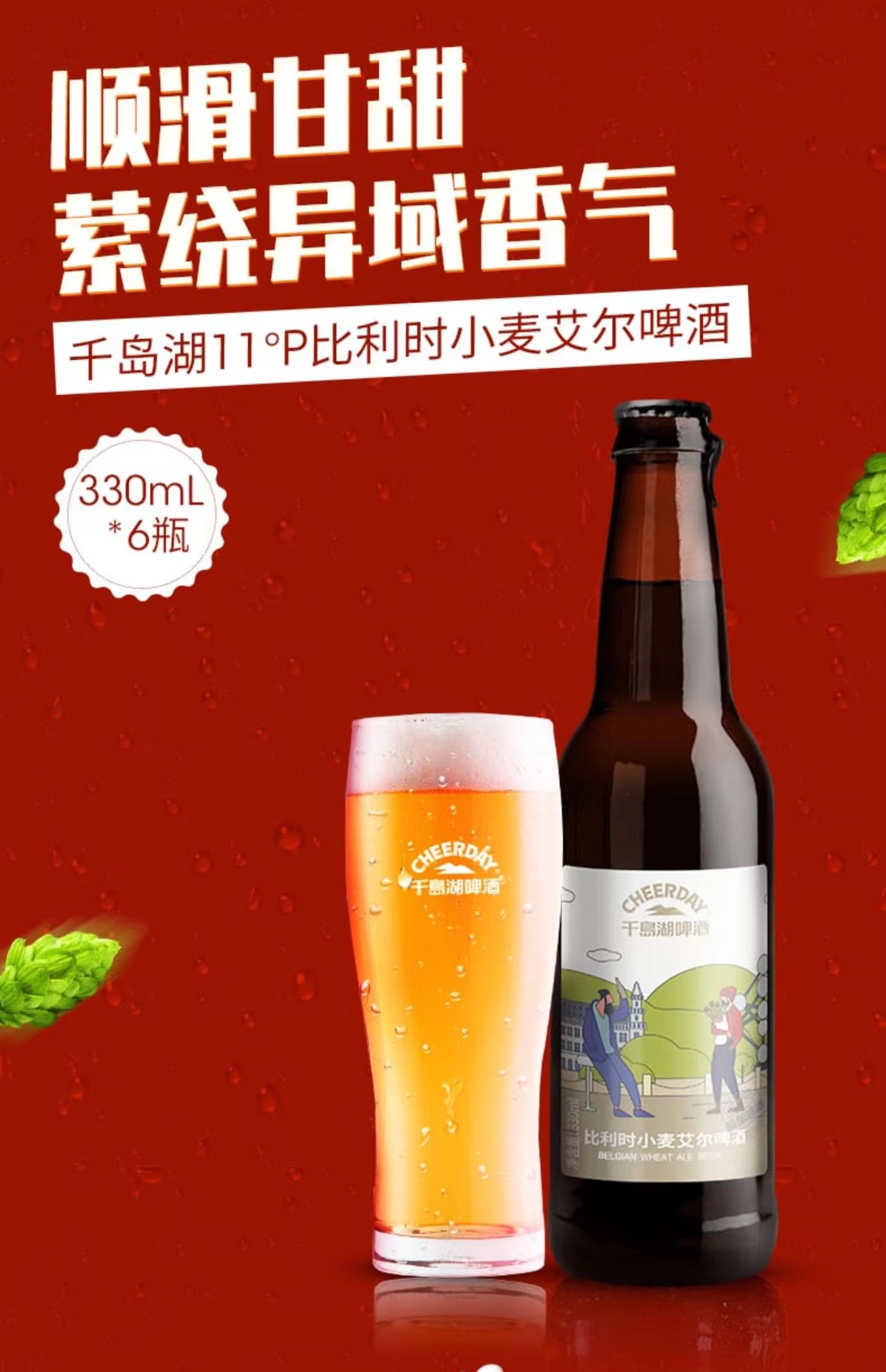 11°P千岛湖啤酒 比利时小麦330ml*6瓶 经典原浆啤酒瓶装