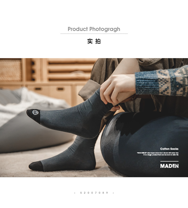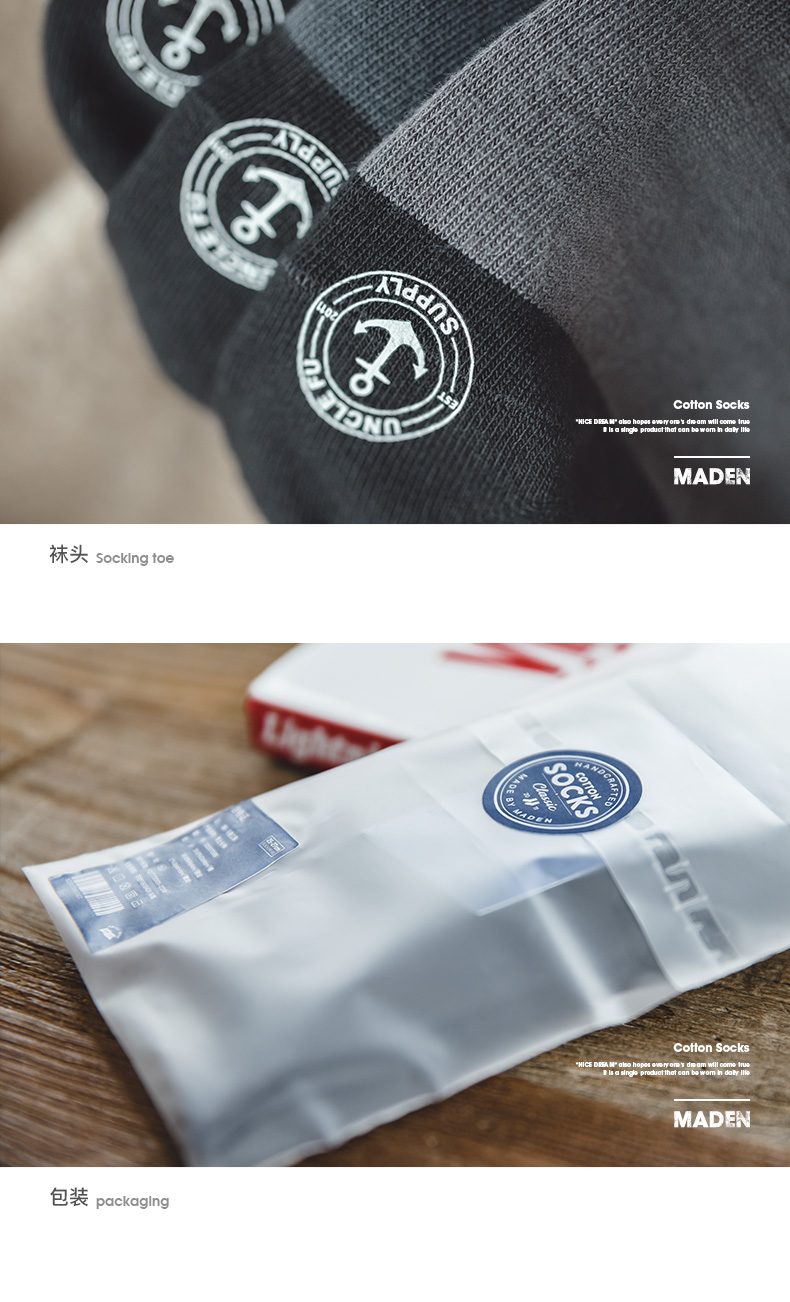 工装优选日系复古防臭透气印花中筒袜春夏吸汗纯色运动防滑袜子男