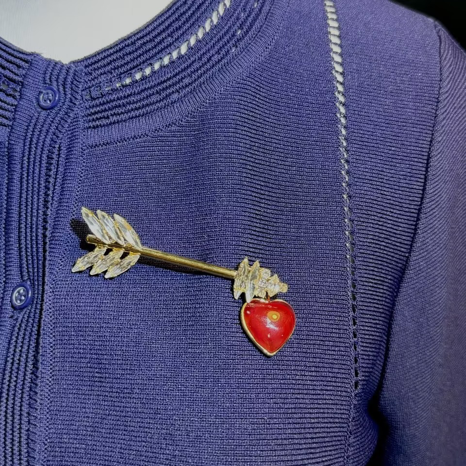 订购6个月到|Gripoix Paris-Vintage-Hanging Heart-爱心 琉璃 胸针[法国设计师]