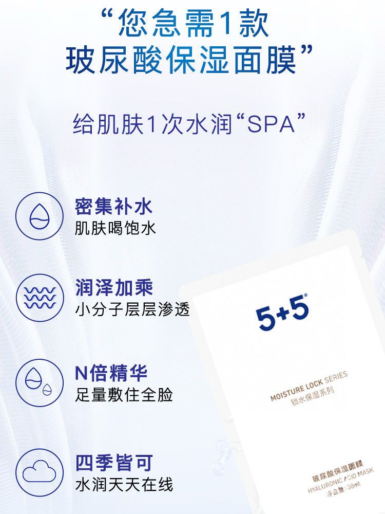5+5玻尿酸保湿面膜30ml*10片吾加吾补水保湿贴片面膜