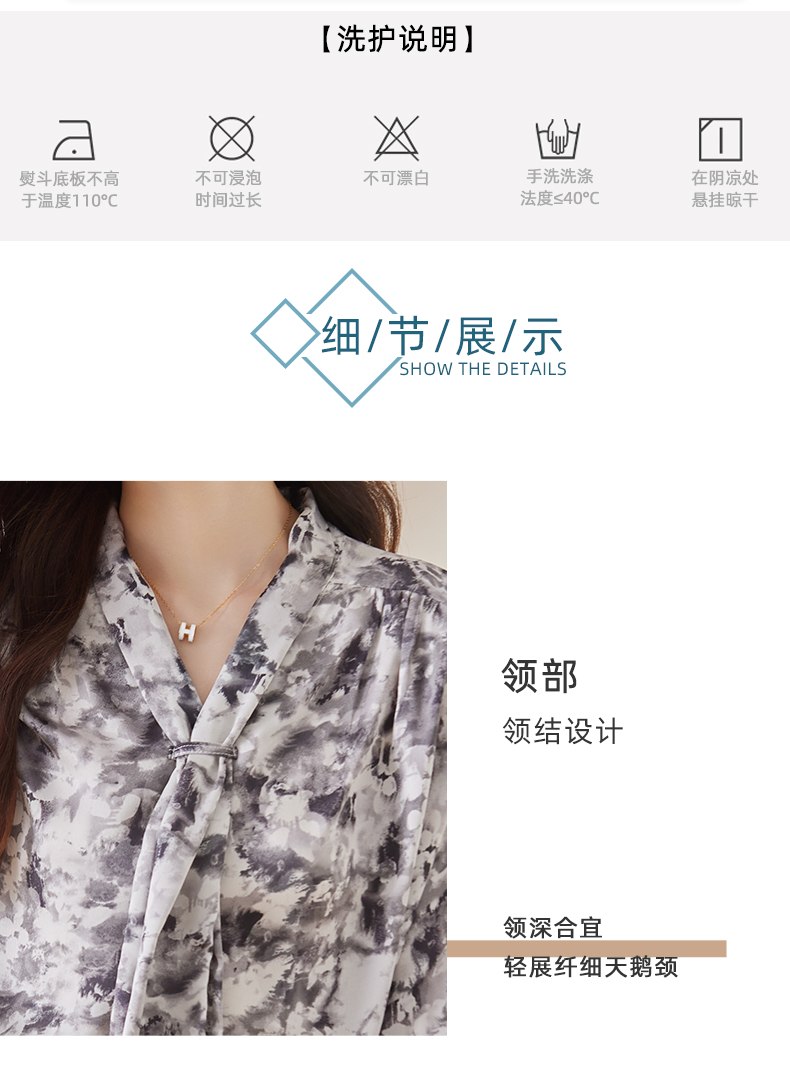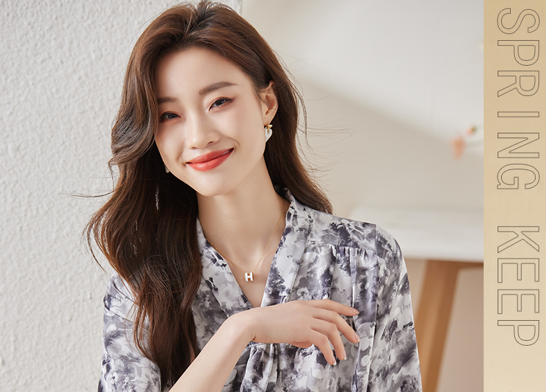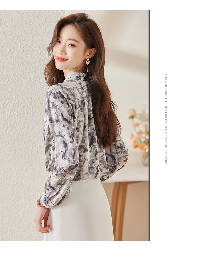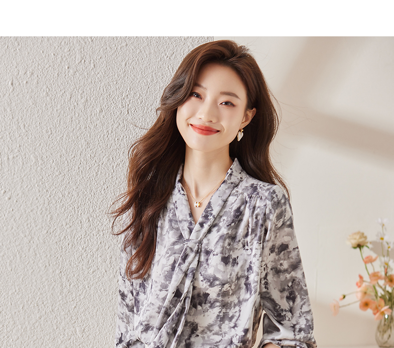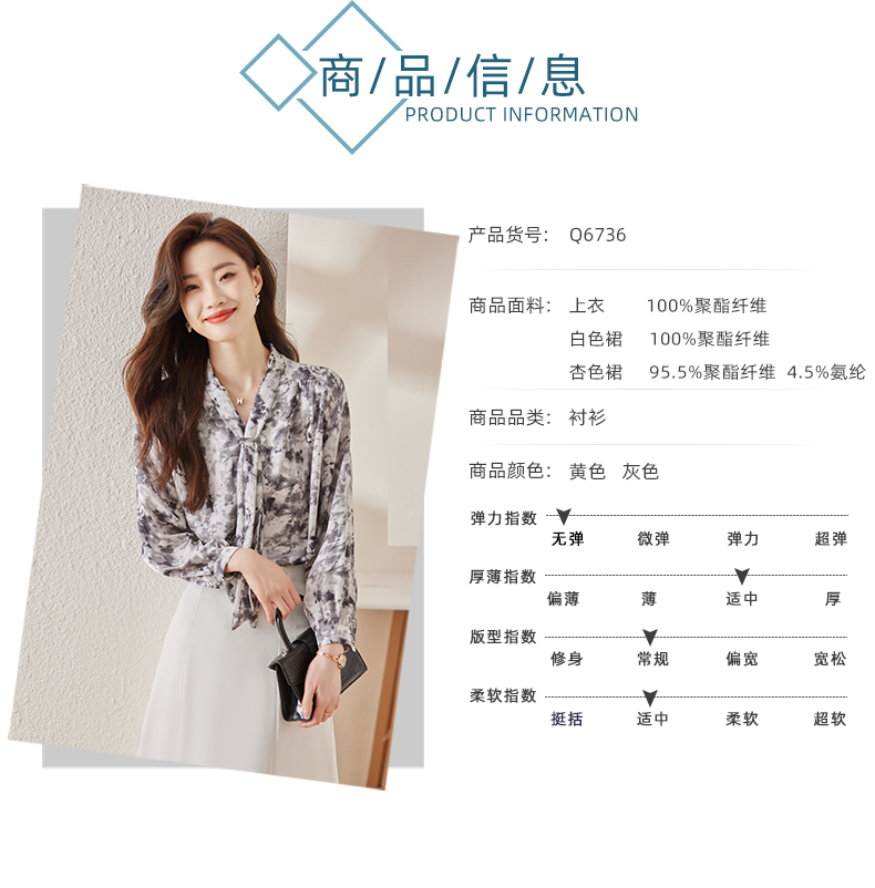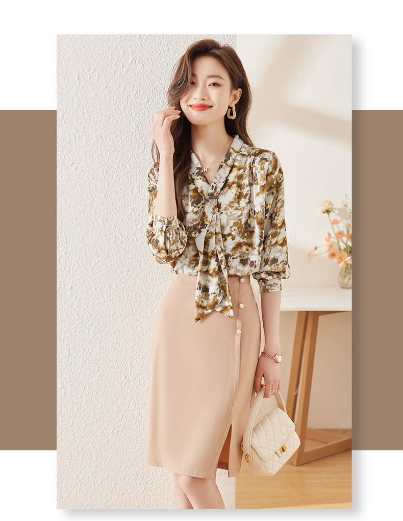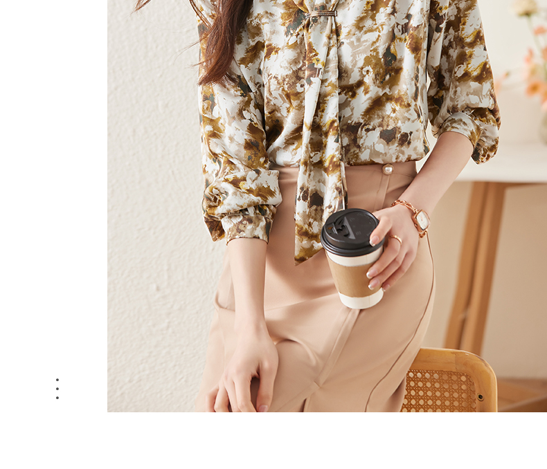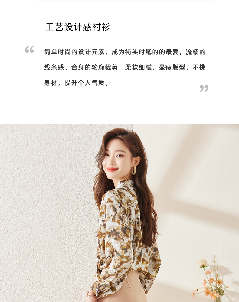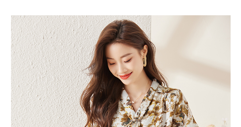 Q6736百搭上衣时尚气质春季小众碎花法式复古时尚洋气飘带衬衫女