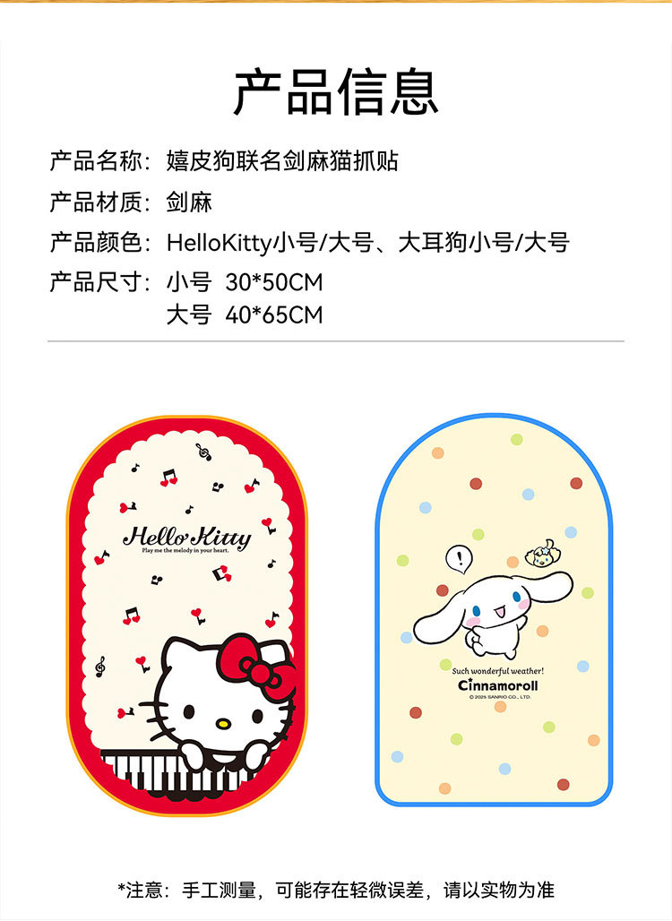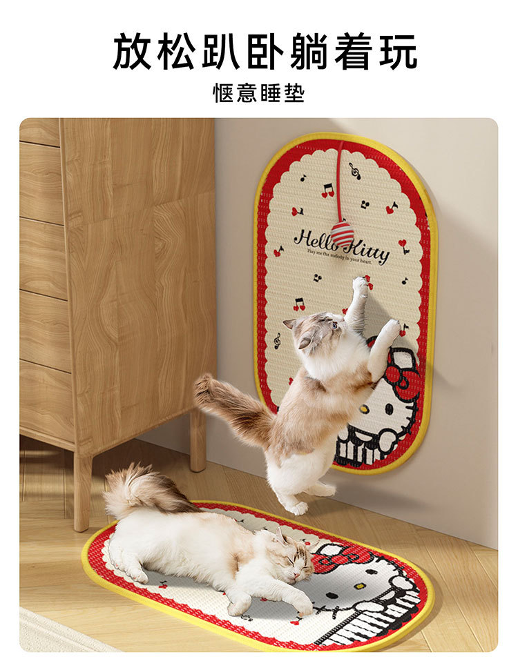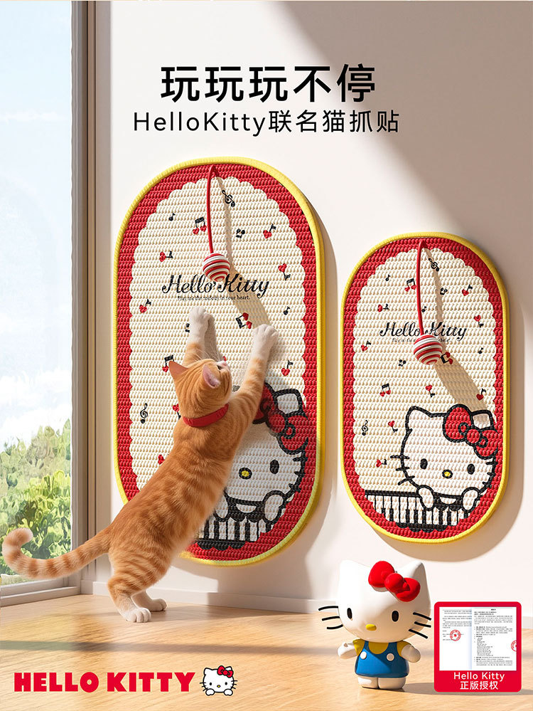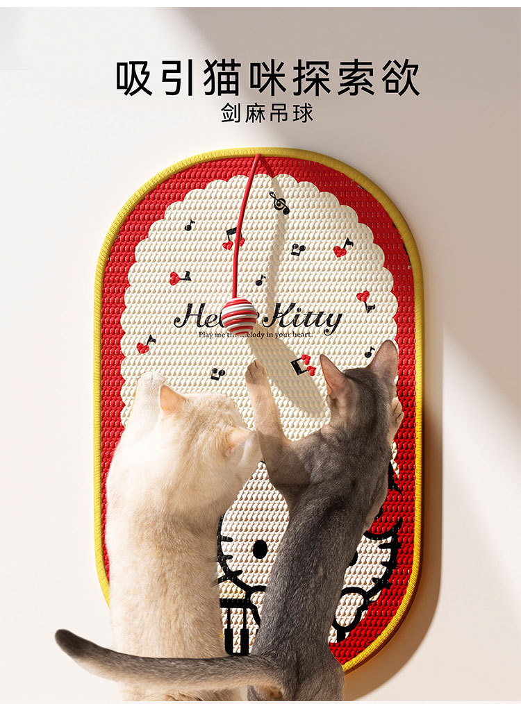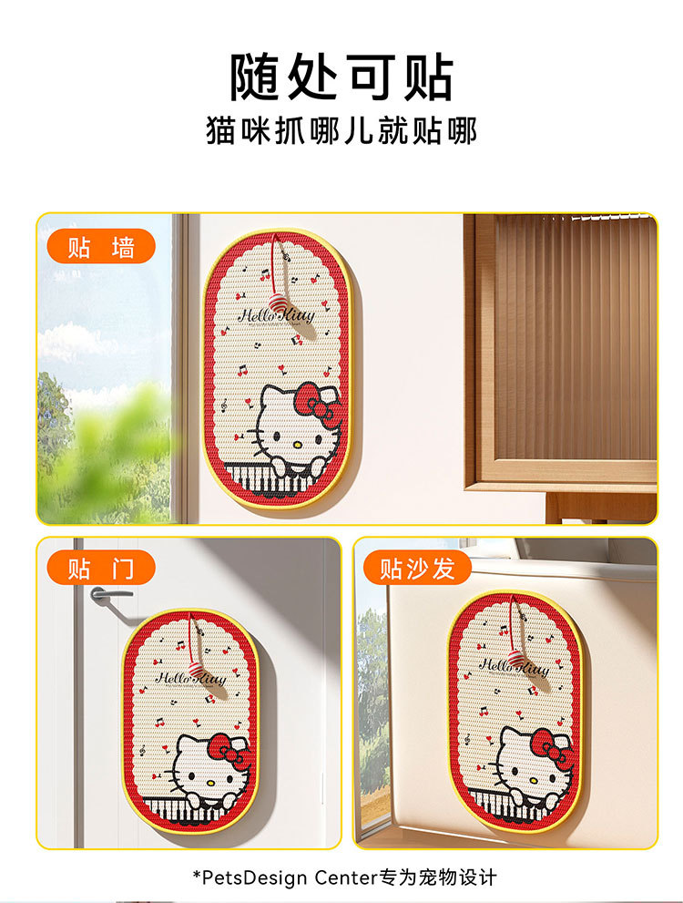 【随处可贴!猫咪抓哪儿就贴哪】边做拉伸边释压,HelloKitty联名剑麻猫抓贴防猫抓沙发保护贴家具猫抓垫猫抓板宠物猫玩具。ra