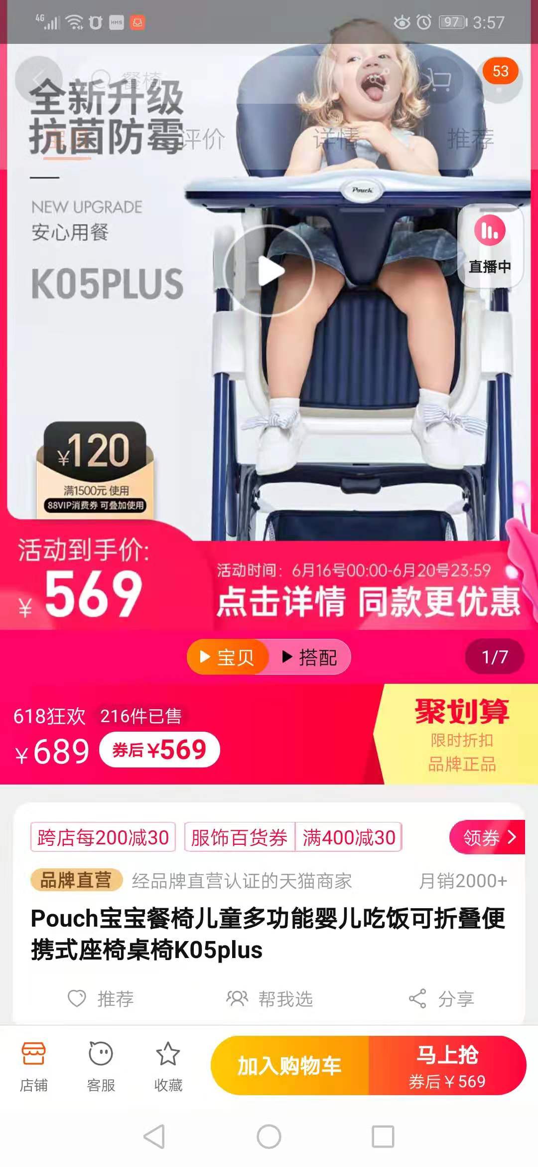 官网券后到手569元