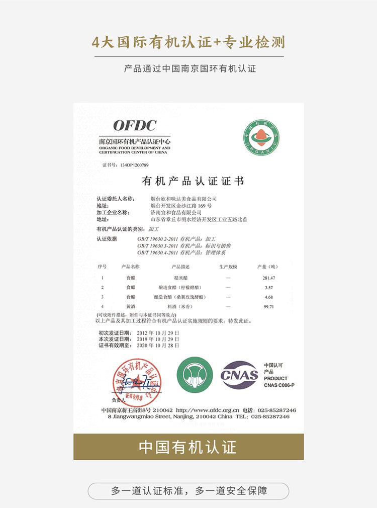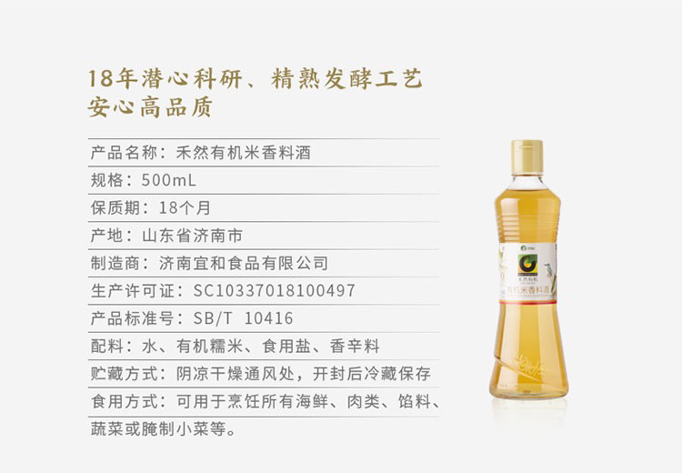 禾然 有机料酒500ml*2瓶