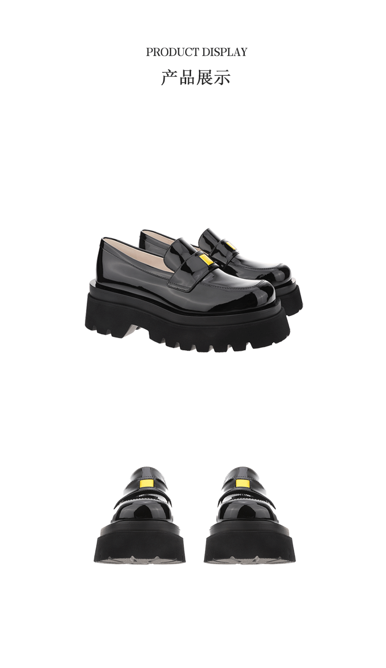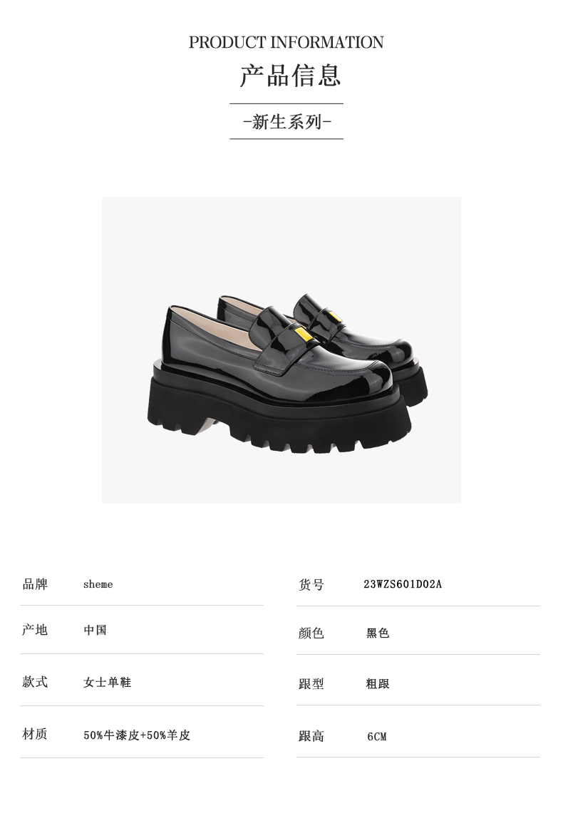 sheme新生系列进口牛漆皮方头厚底女士个性潮流乐福鞋可定制