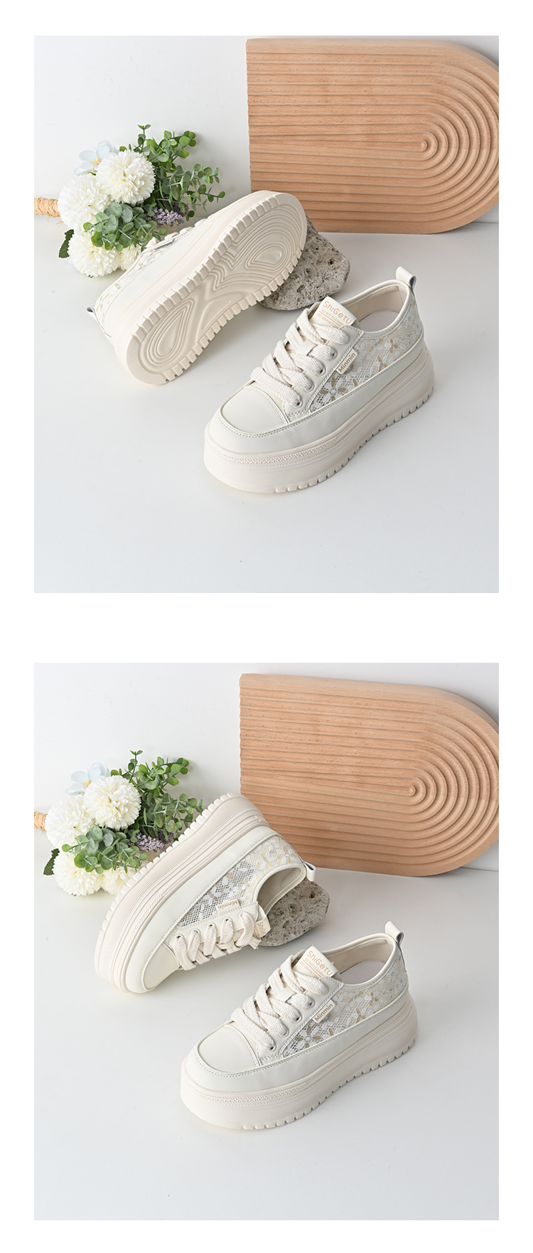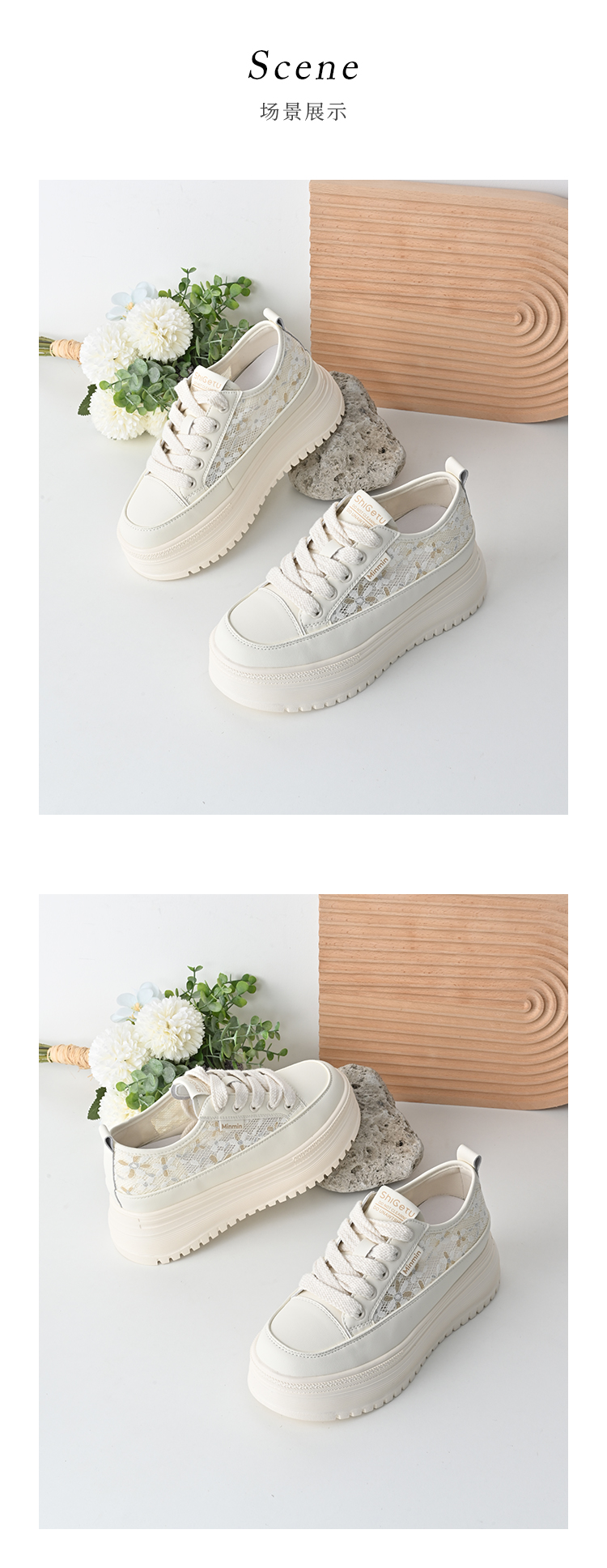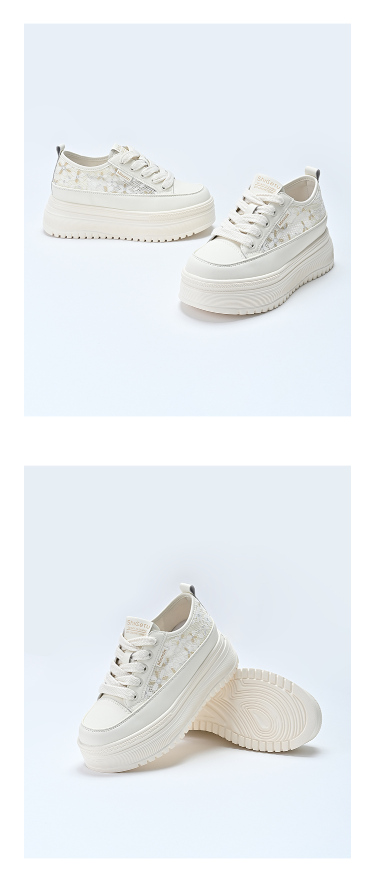 经典鲨2025年夏款牛皮革甜美网状舒适透气厚底显高休闲鞋女KW160-529131