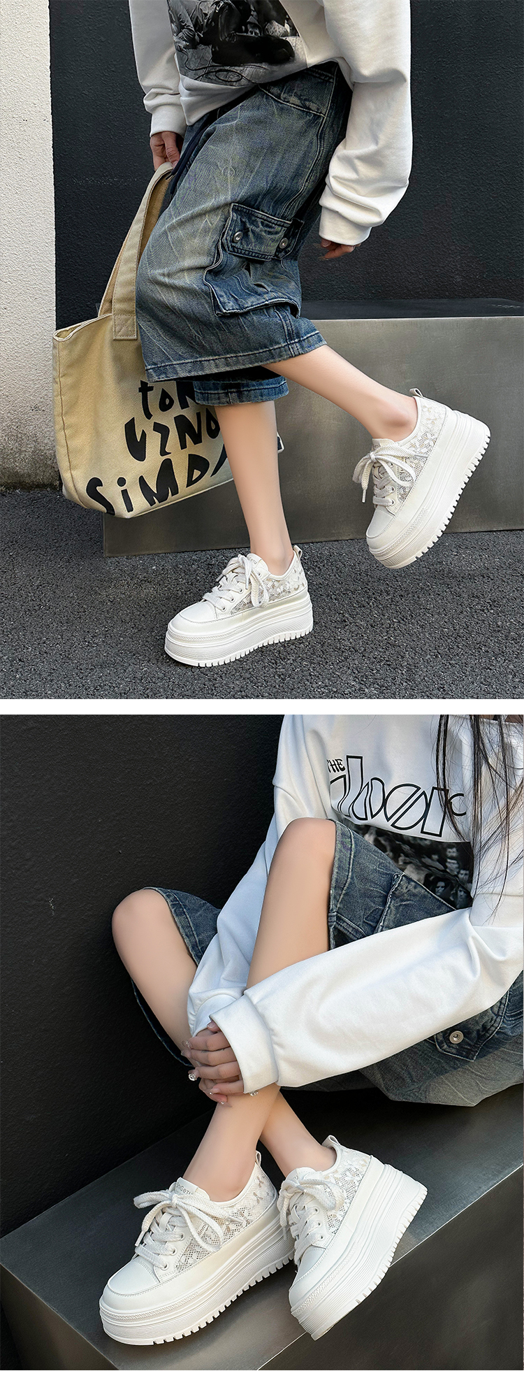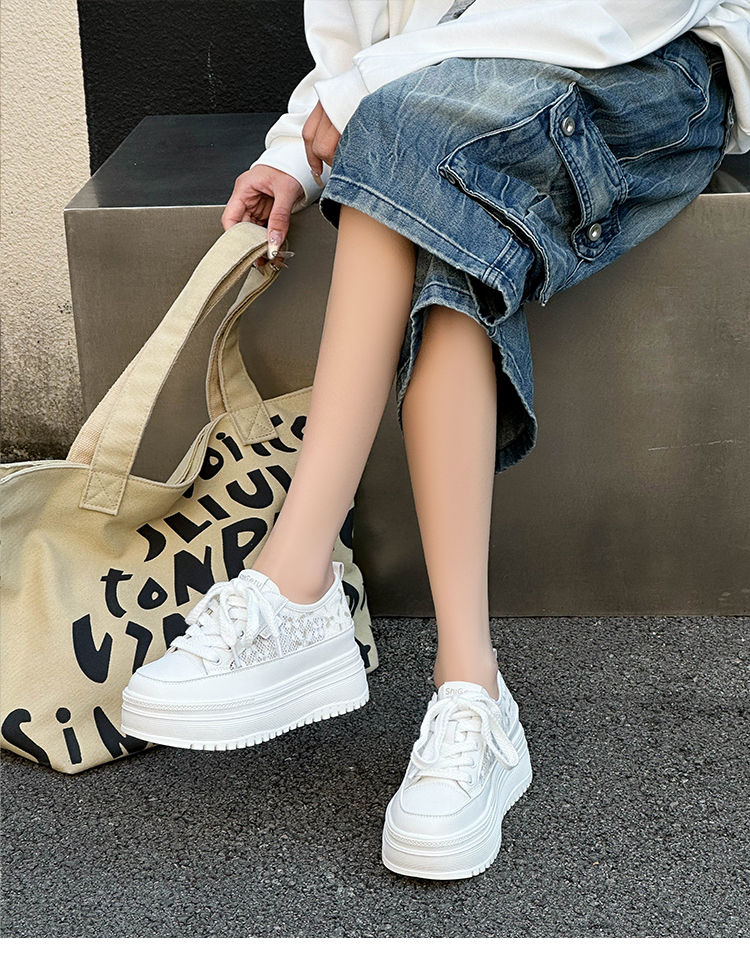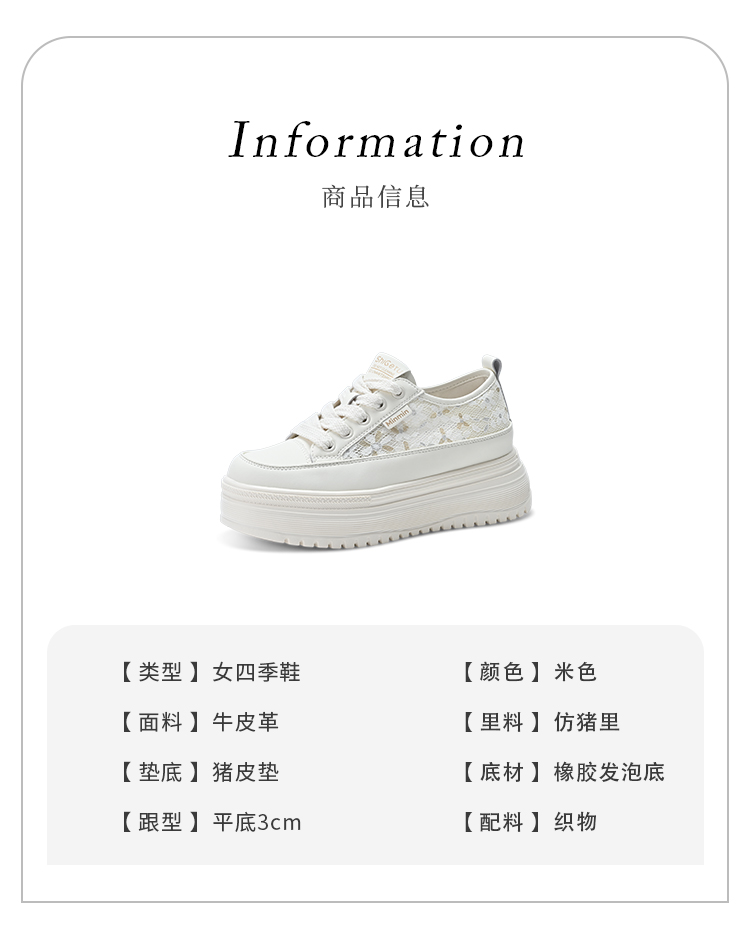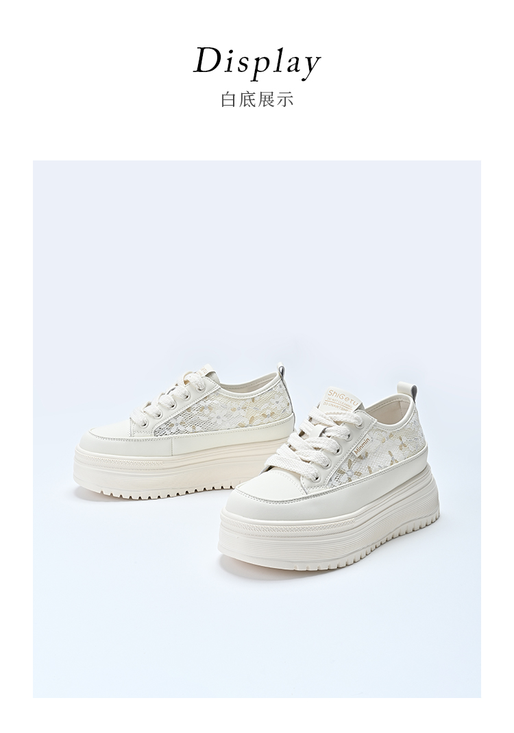 经典鲨2025年夏款牛皮革甜美网状舒适透气厚底显高休闲鞋女KW160-529131