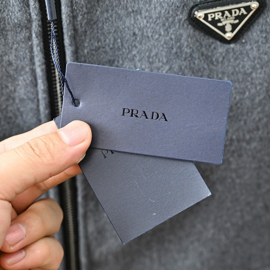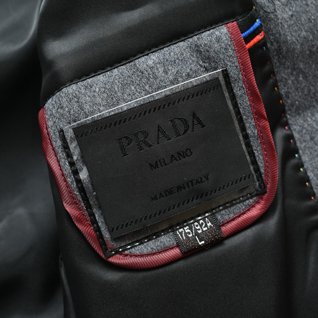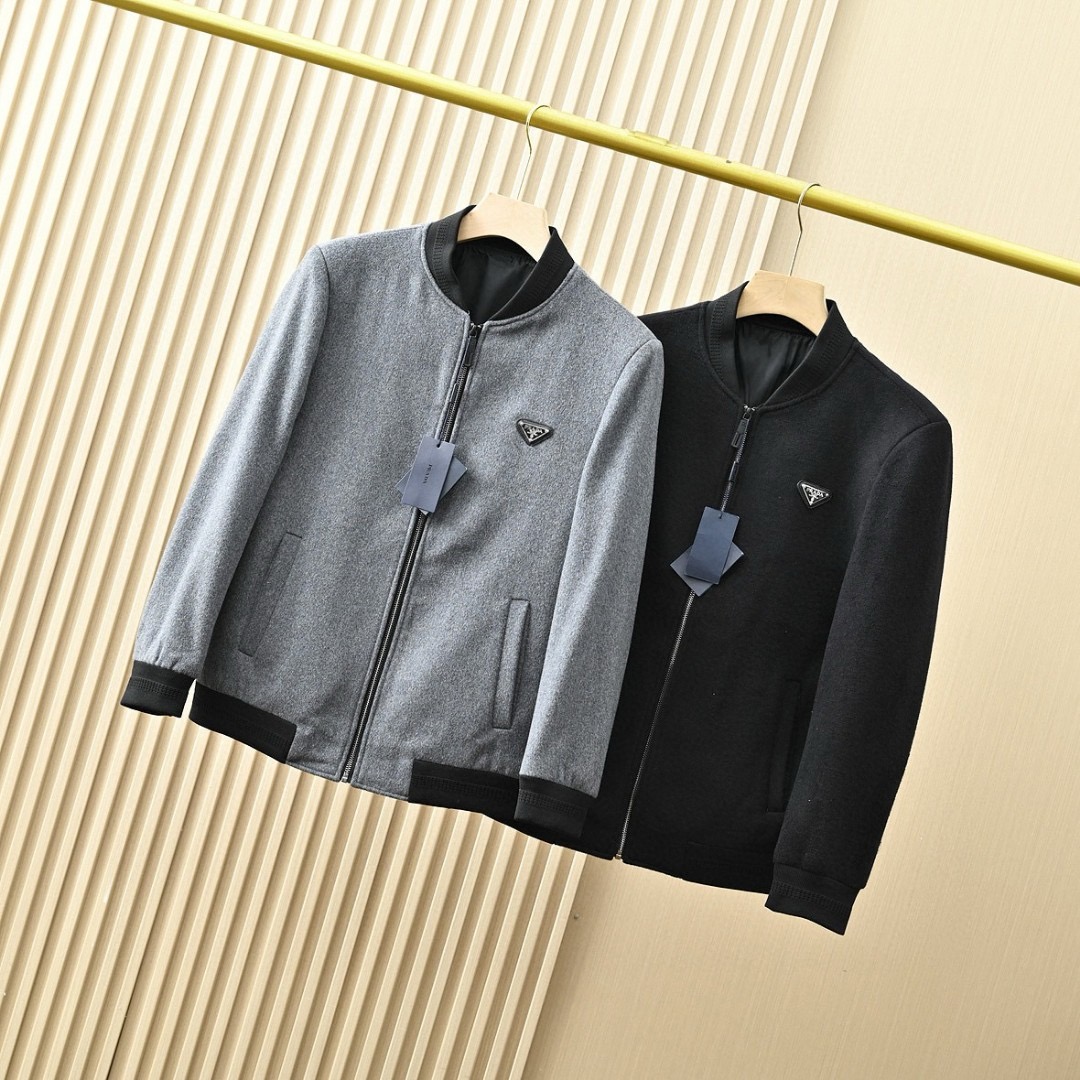 PRADA 普拉达2024秋冬新款男士棒球领领羊毛呢休闲夹克外套