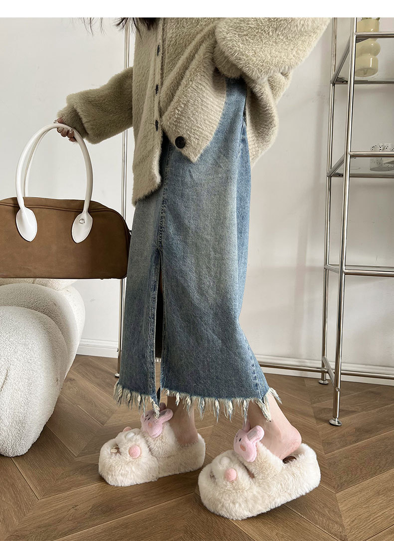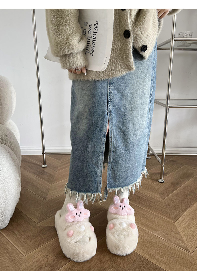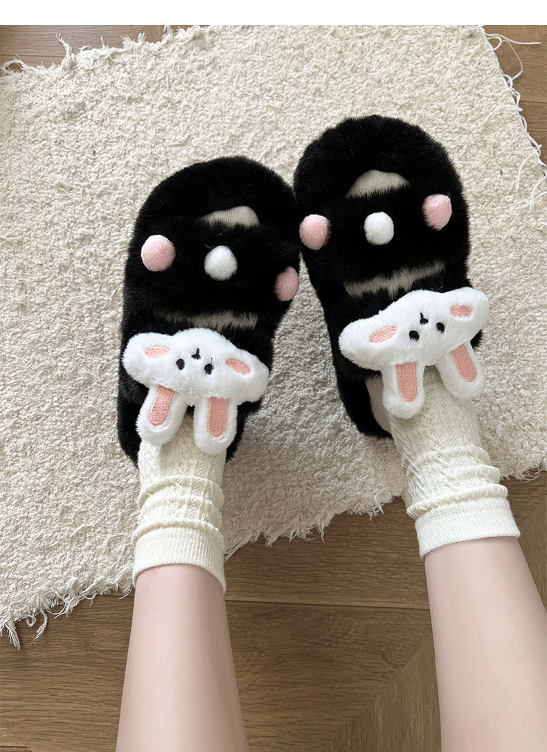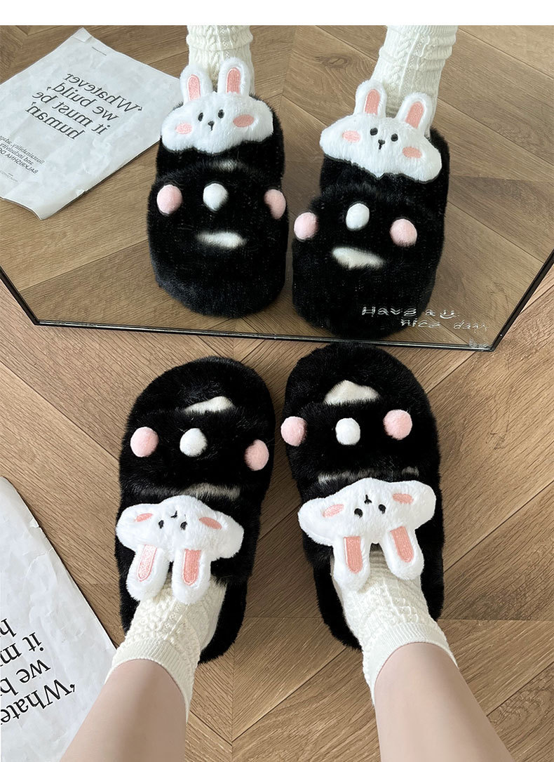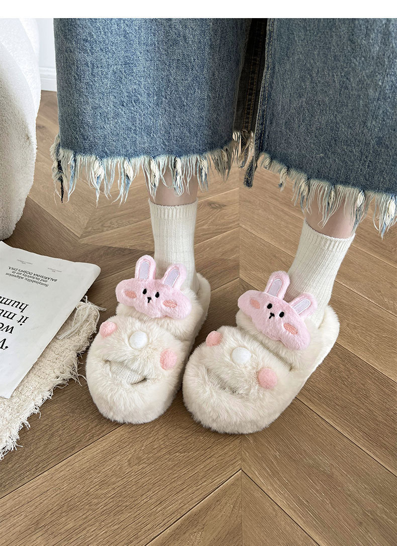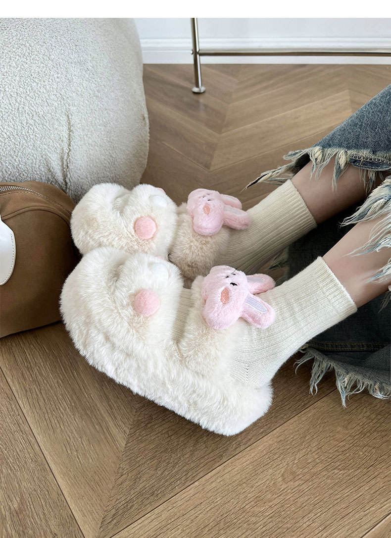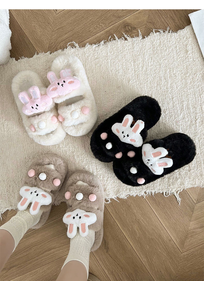 【专柜品质,冬季毛茸茸拖鞋】全面升级新款可爱呆萌小兔子,柔软脚感更舒适,室内居家可外穿一字拖鞋女拼色QQ