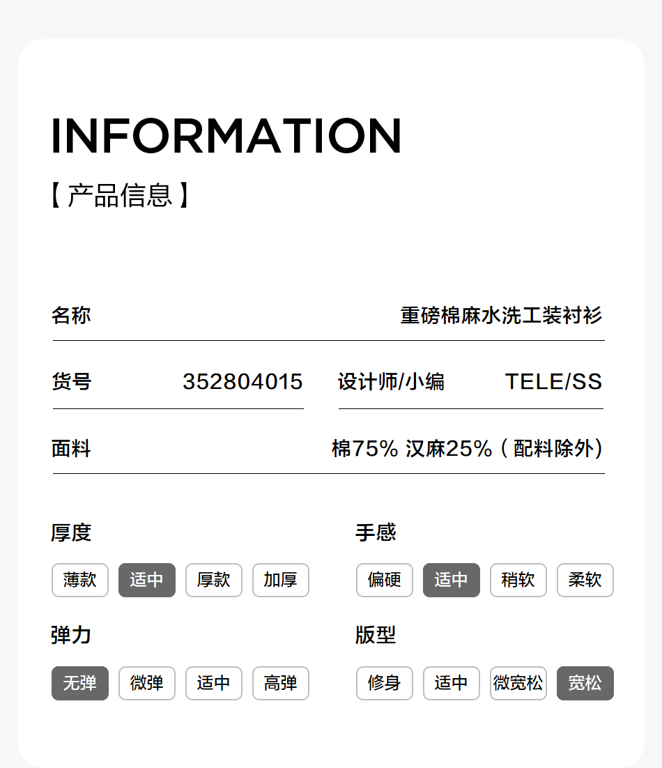 棉仓352804015-重磅棉麻水洗工装衬衫