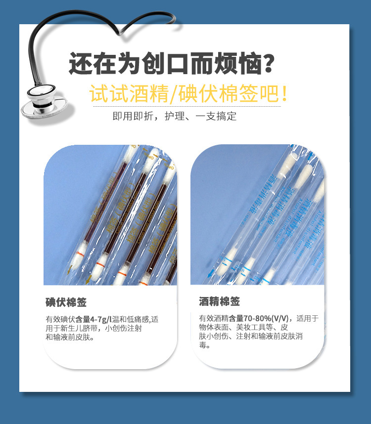 上海弘生碘伏棉签消毒液棉棒一次性 1支装 成人婴幼儿通用