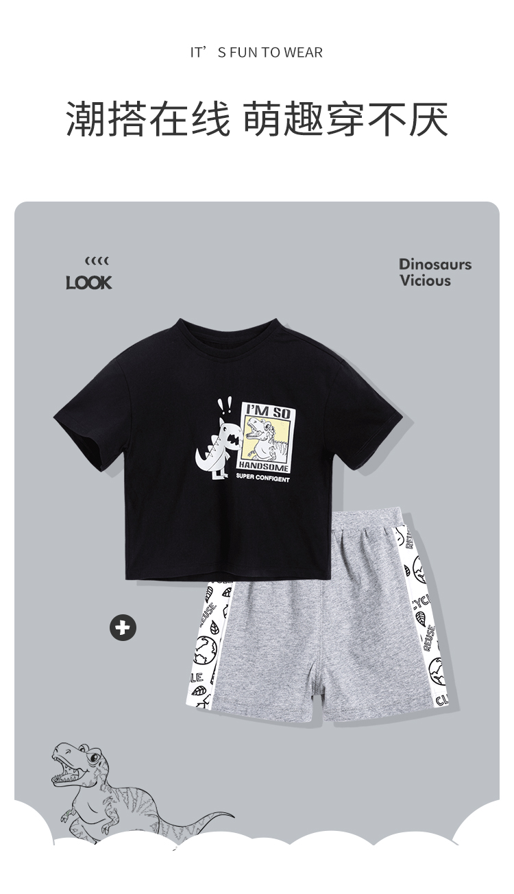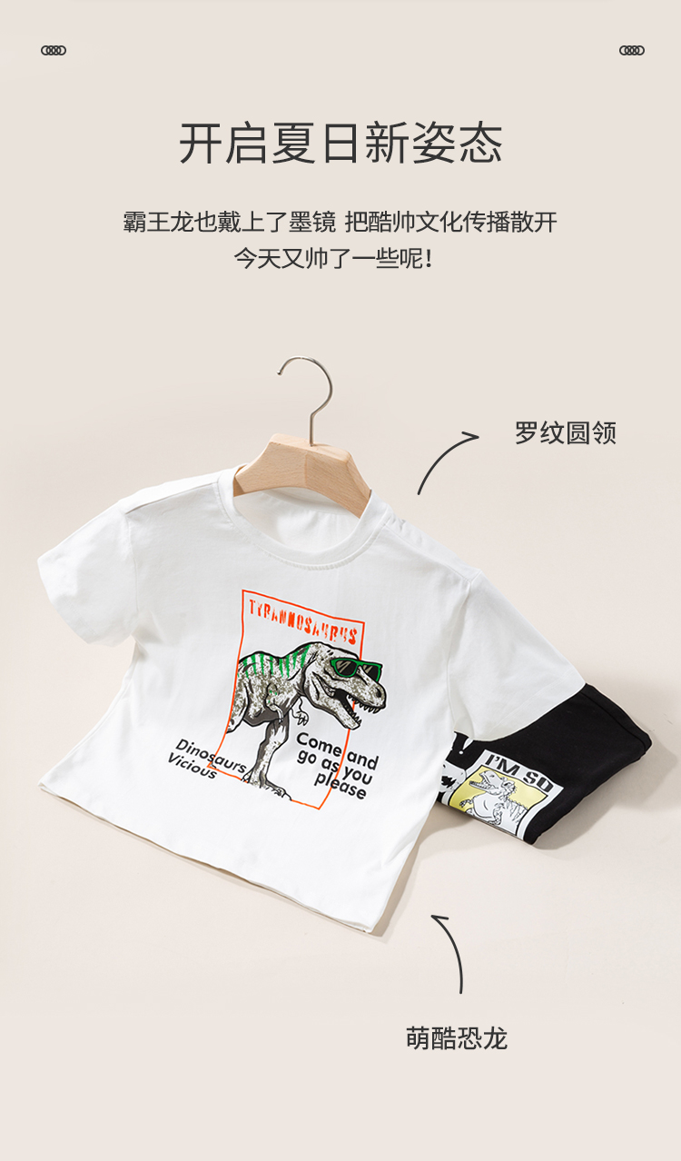 贝贝怡夏季新品儿童短袖酷帅男童恐龙T恤时尚洋气